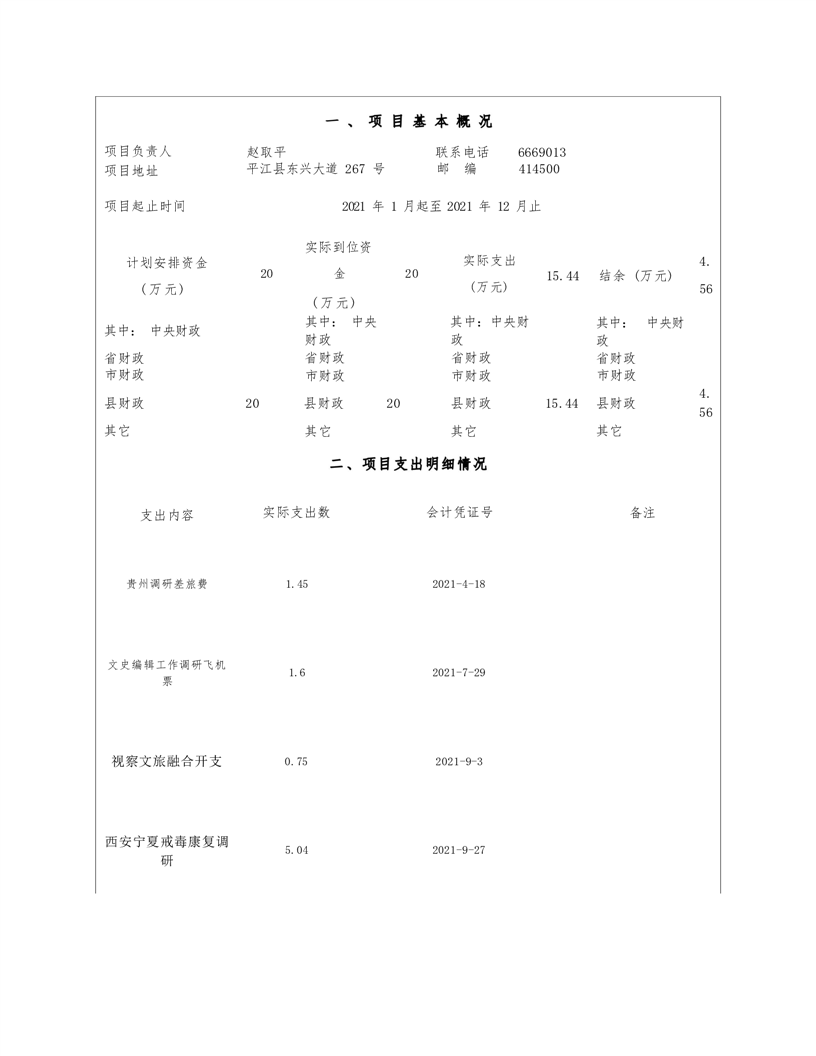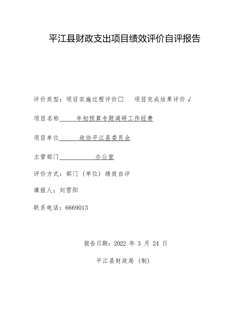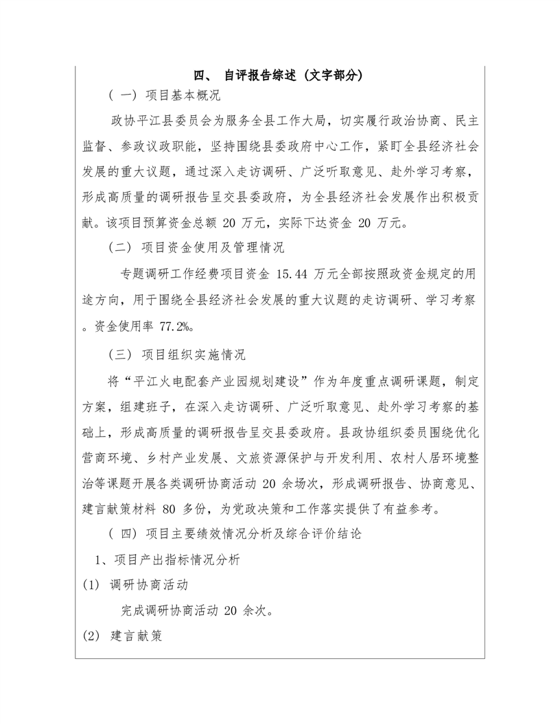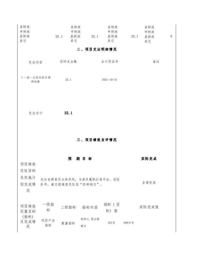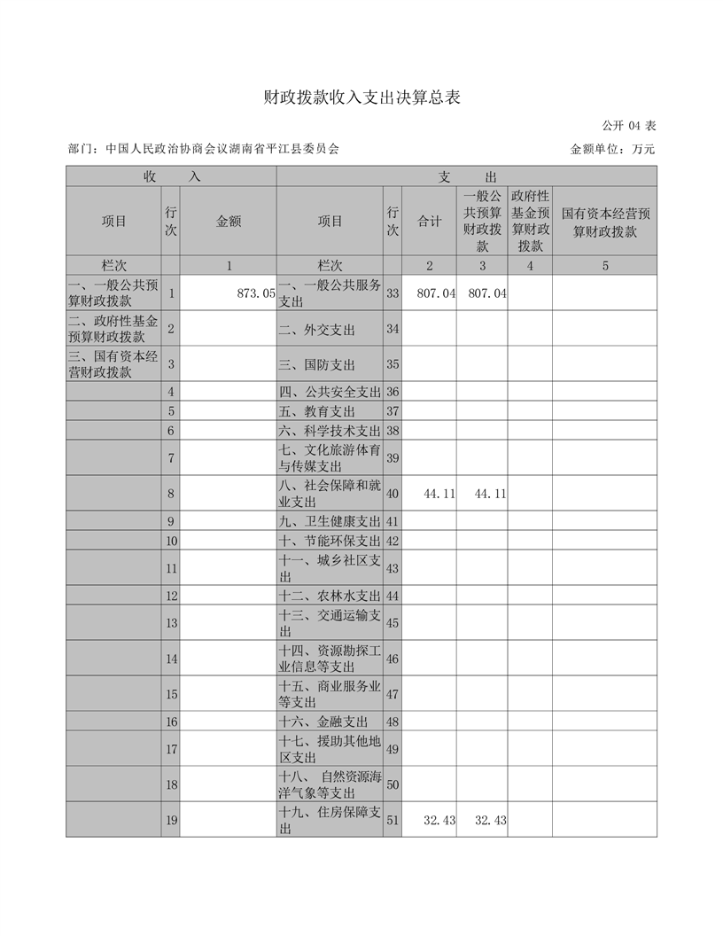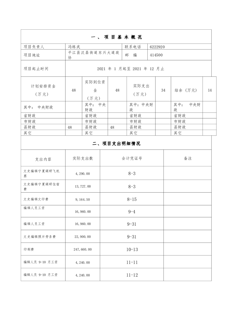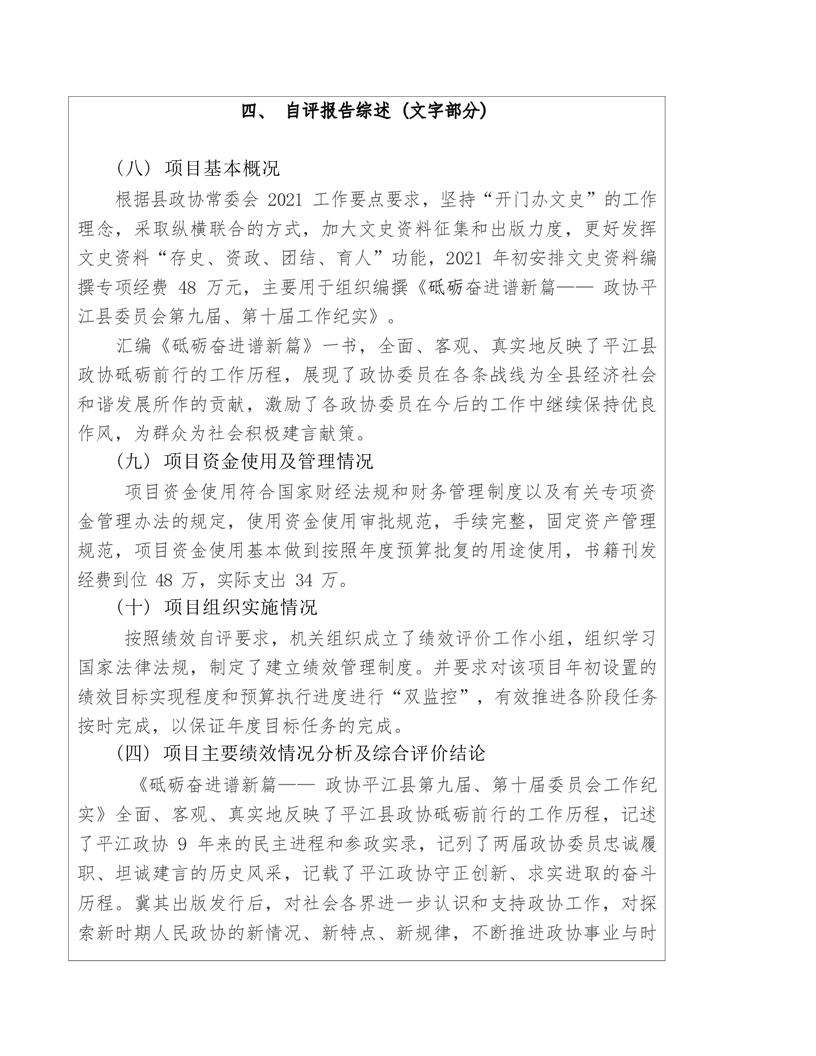 政协平江县委员会2021年部门决算