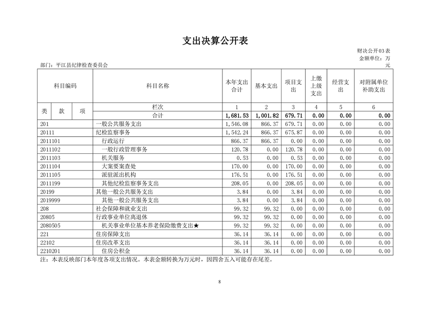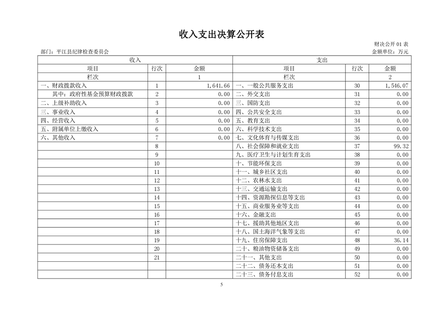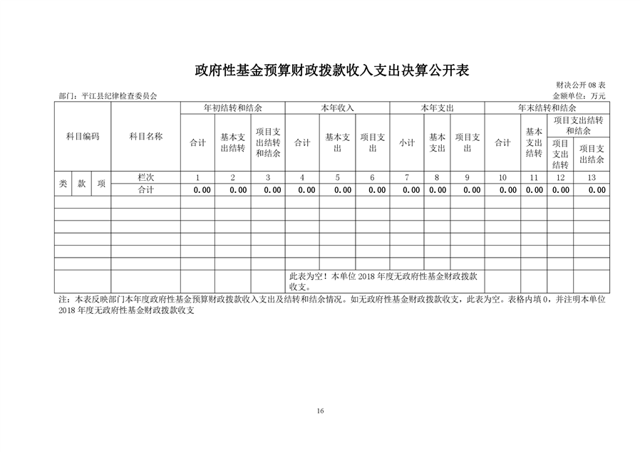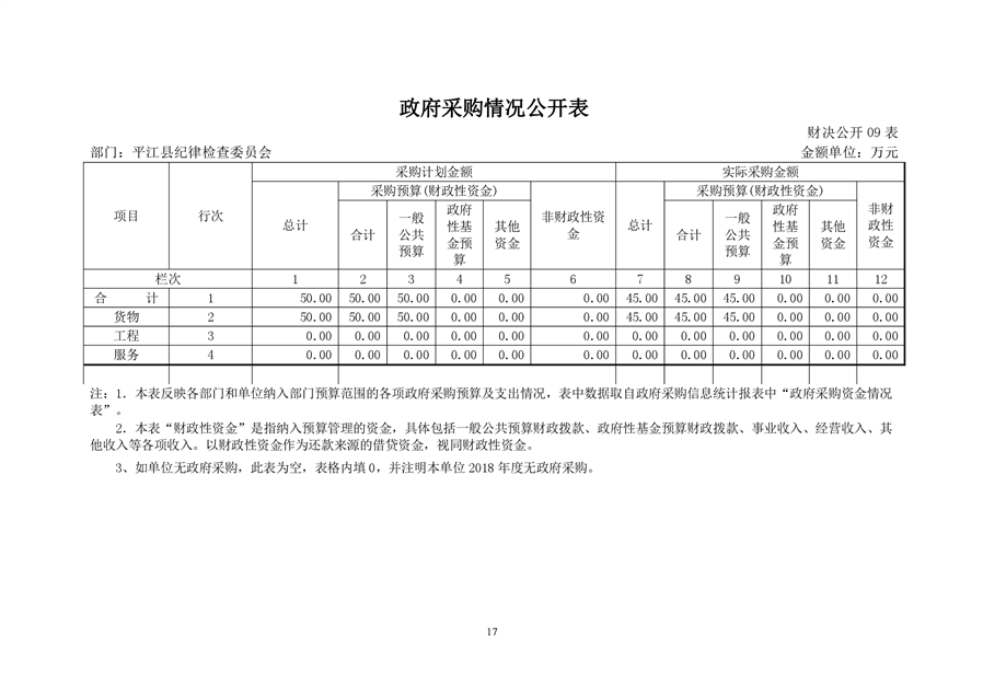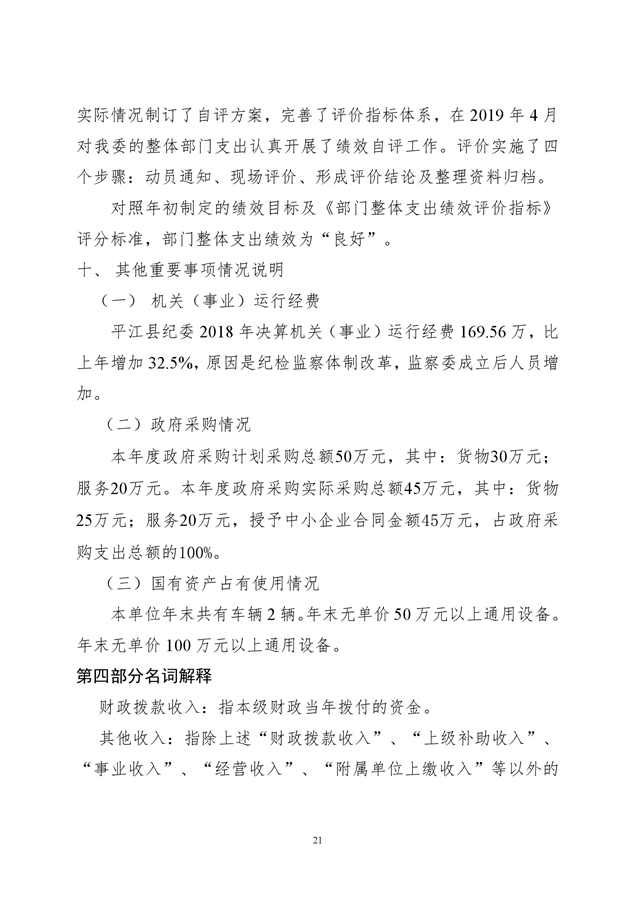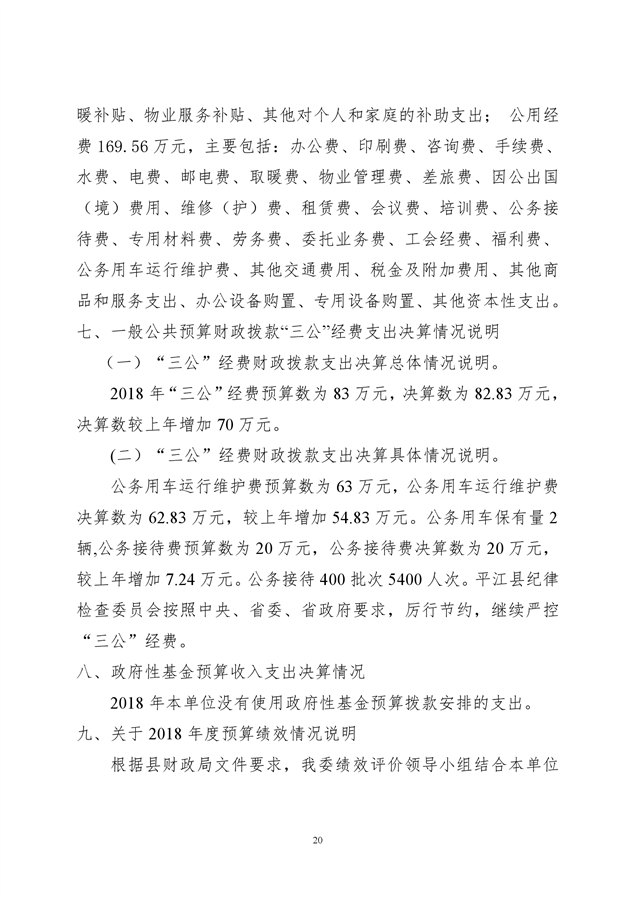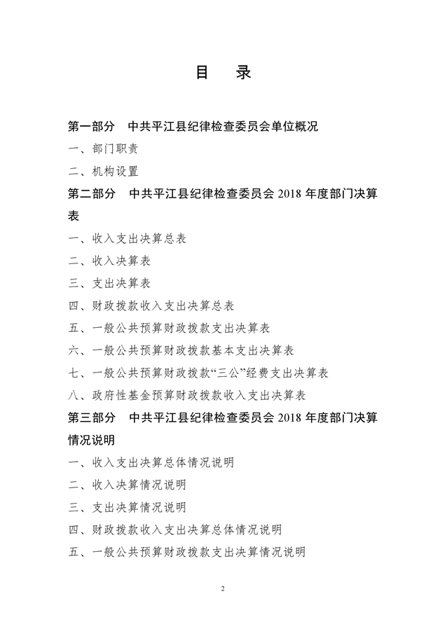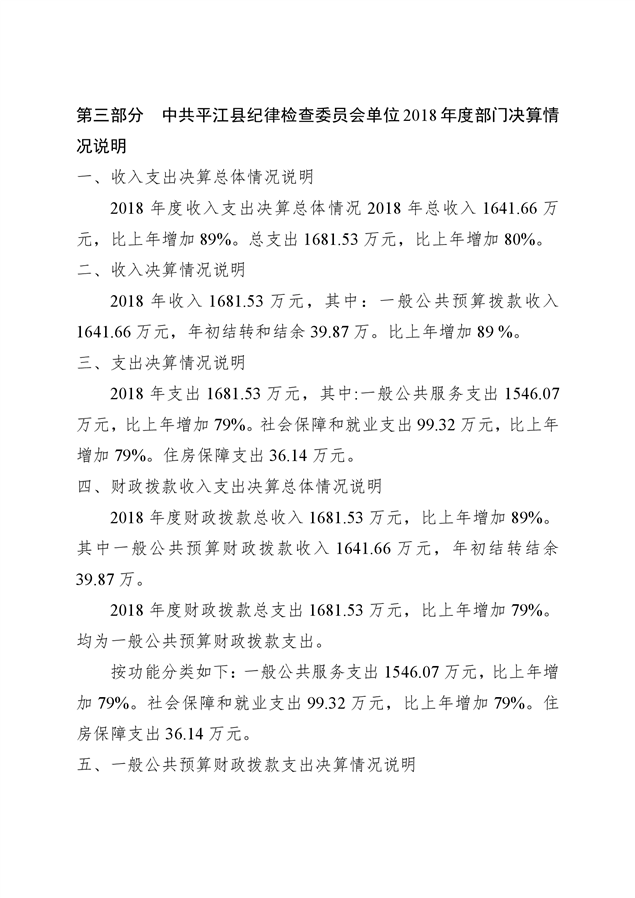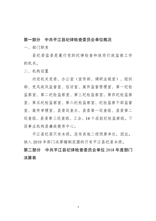 平江县纪律检查委员会2018年部门决算编报说明
