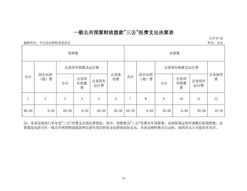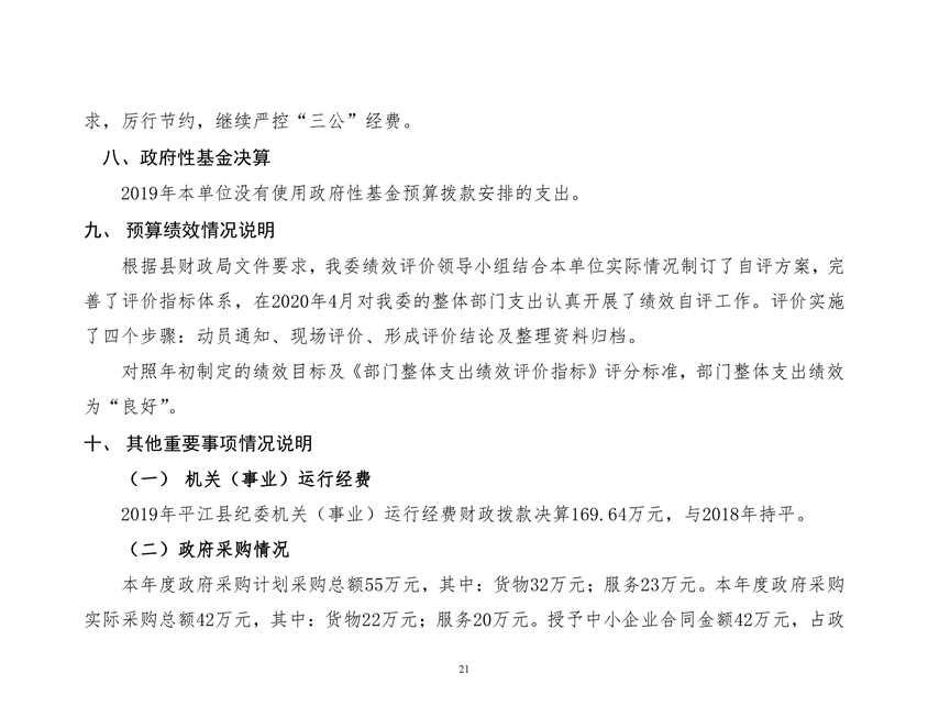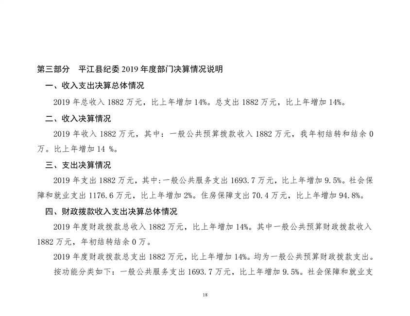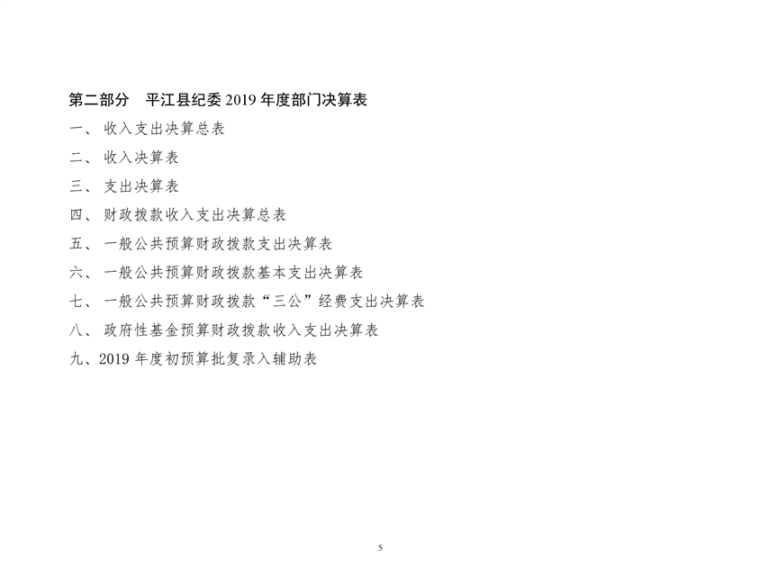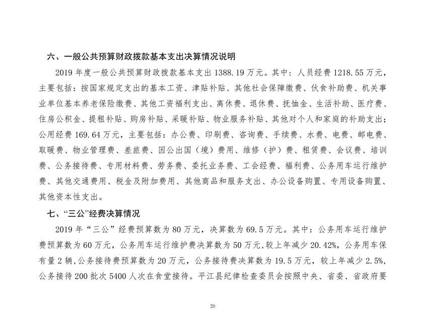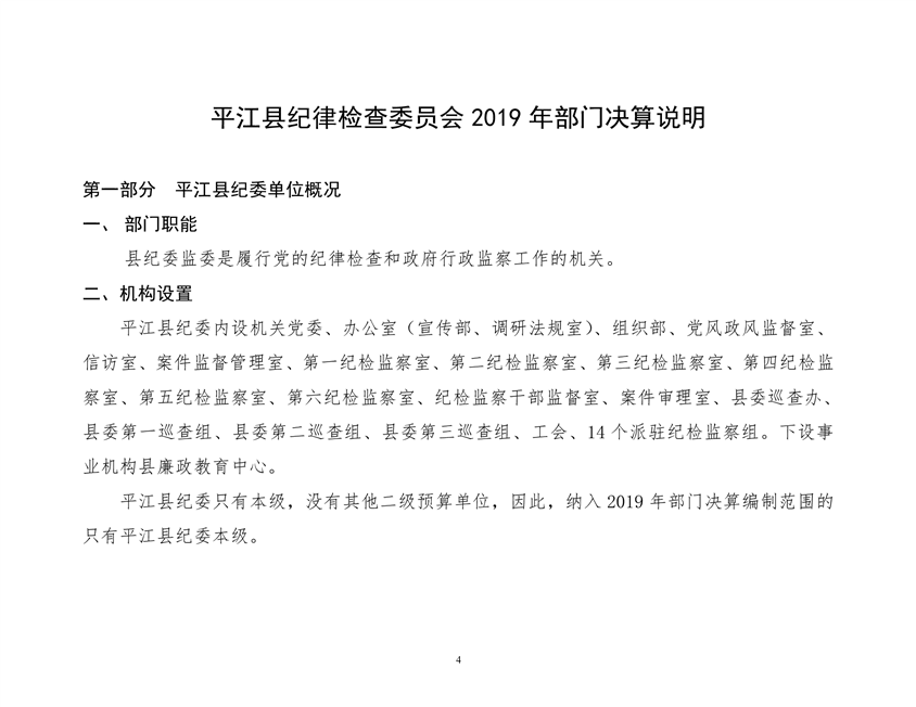 平江县纪律检查委员会2019年部门决算