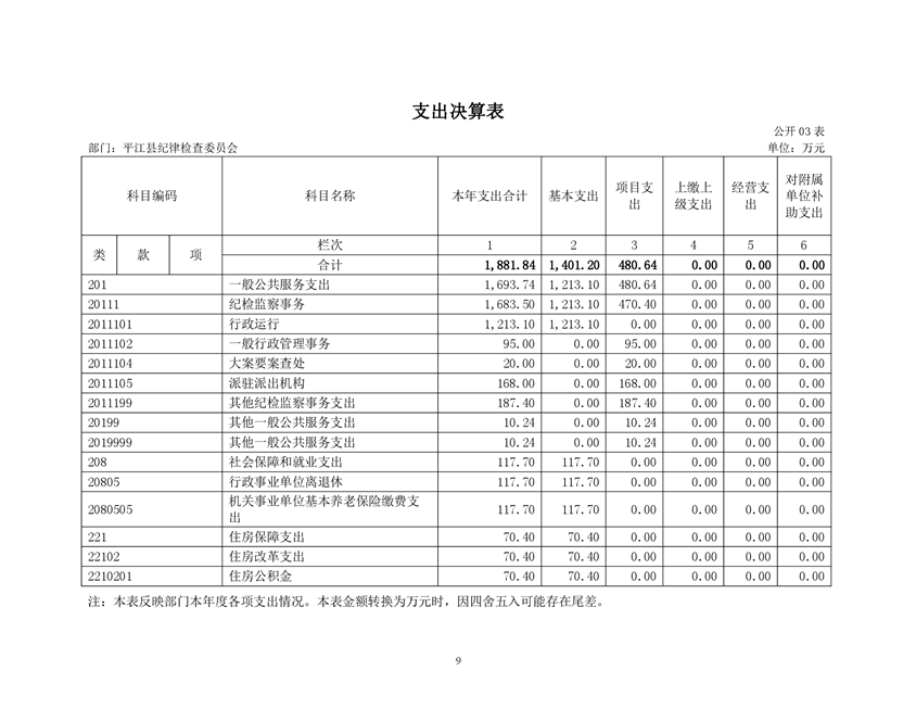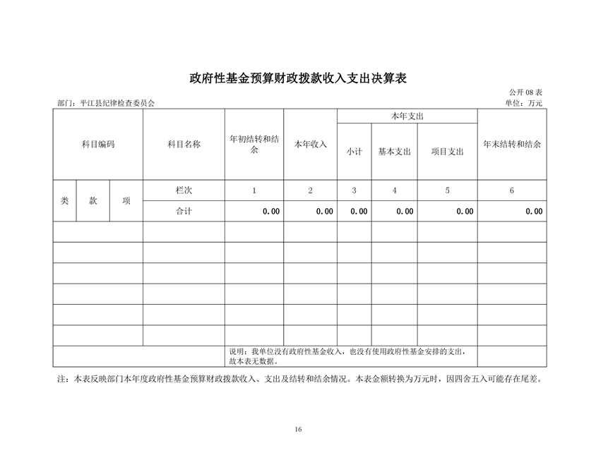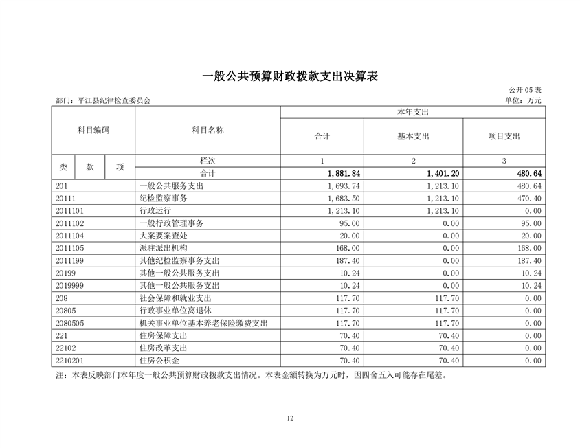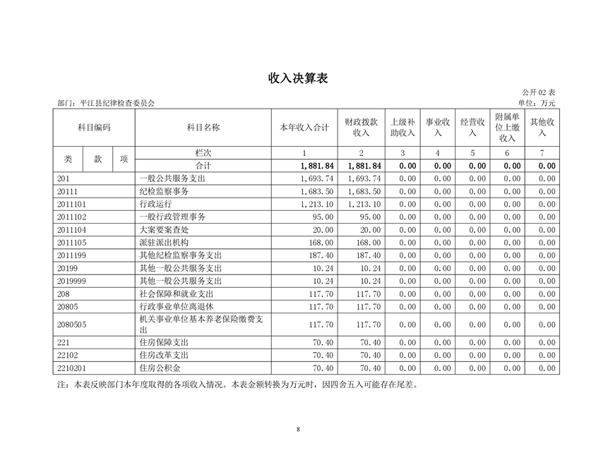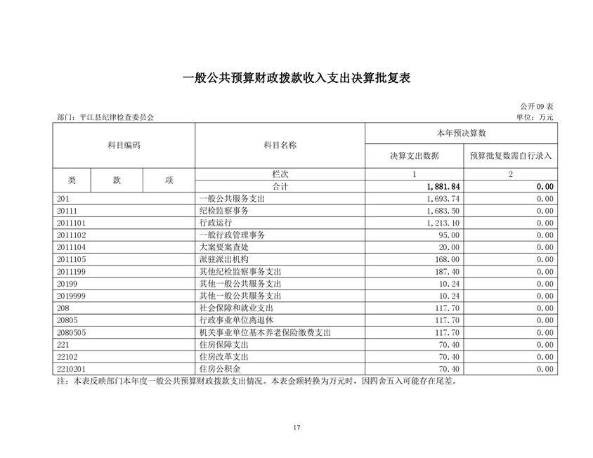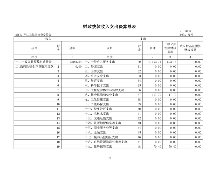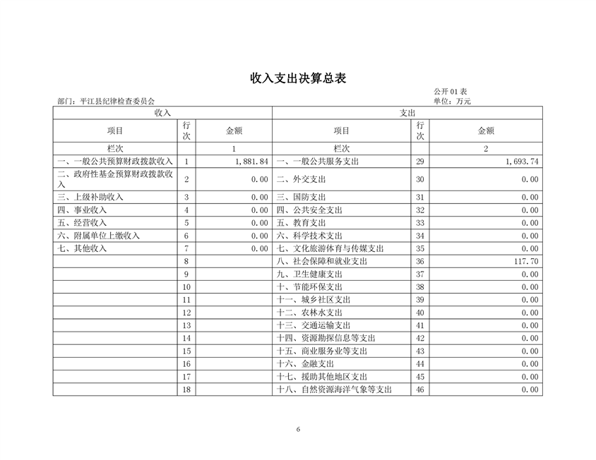 平江县纪律检查委员会2019年部门决算