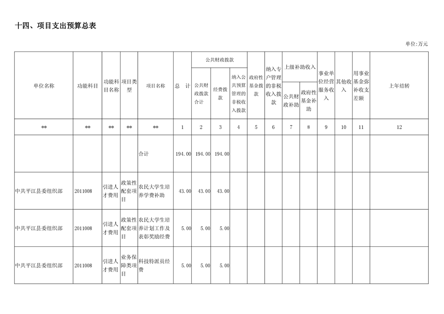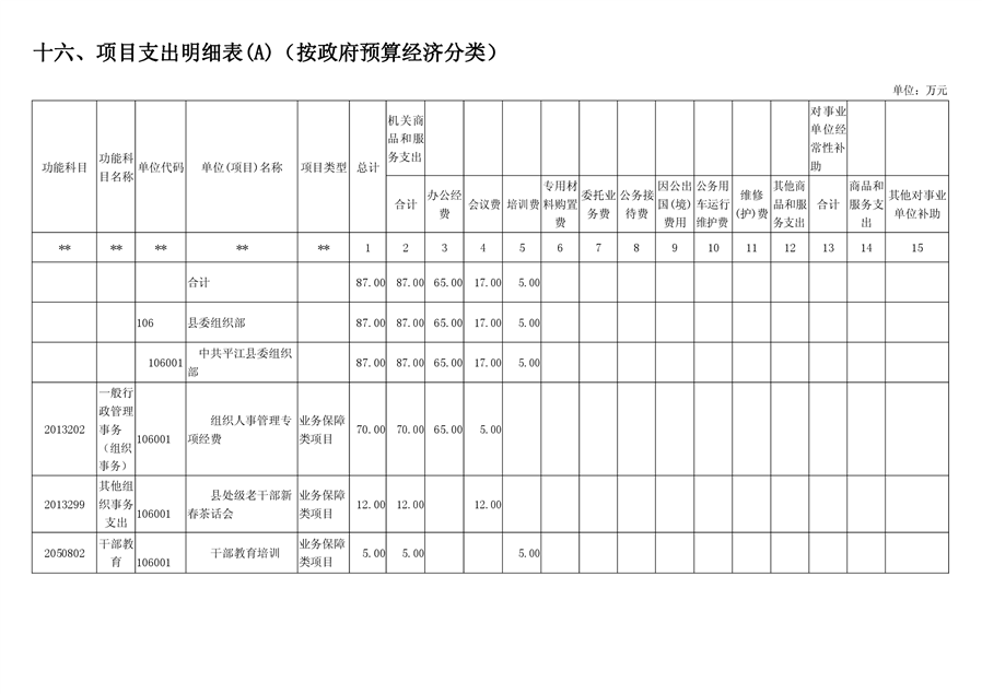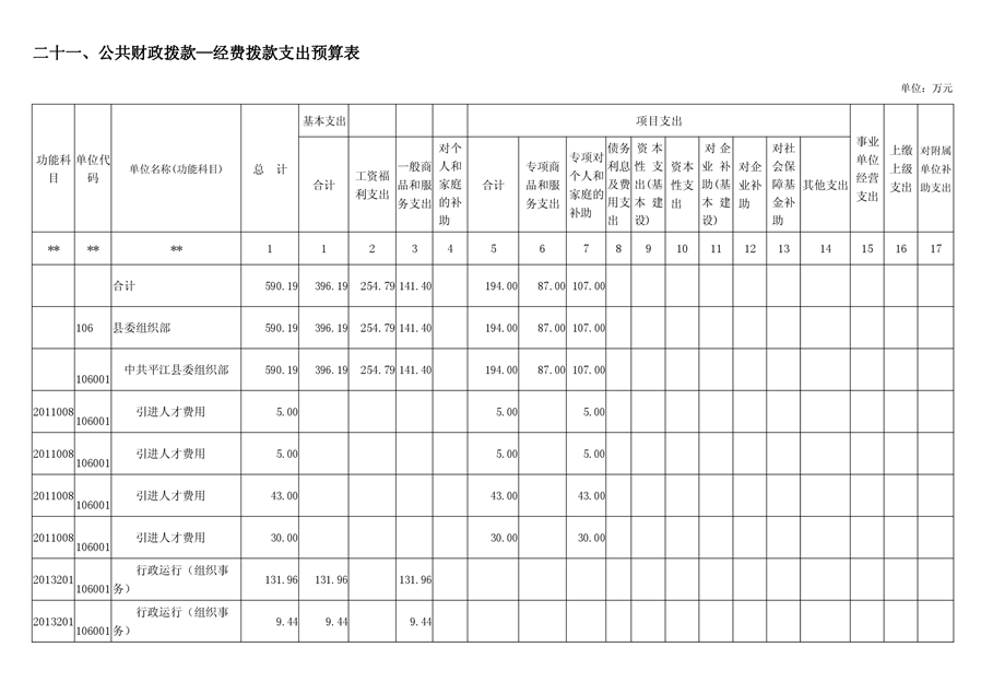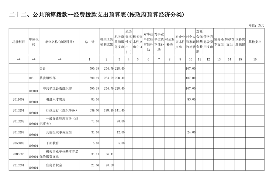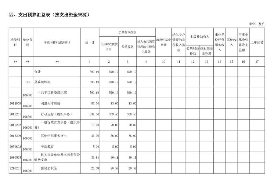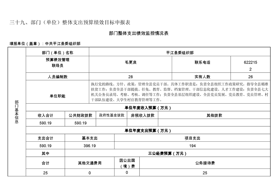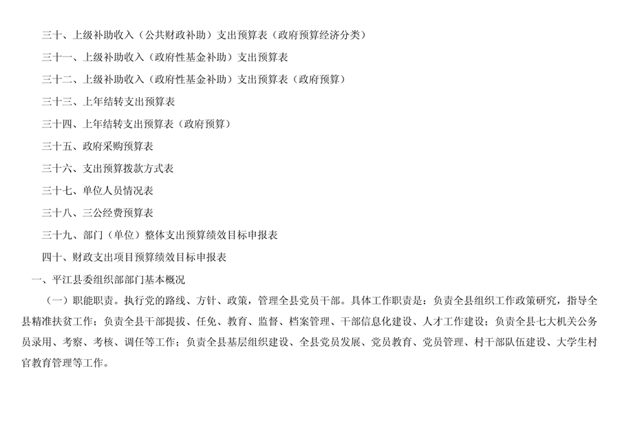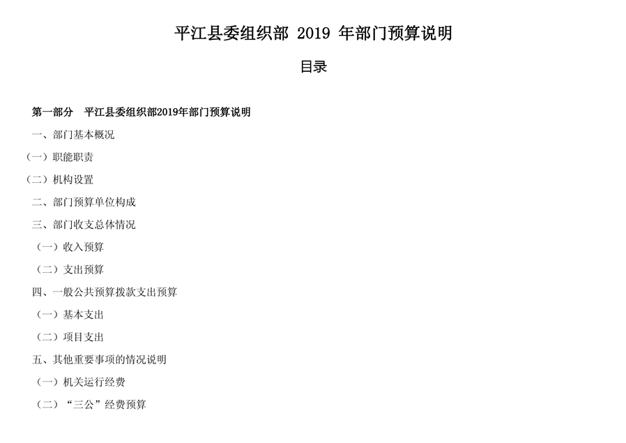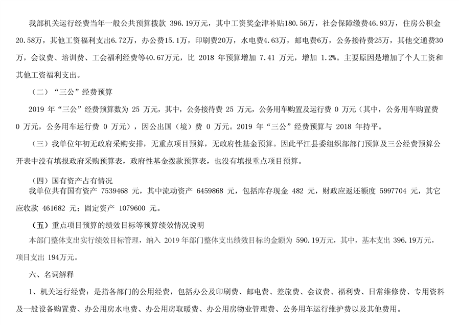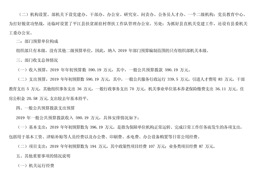 平江县委组织部2019年部门预算