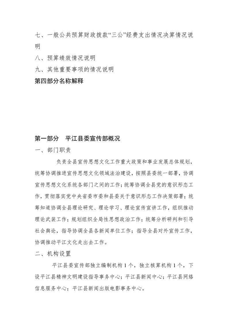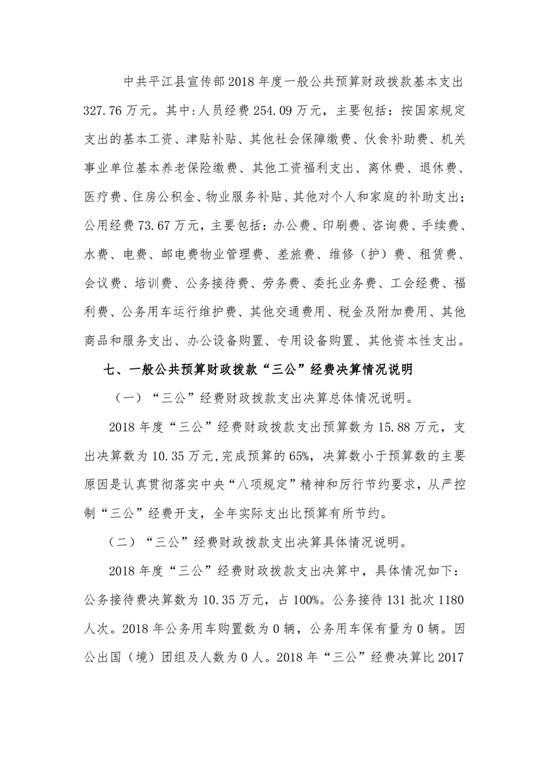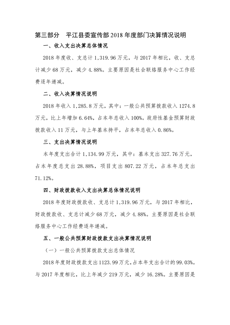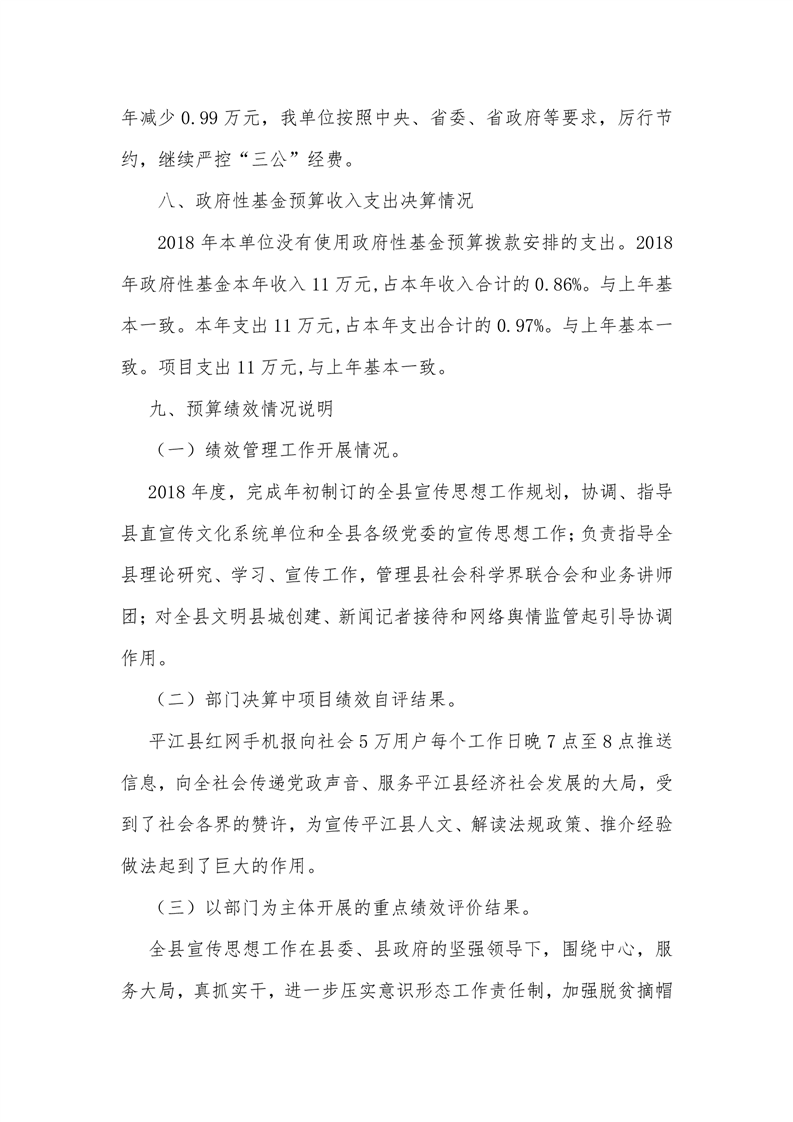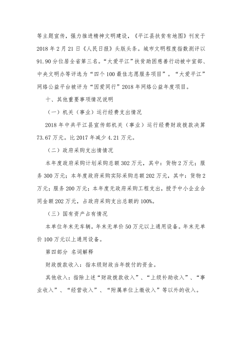 平江县委宣传部2018年度部门决算编报说明