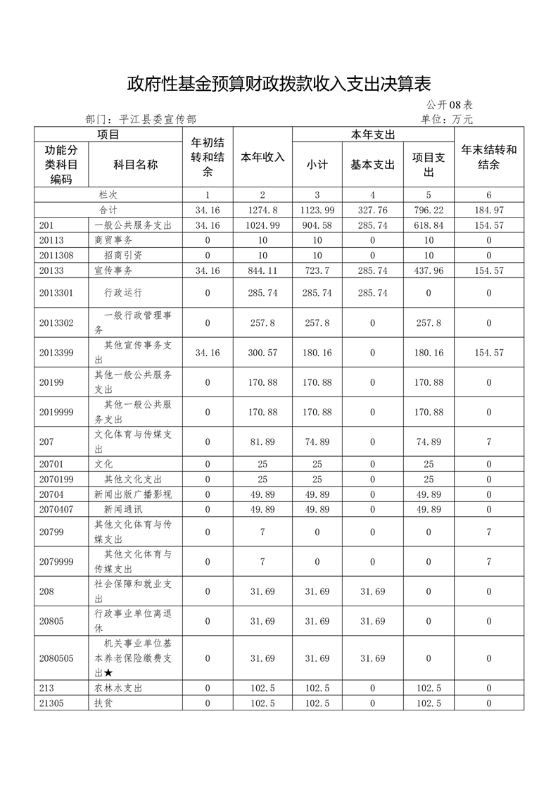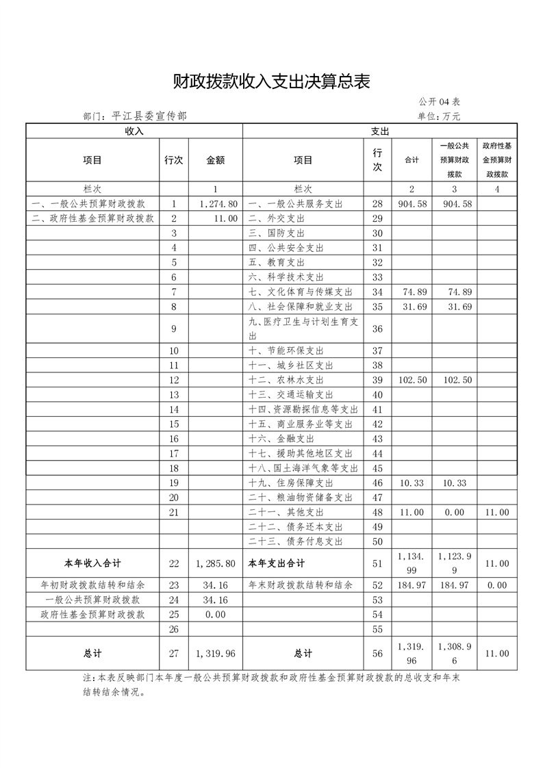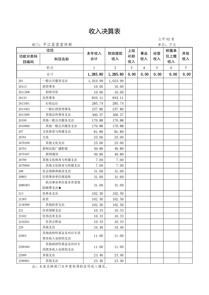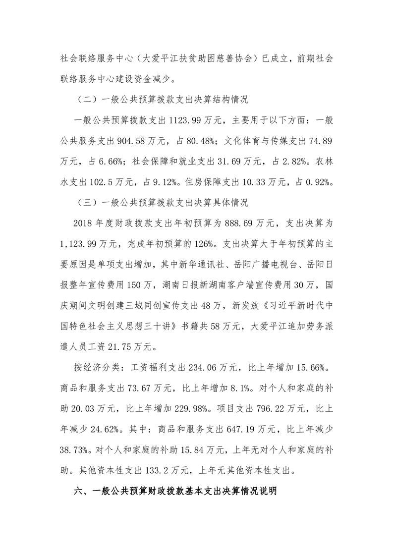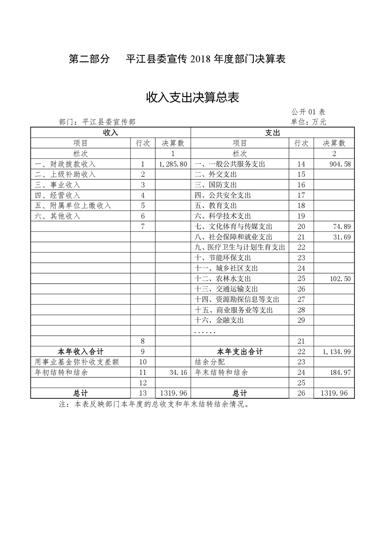 平江县委宣传部2018年度部门决算编报说明