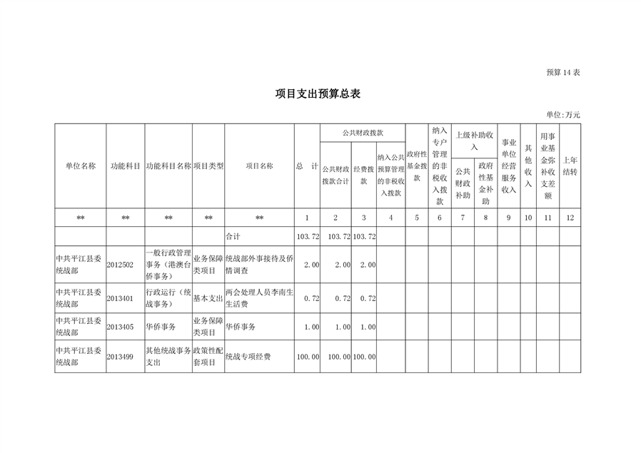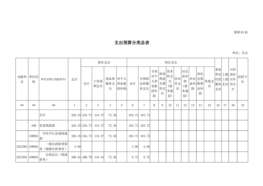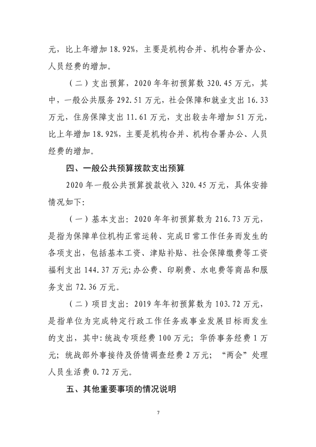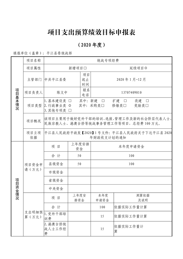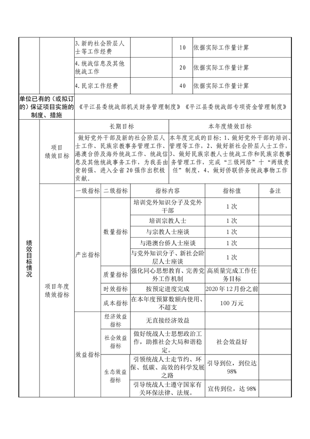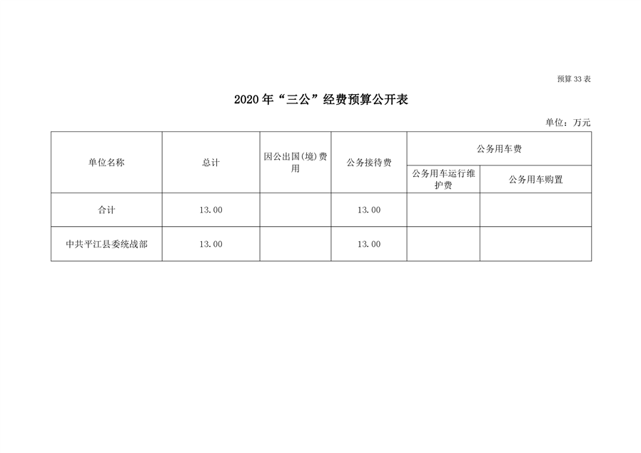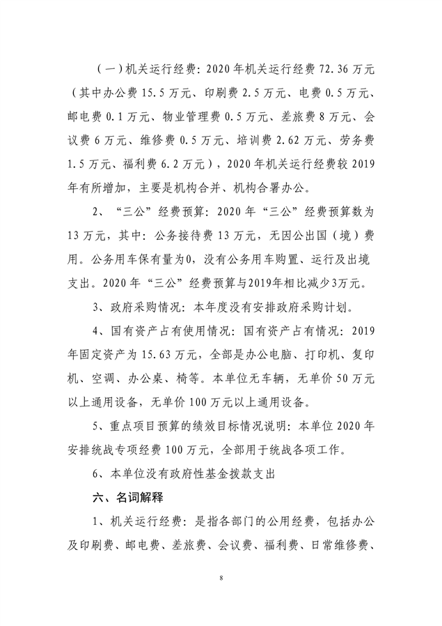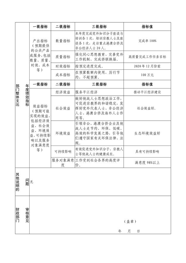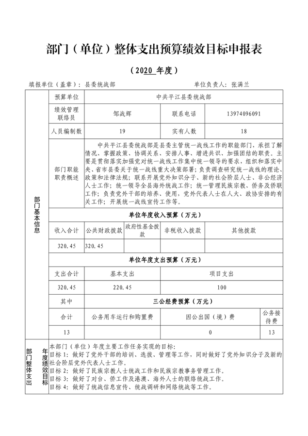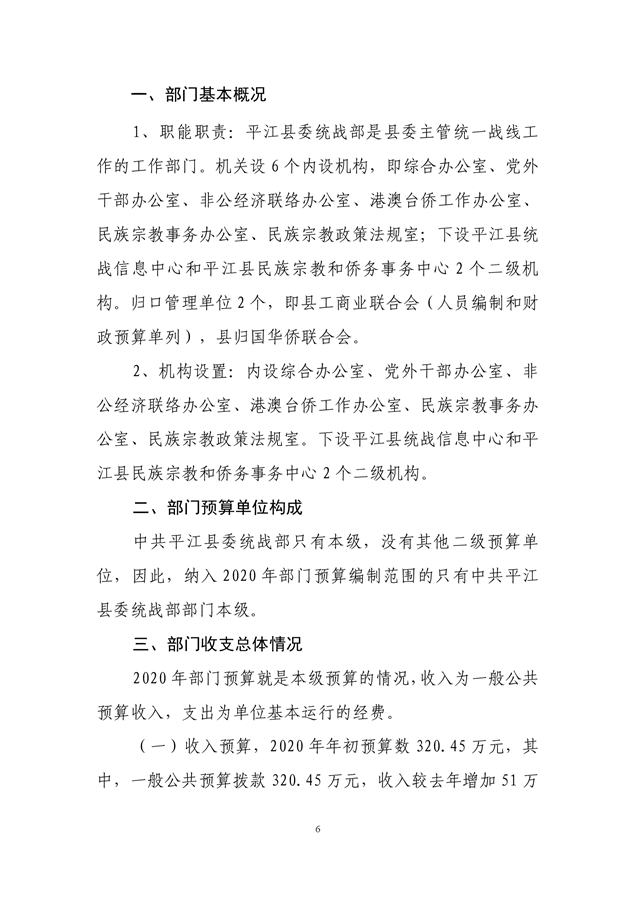 平江县委统战部2020年部门预算