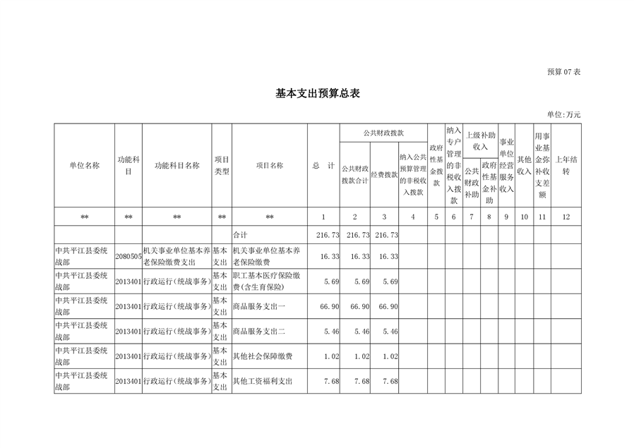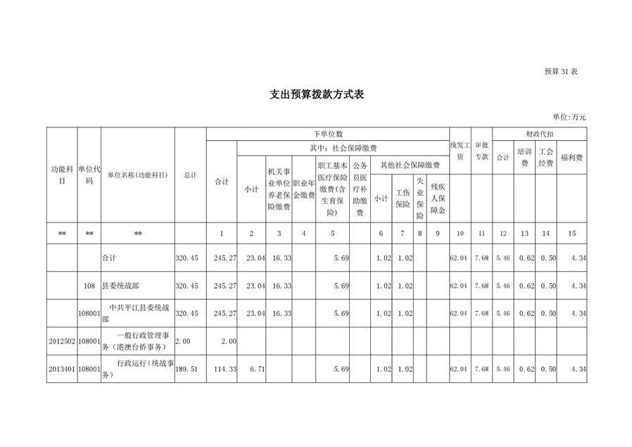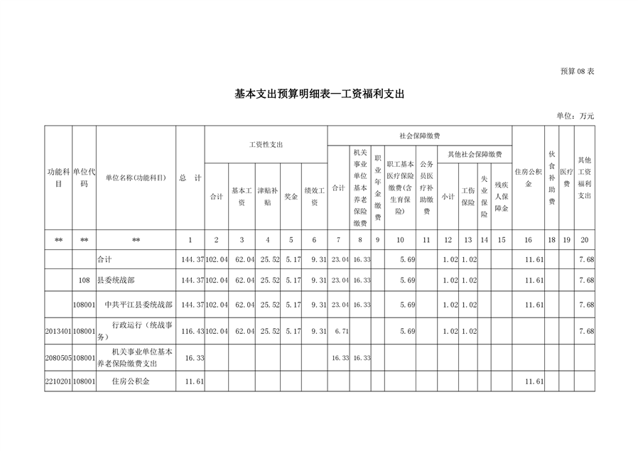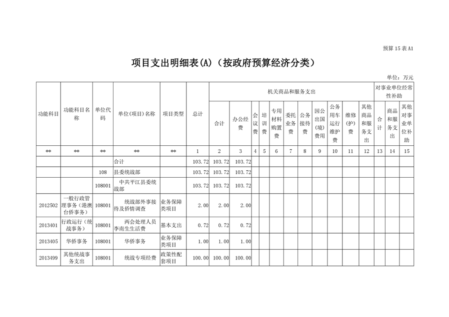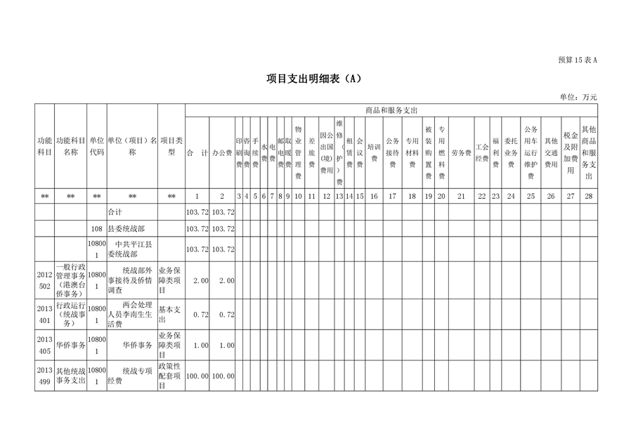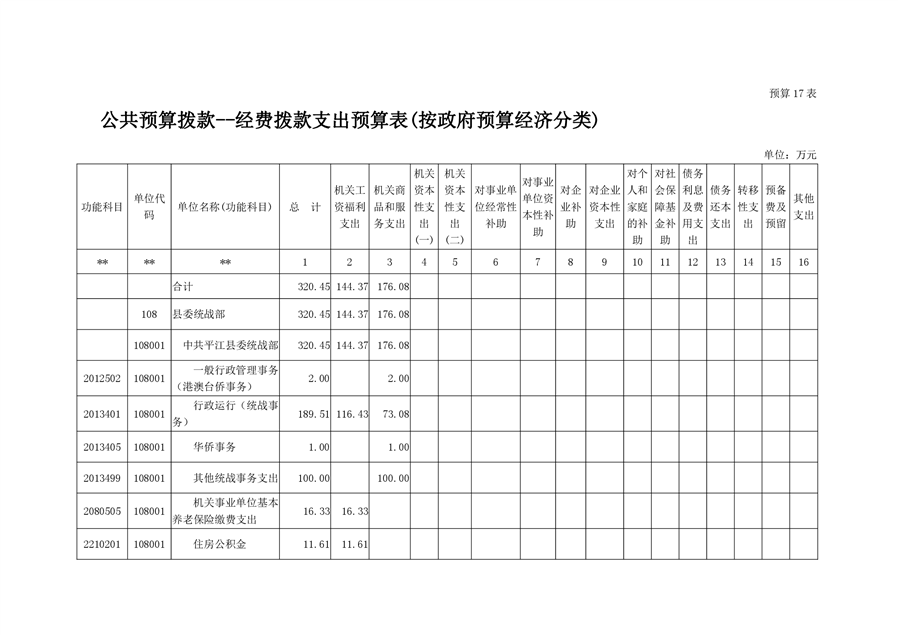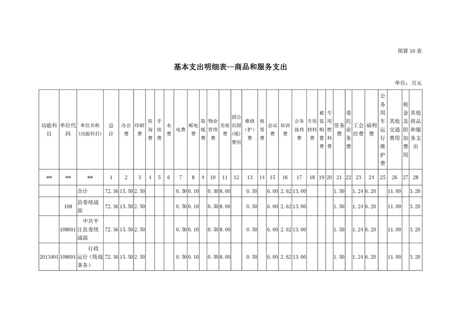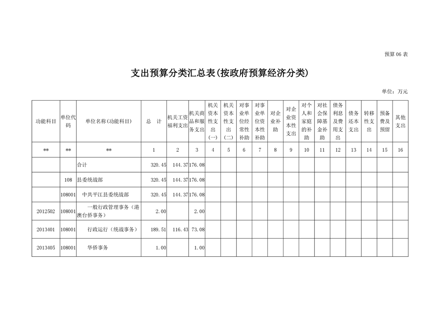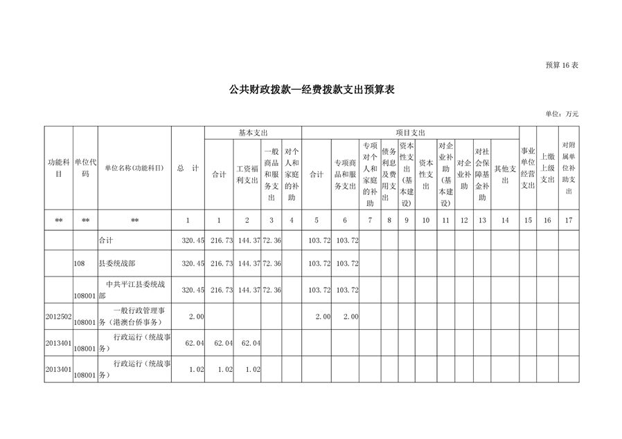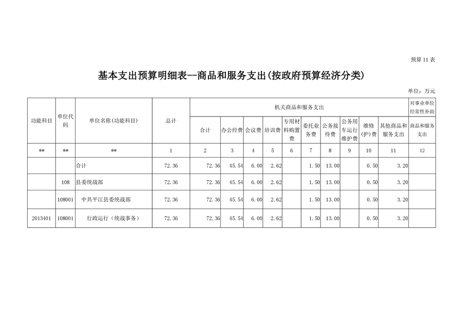 平江县委统战部2020年部门预算