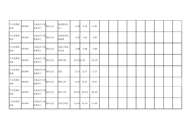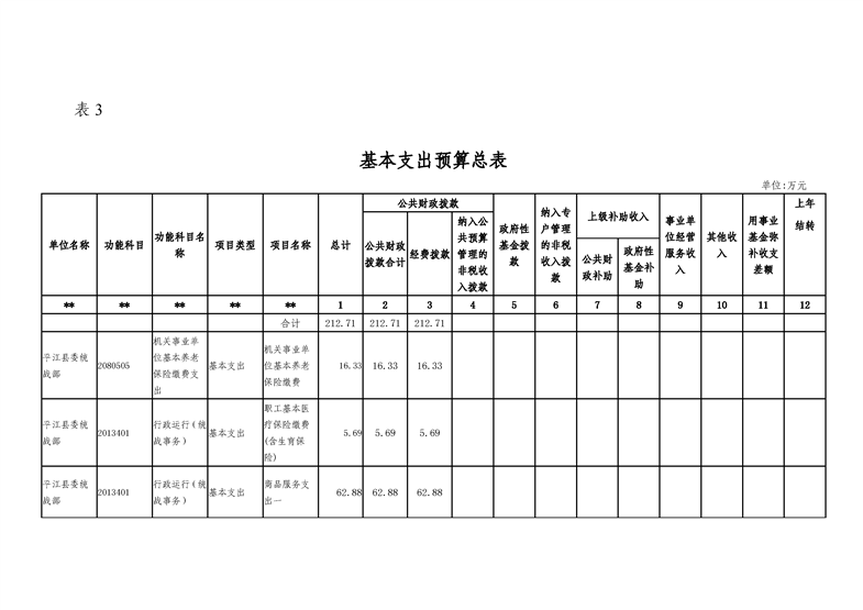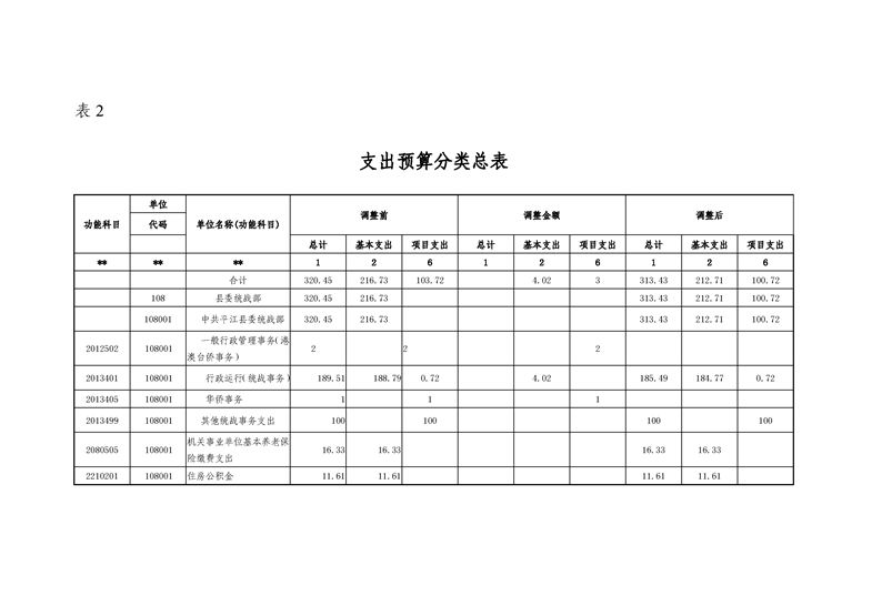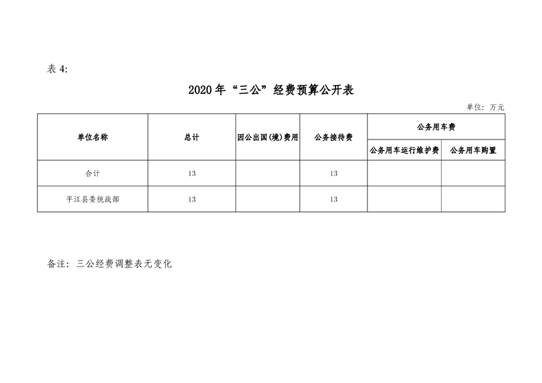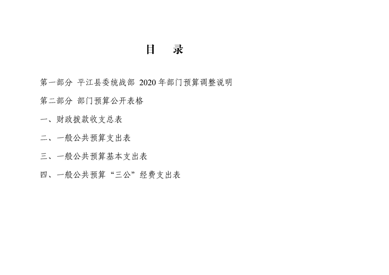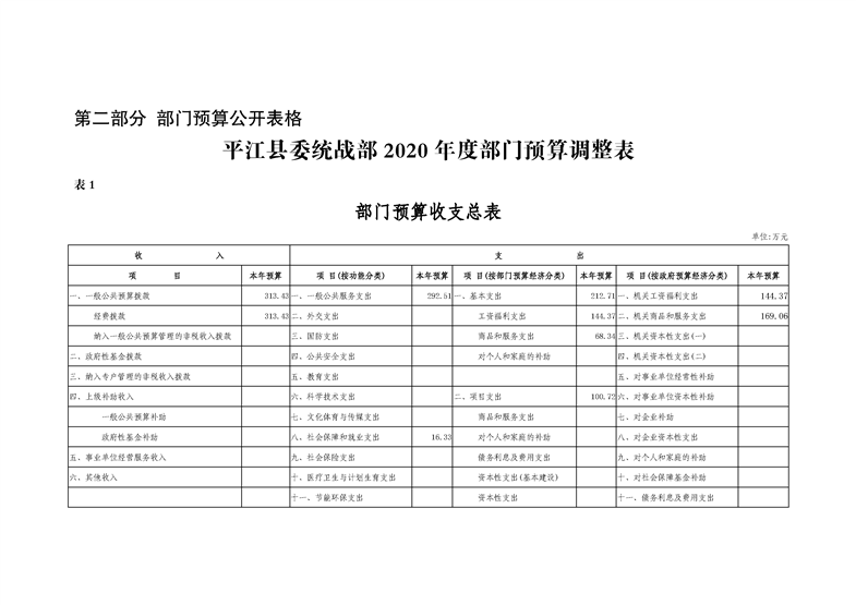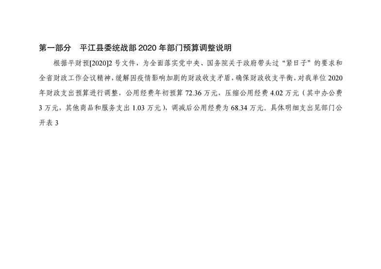 平江县委统战部2020年部门预算调整