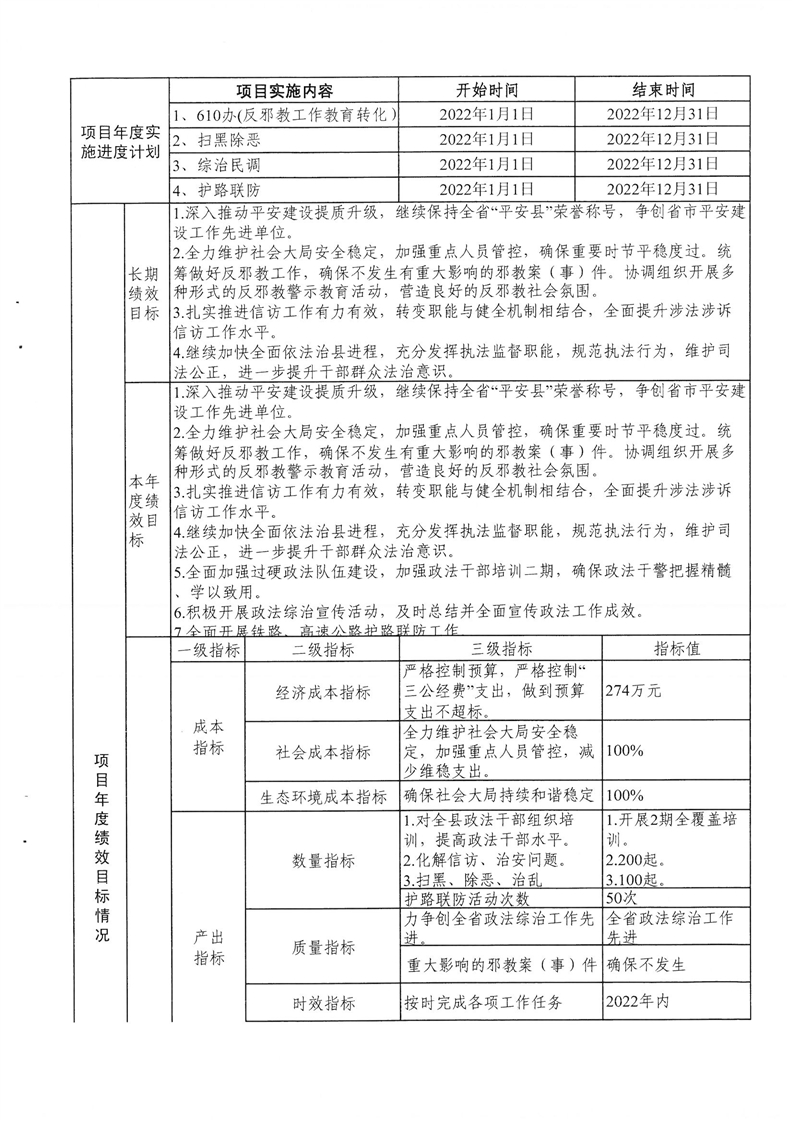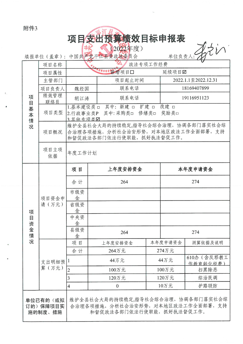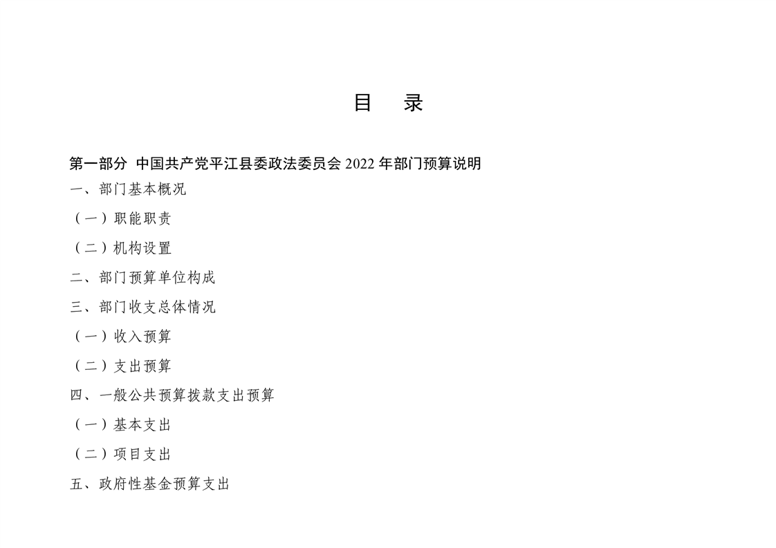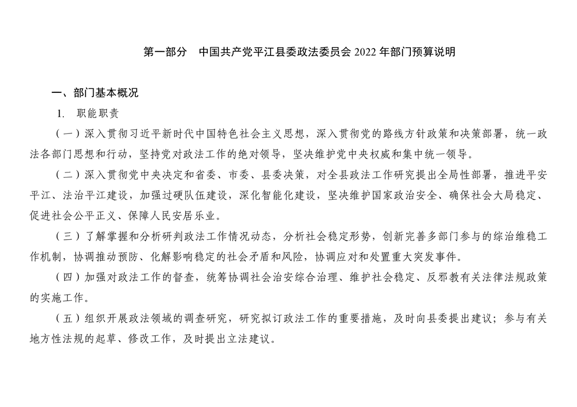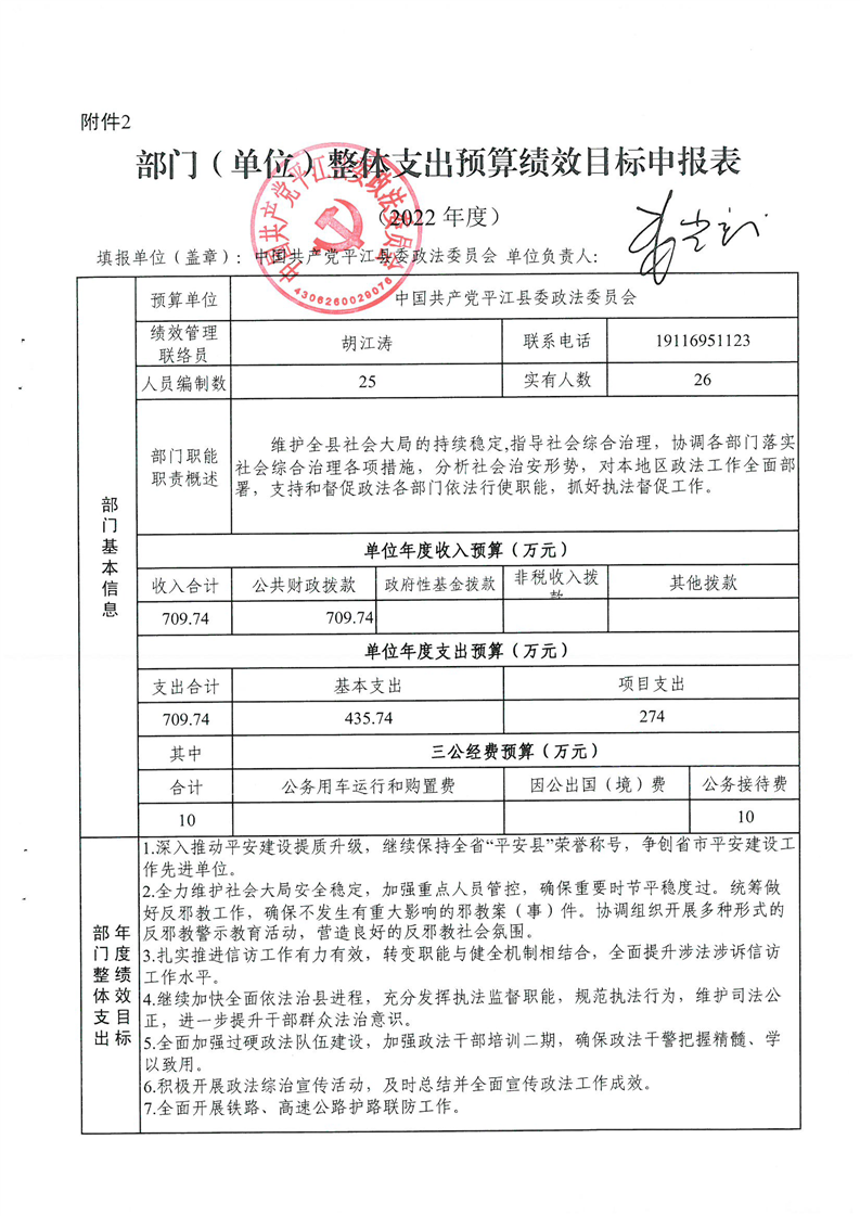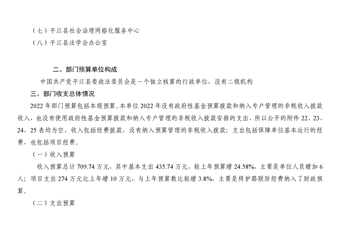 中共平江县委政法委员会2022年度部门预算