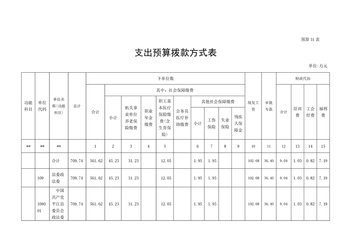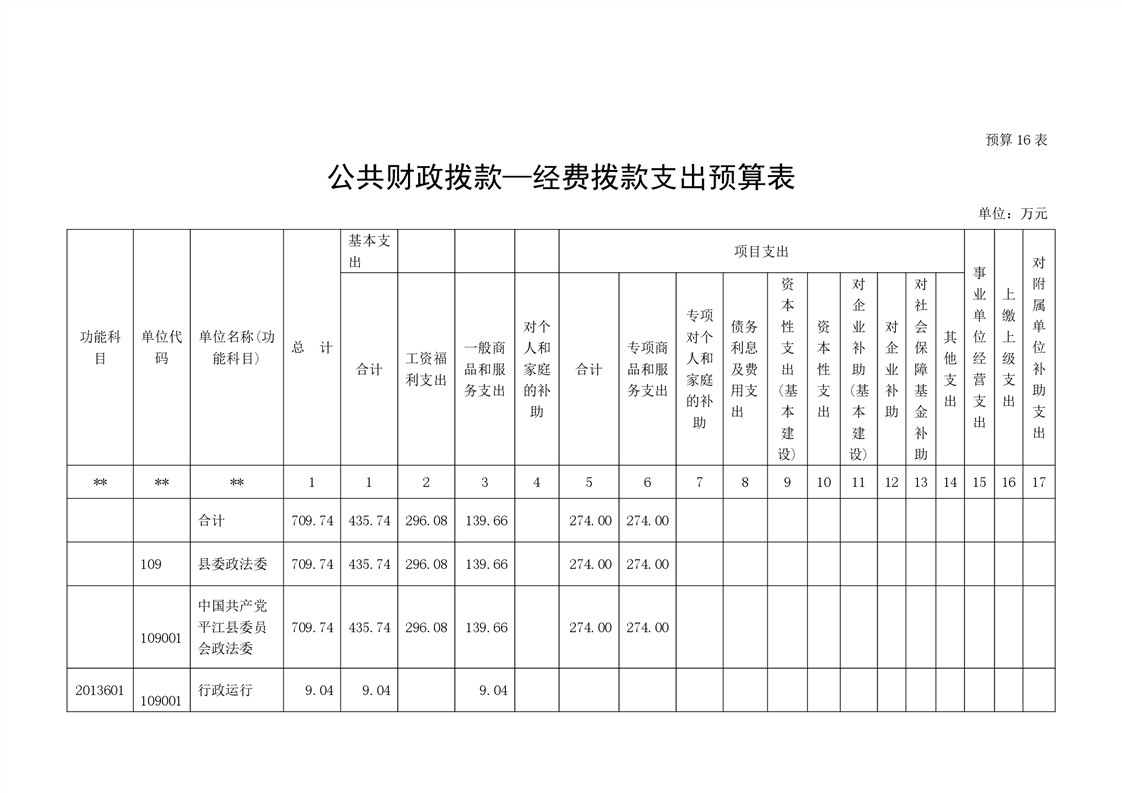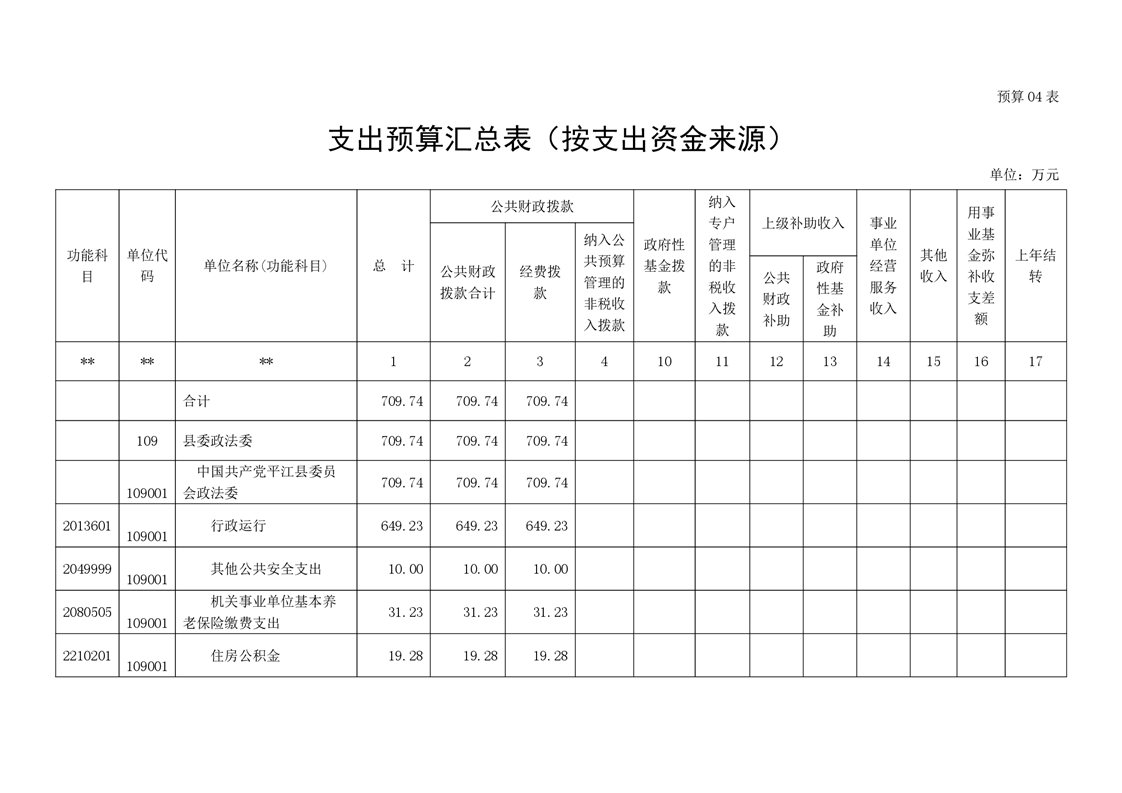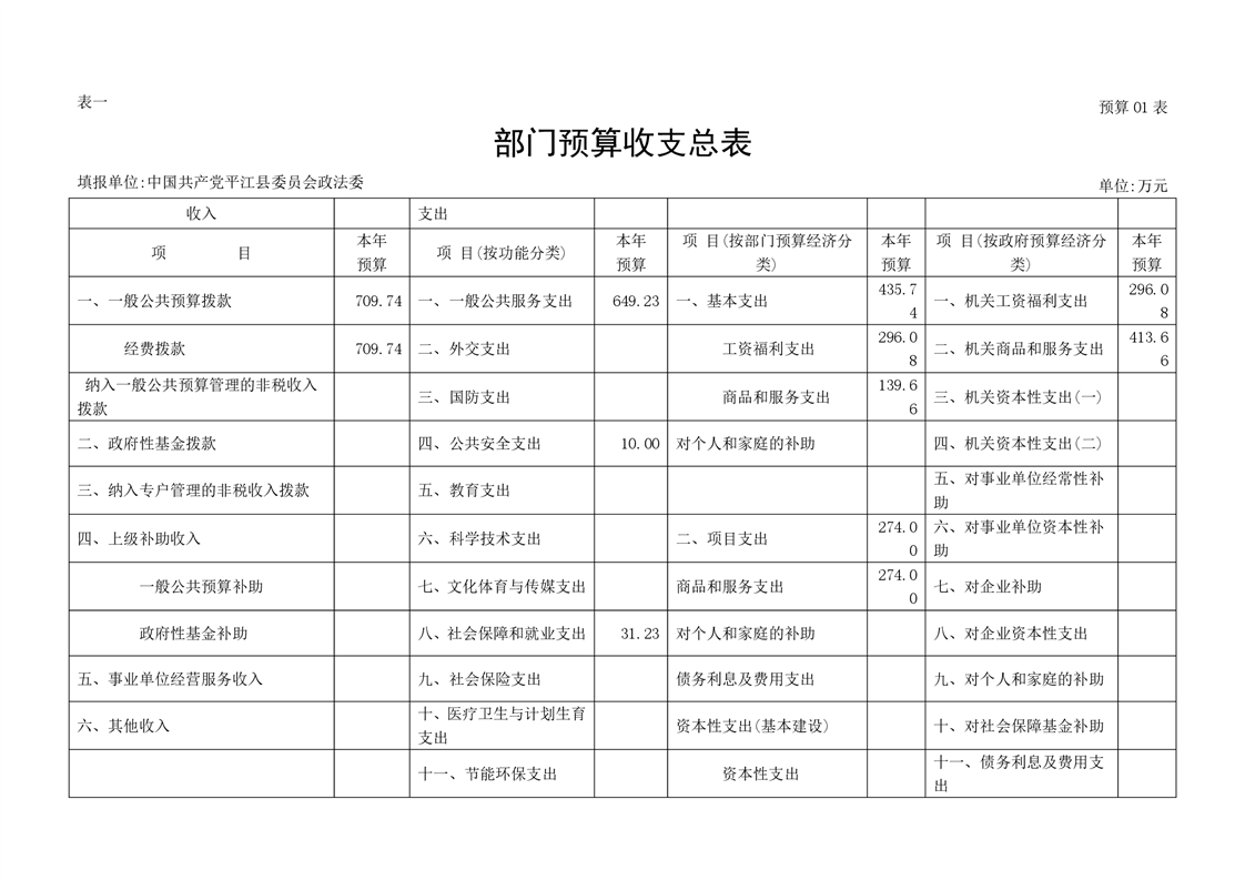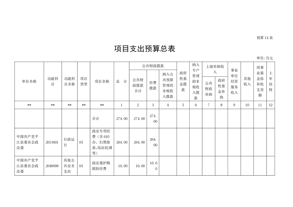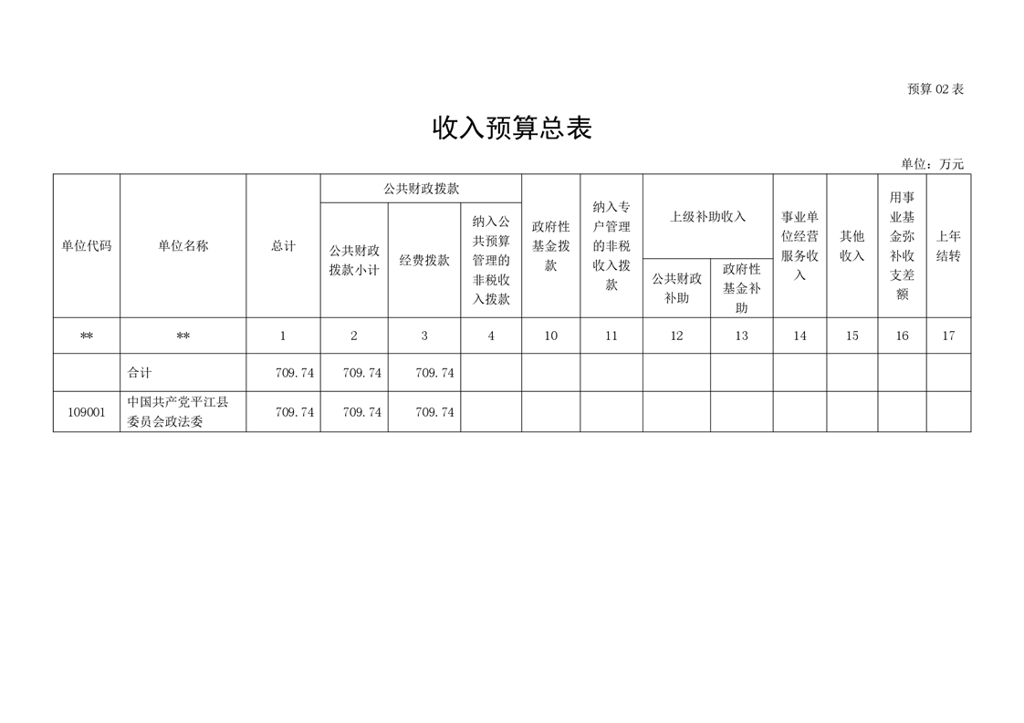 中共平江县委政法委员会2022年度部门预算