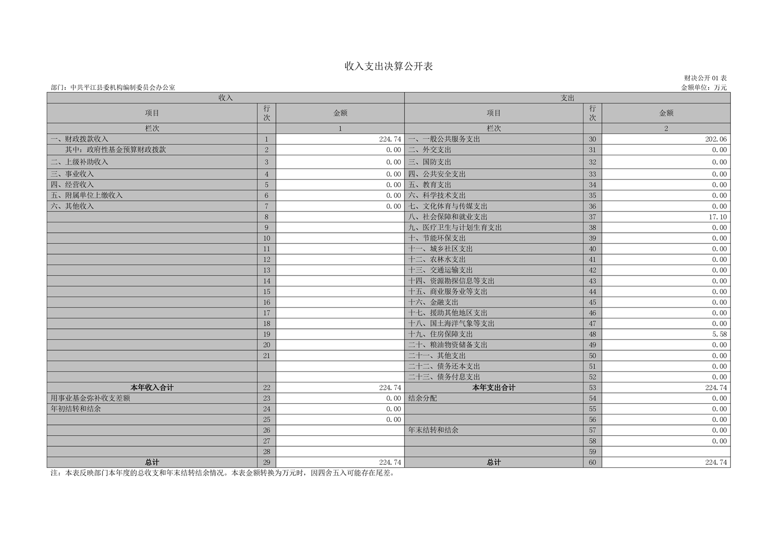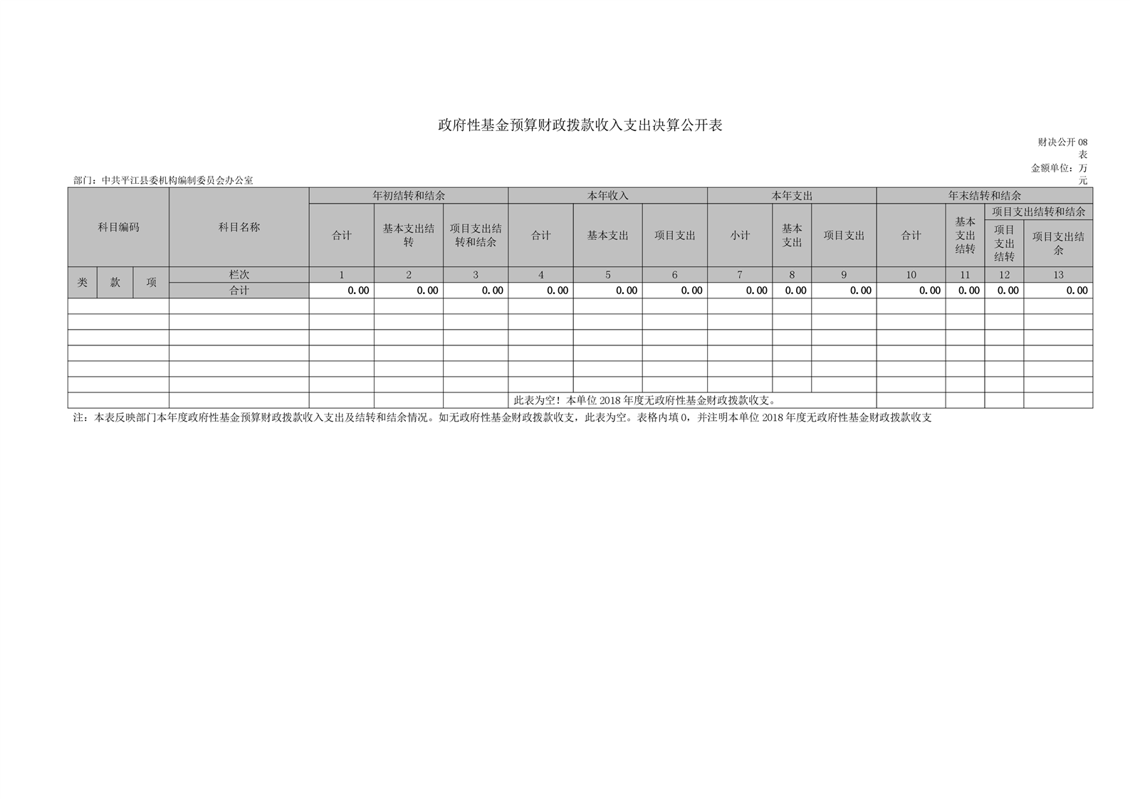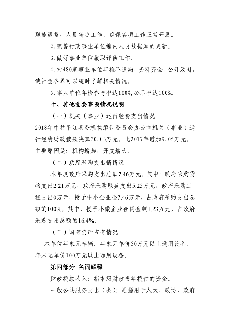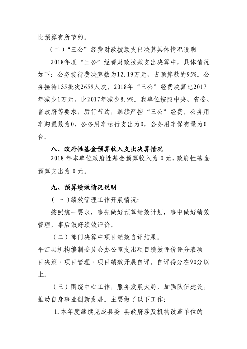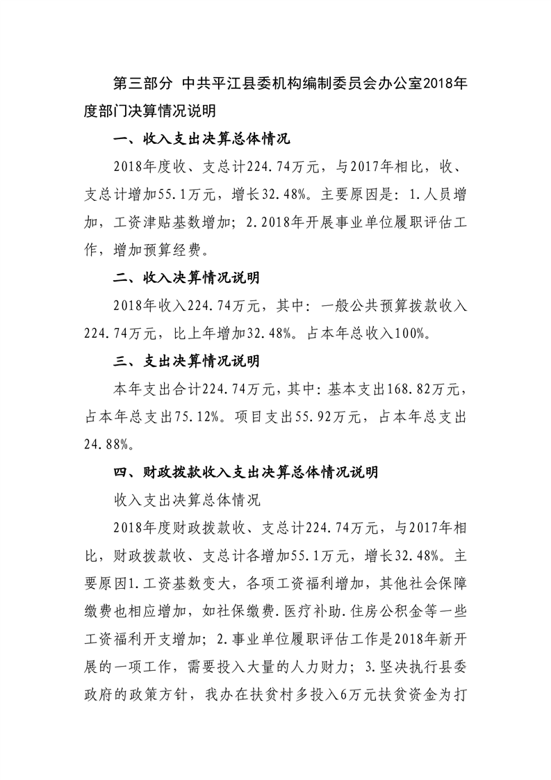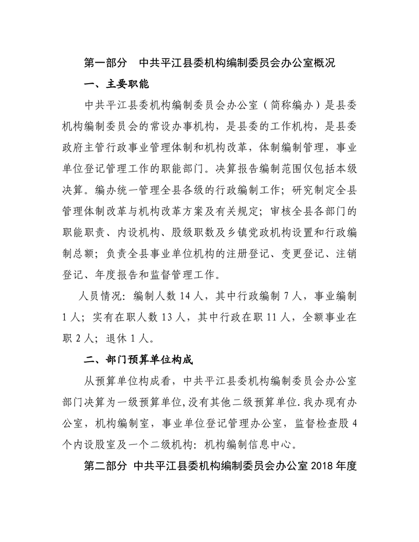 中共平江县委机构编制委员会办公室2018年部门决算编报说明