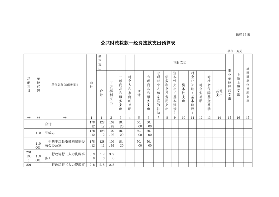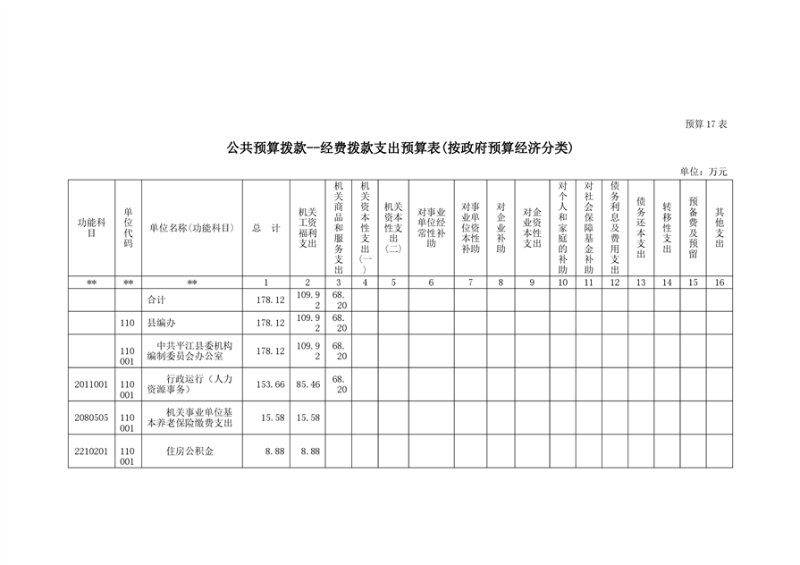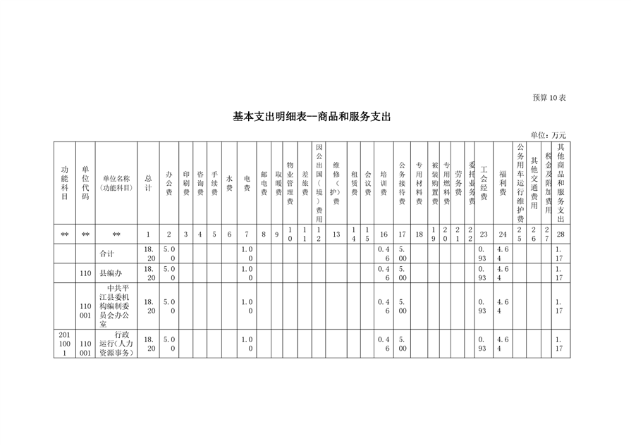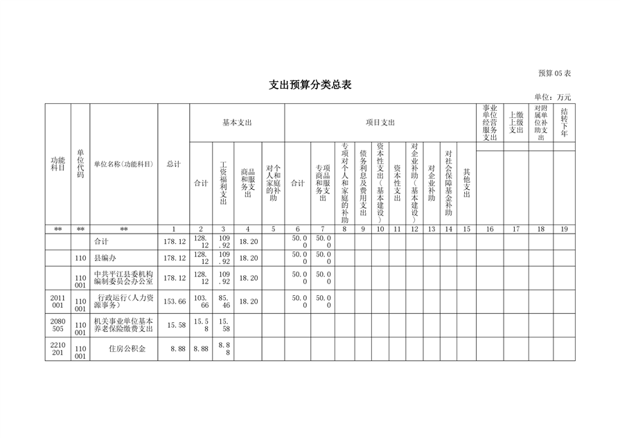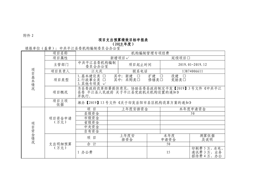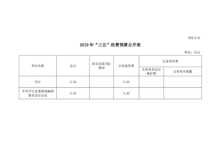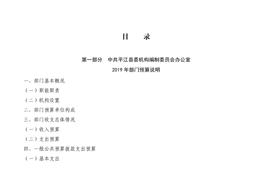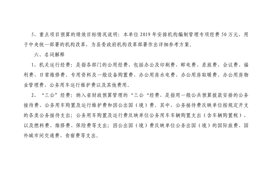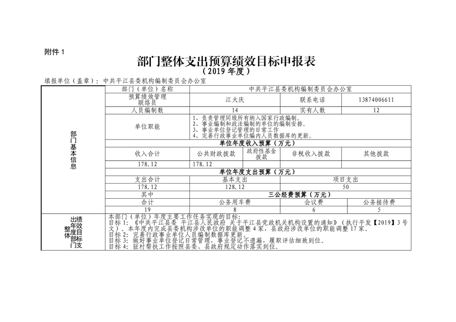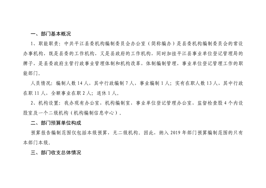 中共平江县委机构编制委员会办公室2019年部门预算编报说明