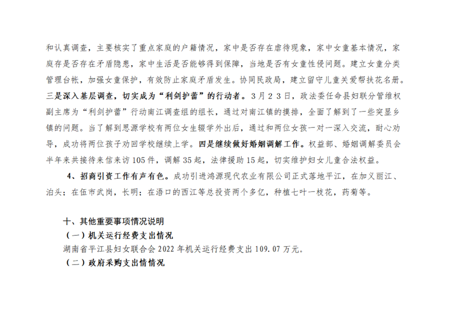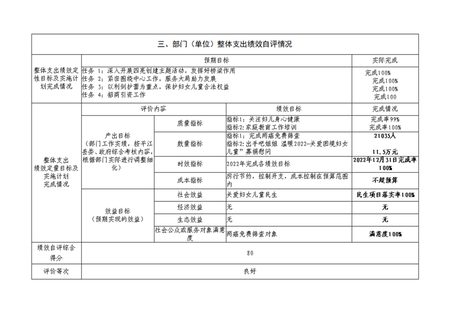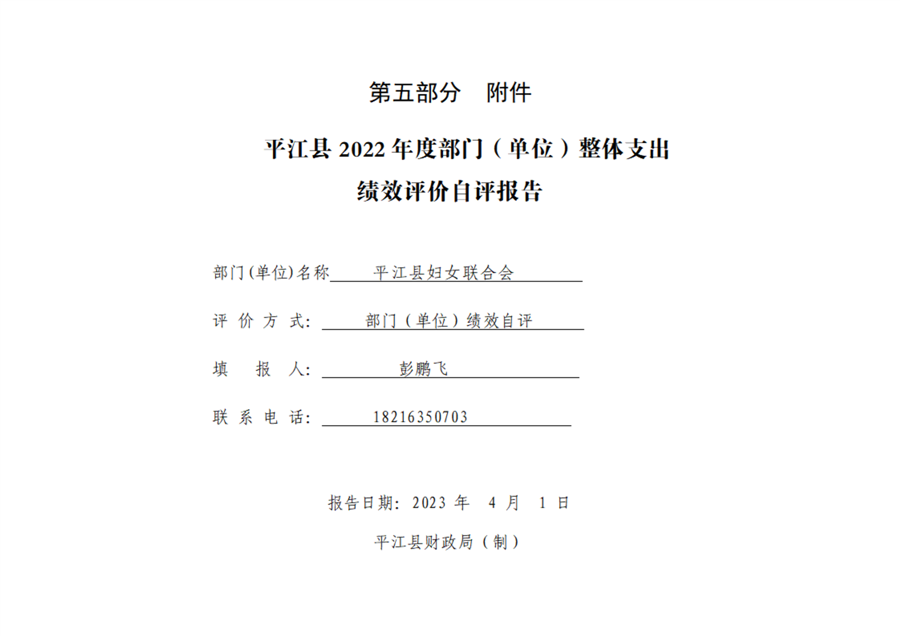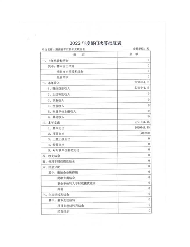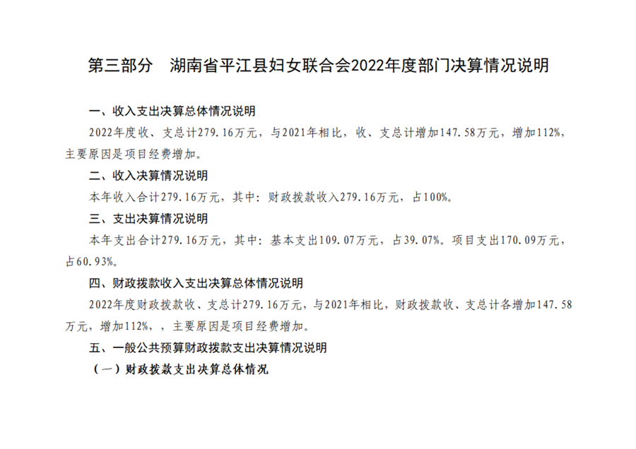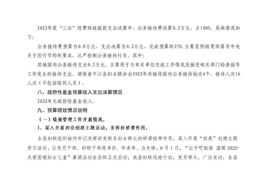 平江县妇女联合会2022年部门决算
