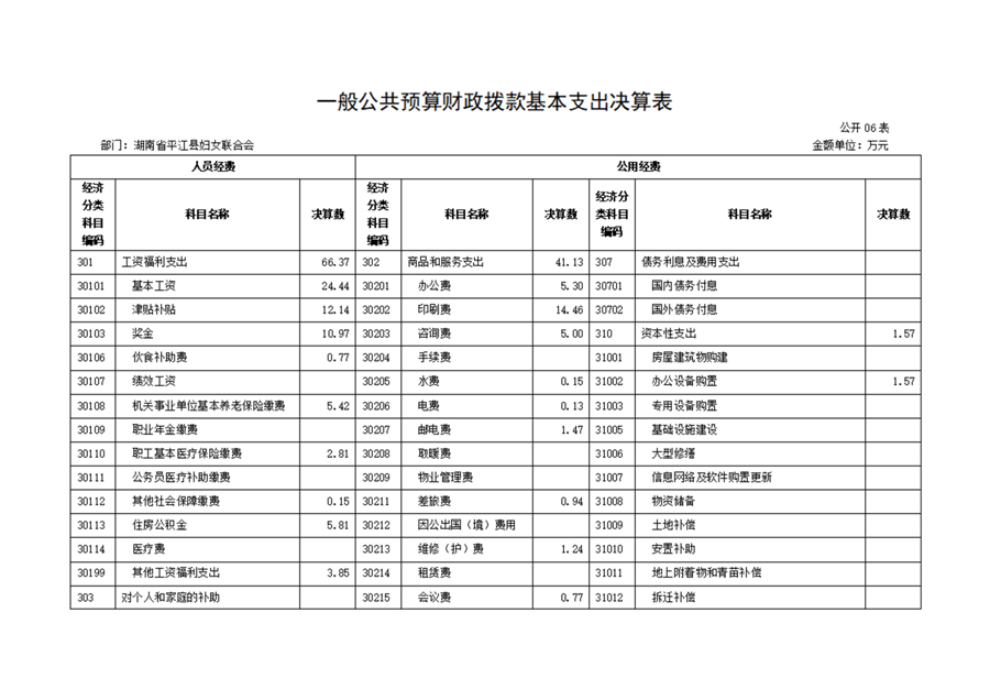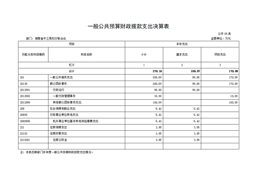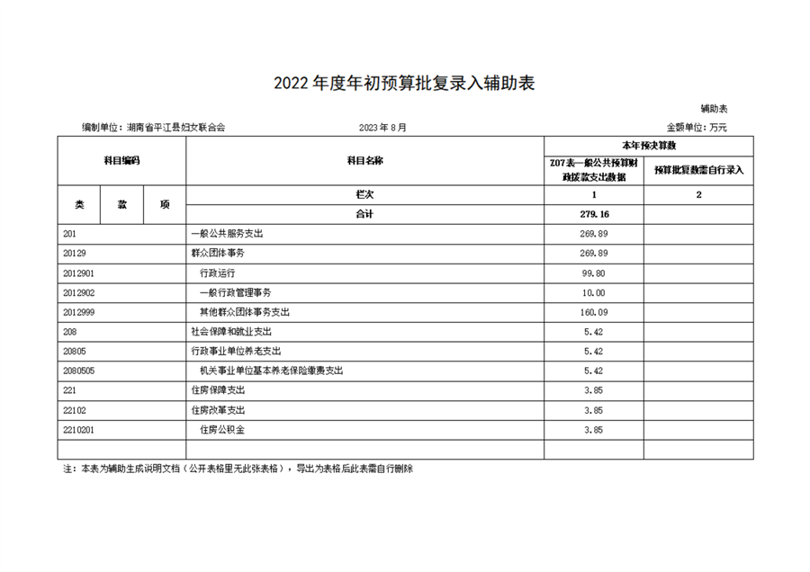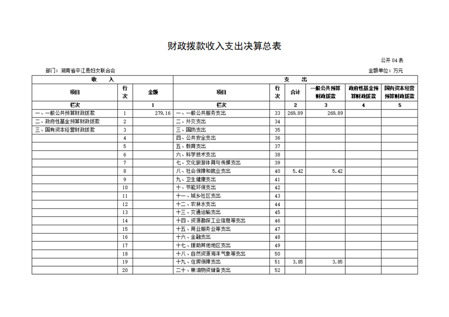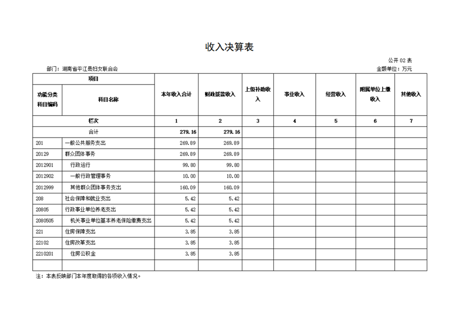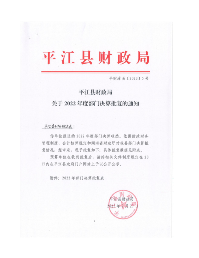 平江县妇女联合会2022年部门决算