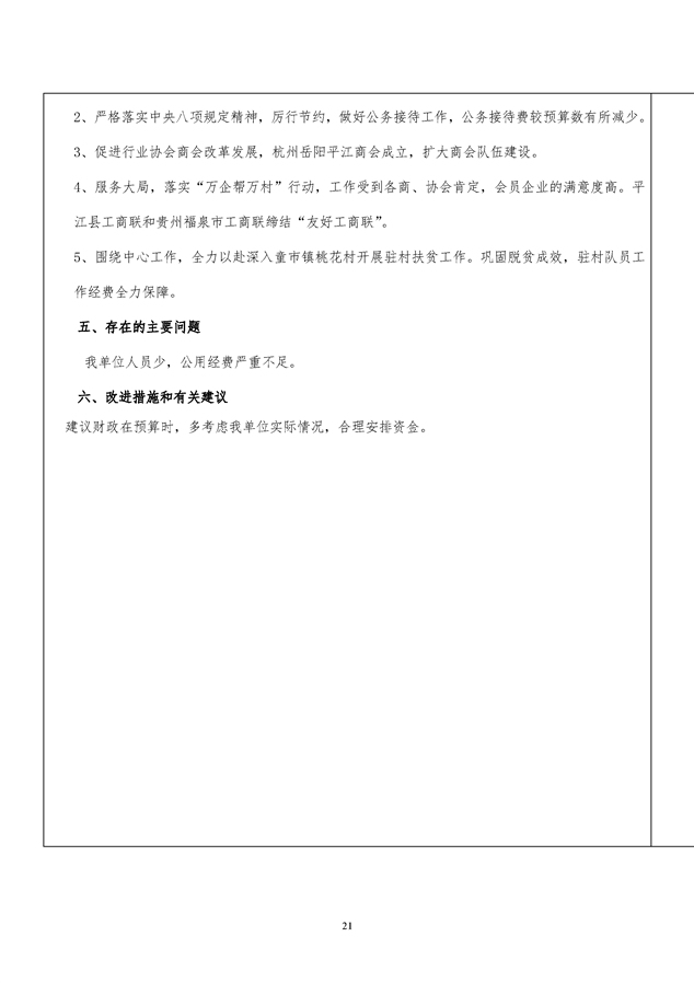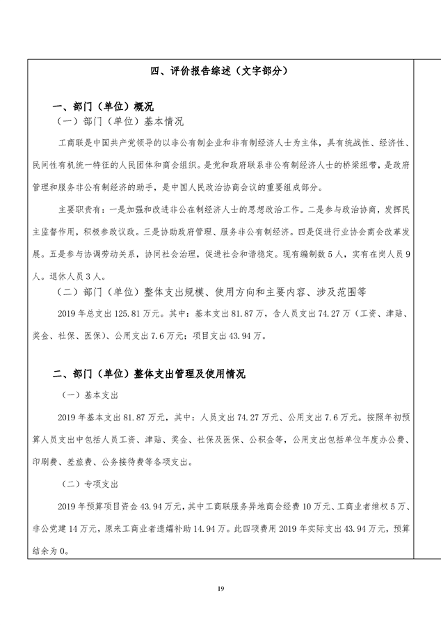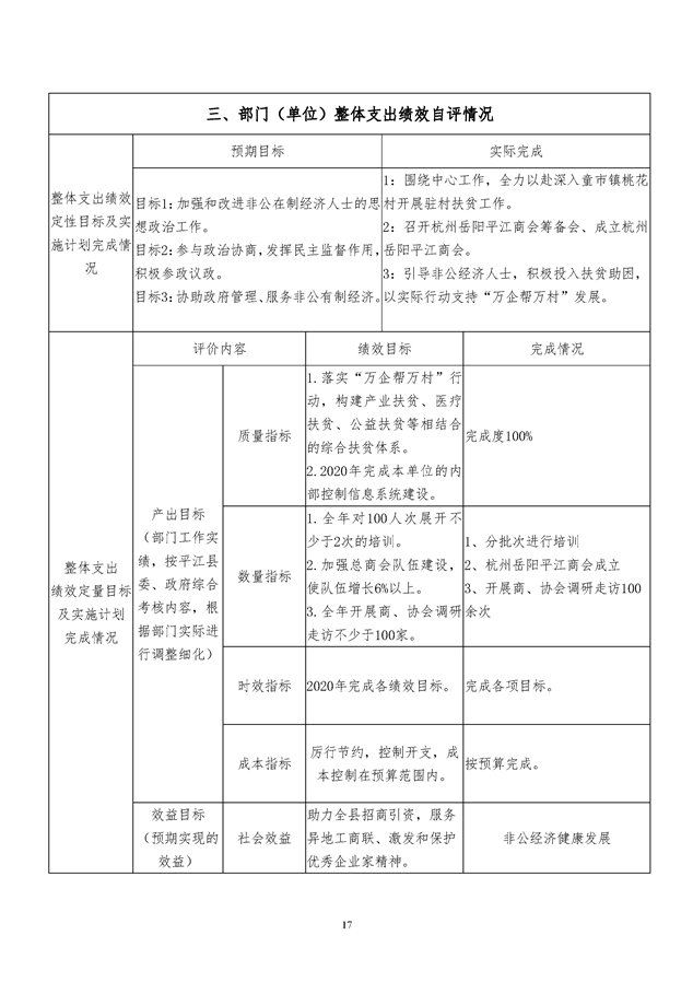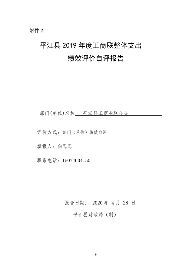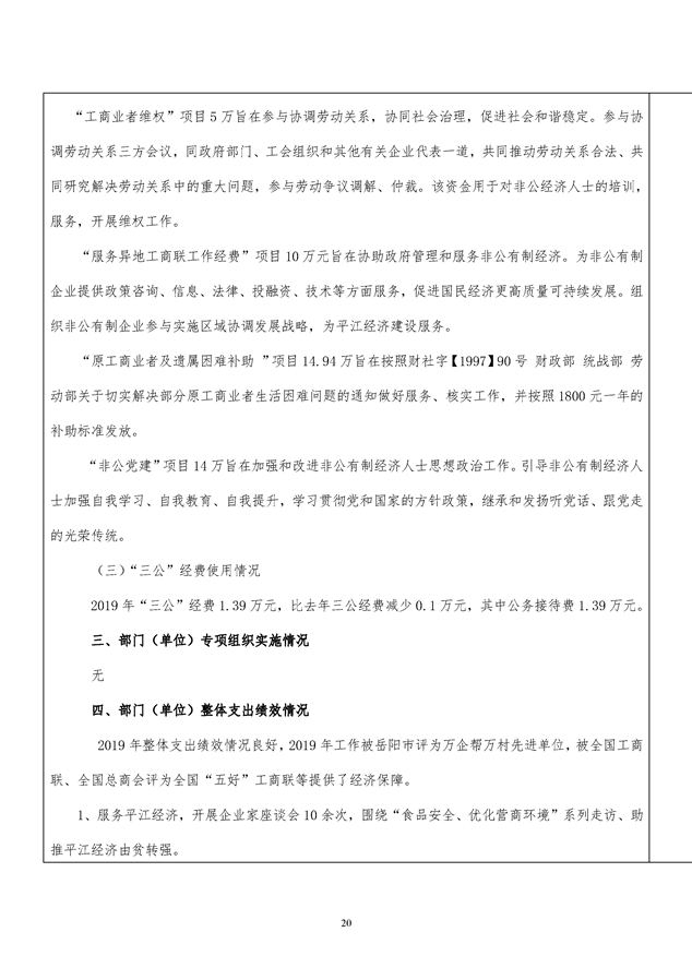 平江县工商业联合会2019年度整体支出绩效自评