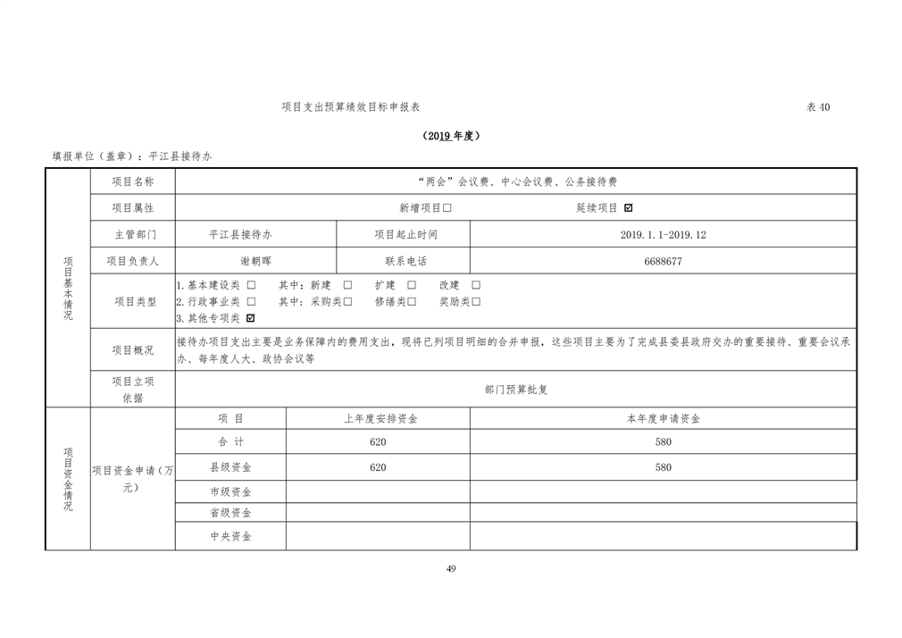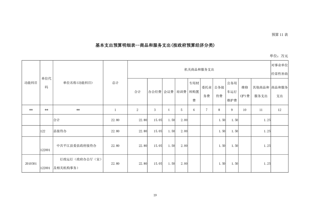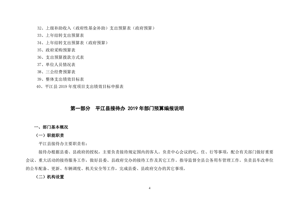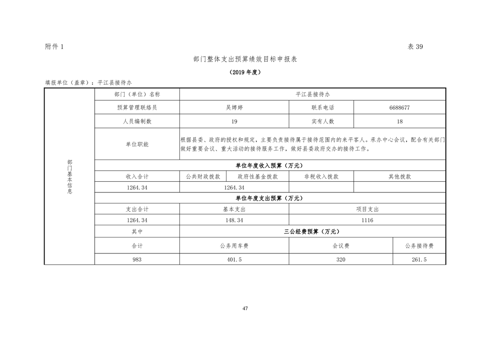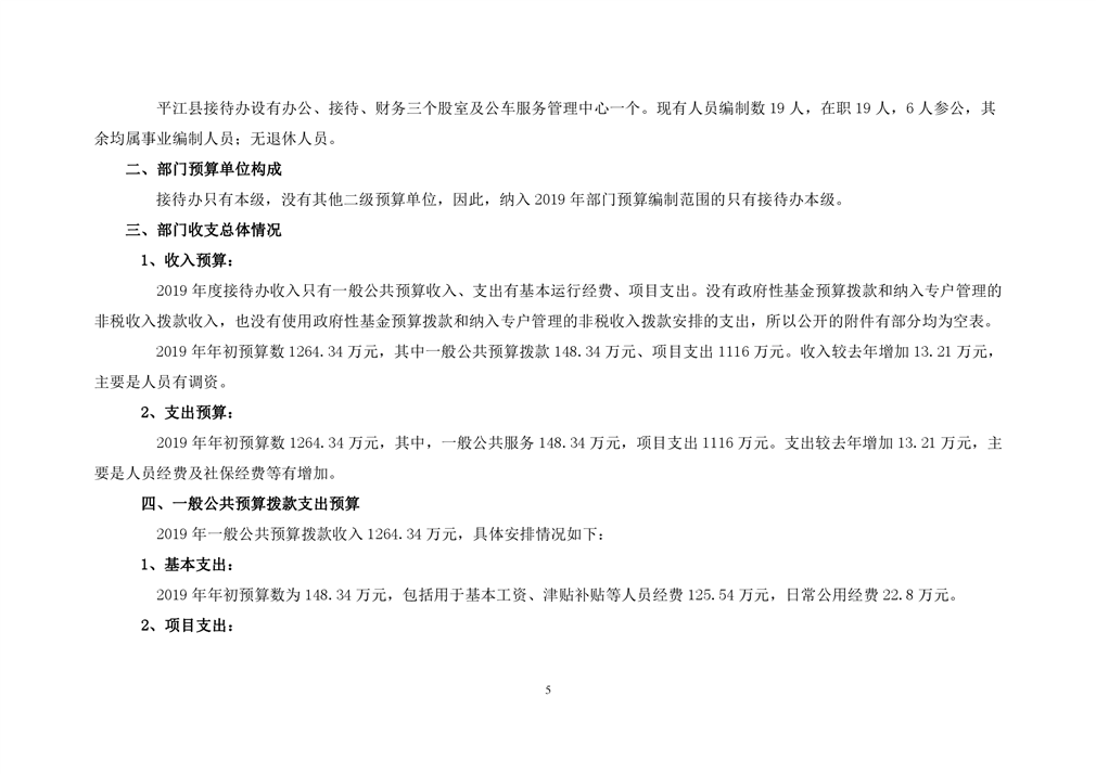 平江县接待办2019年部门预算编报说明