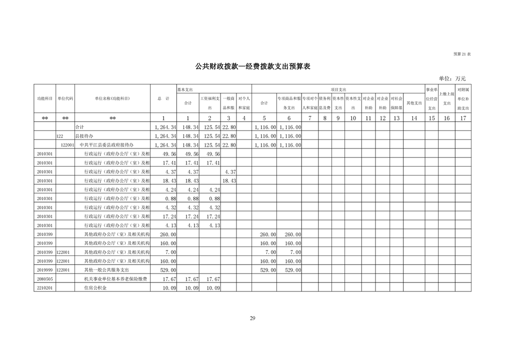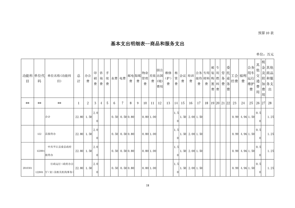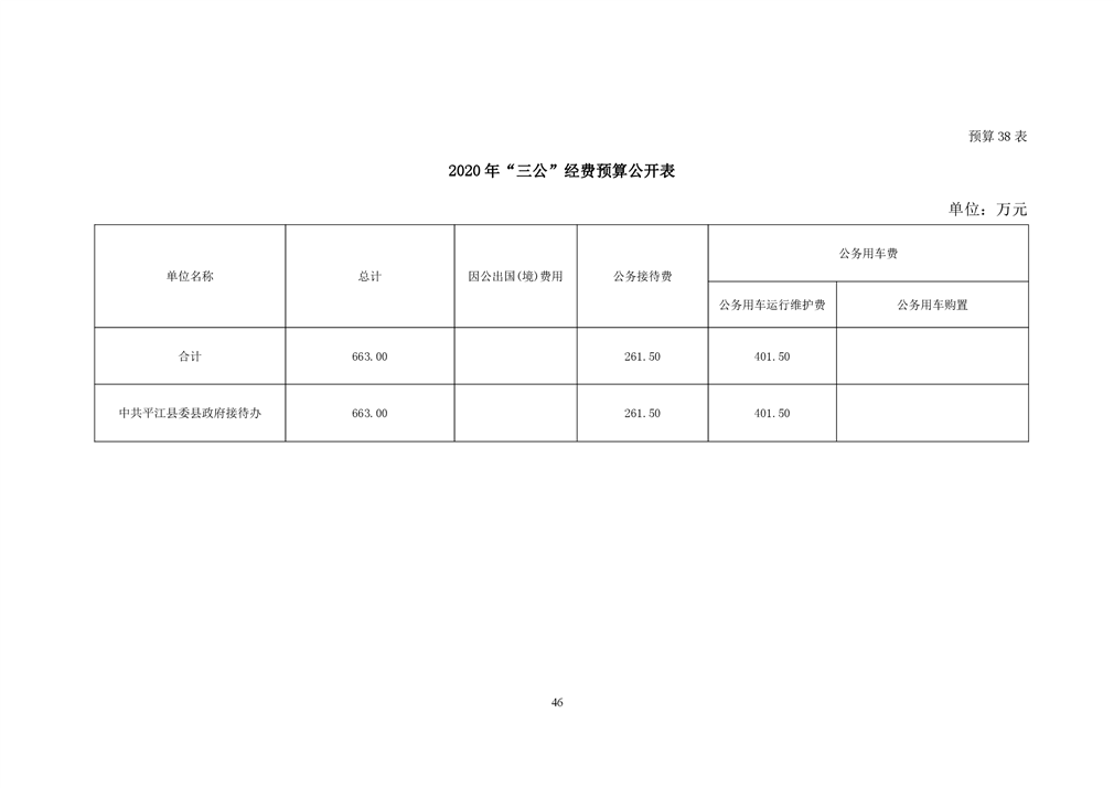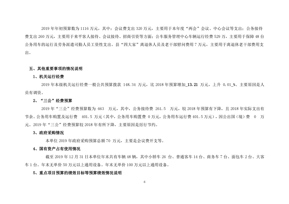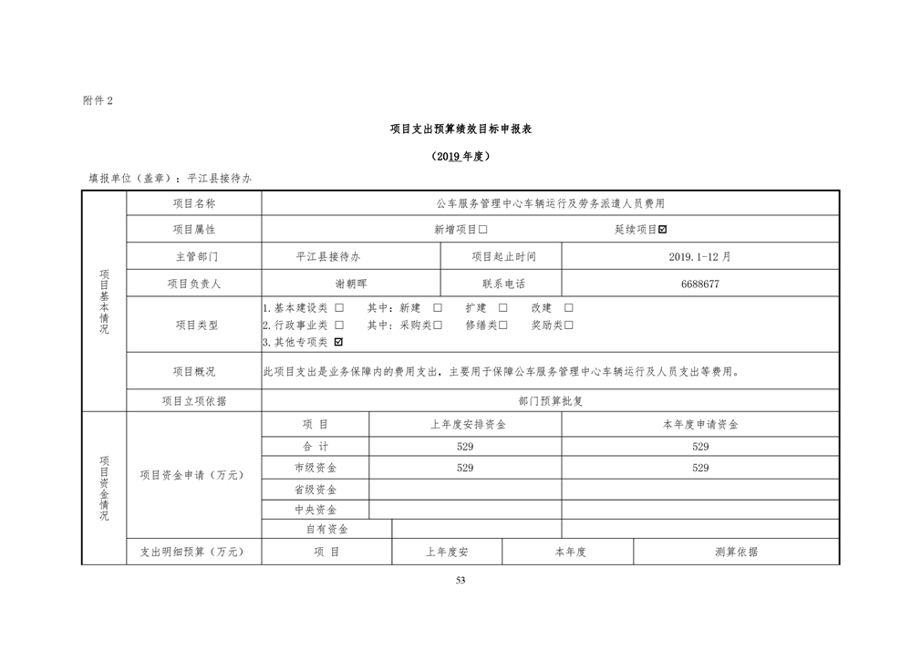 平江县接待办2019年部门预算编报说明