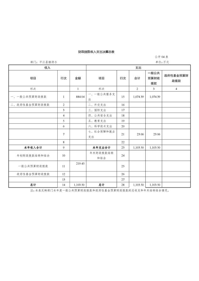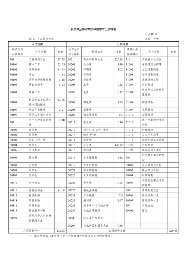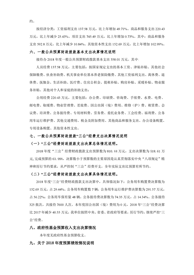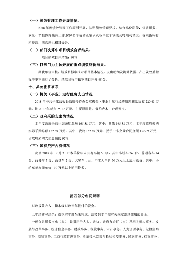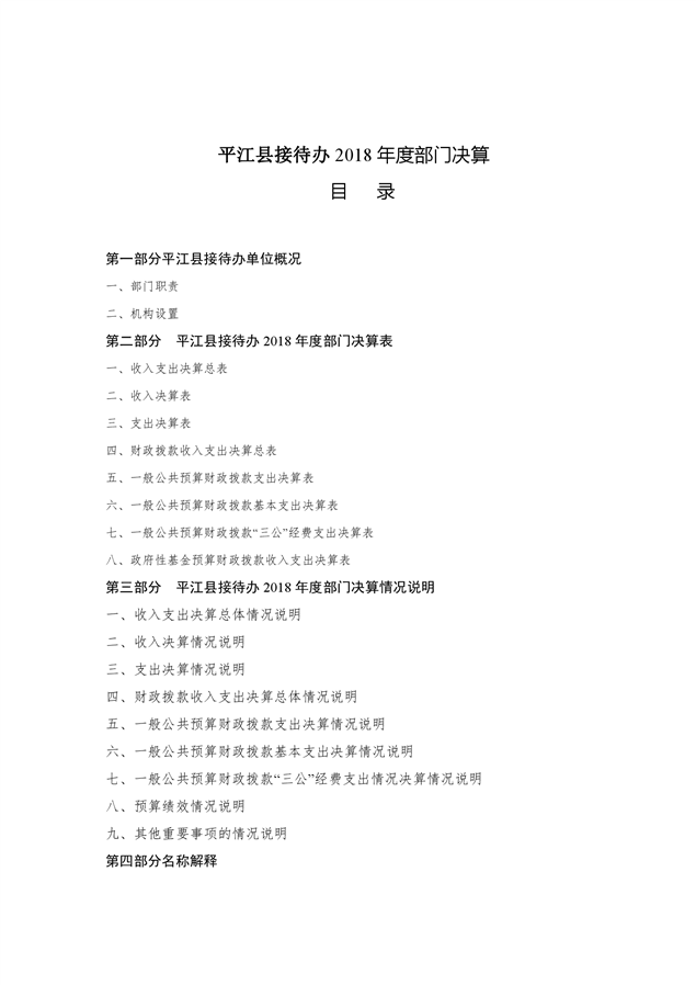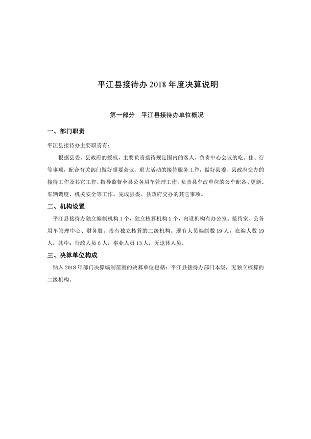 中共平江县委县政府接待办公室2018年部门决算编报说明