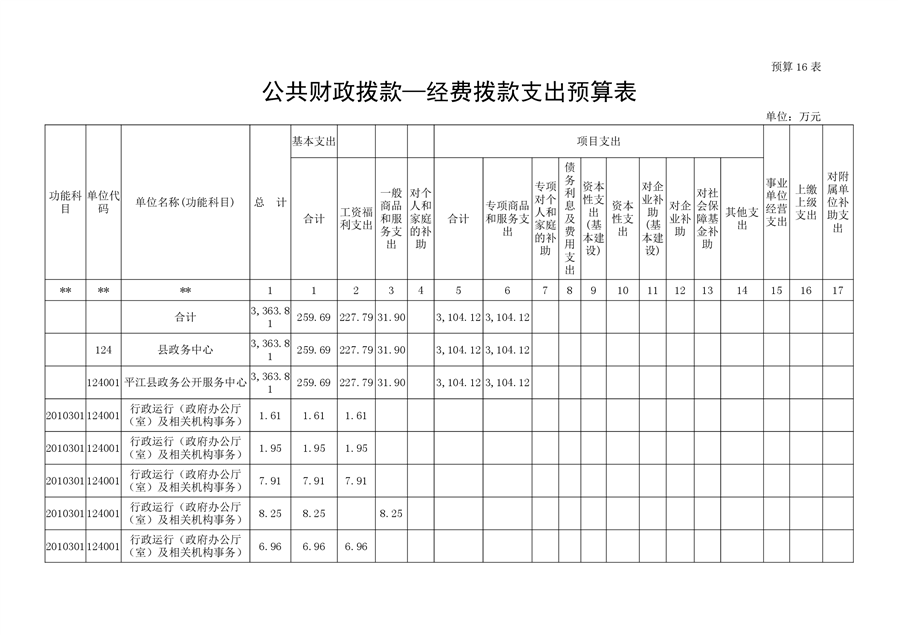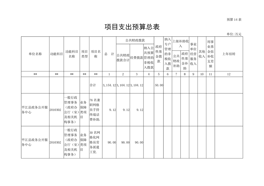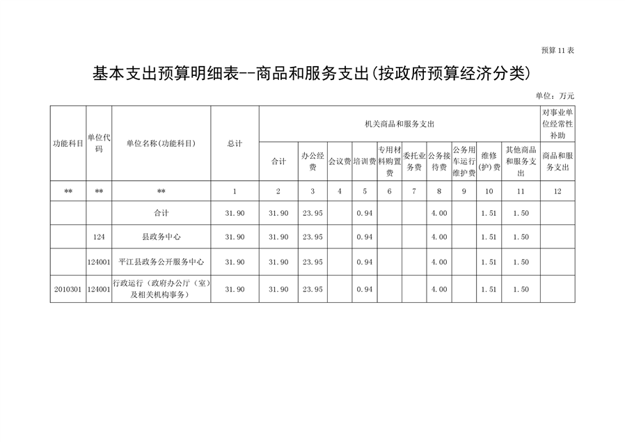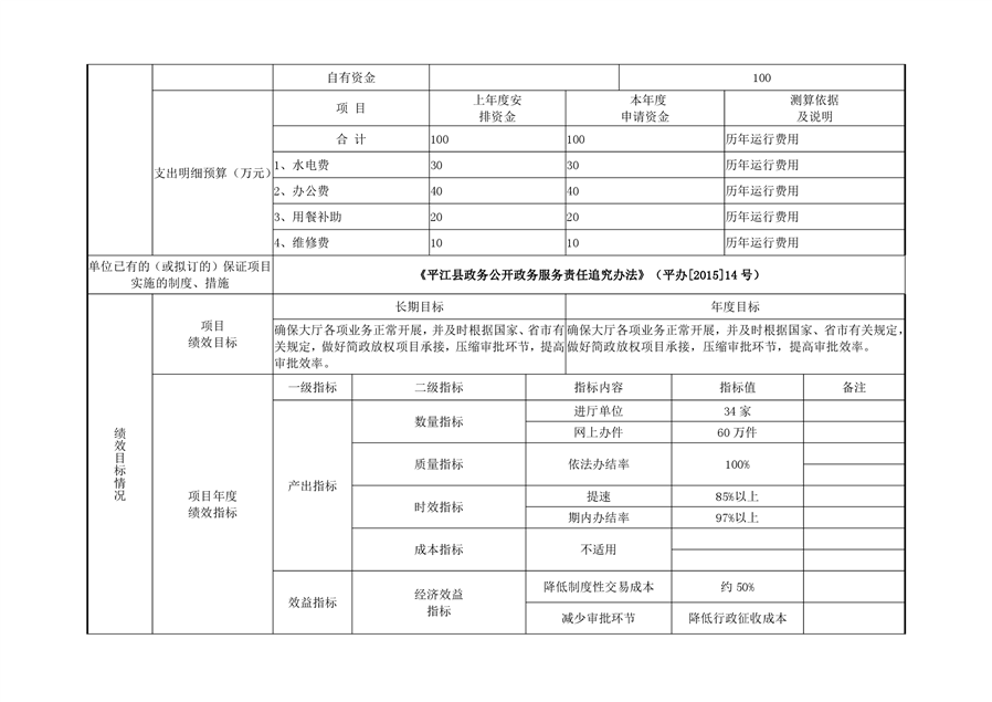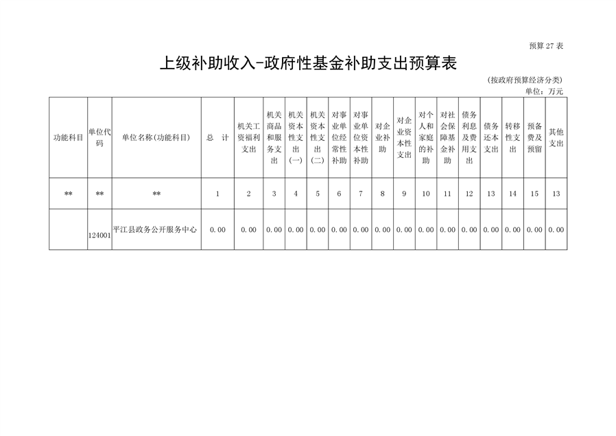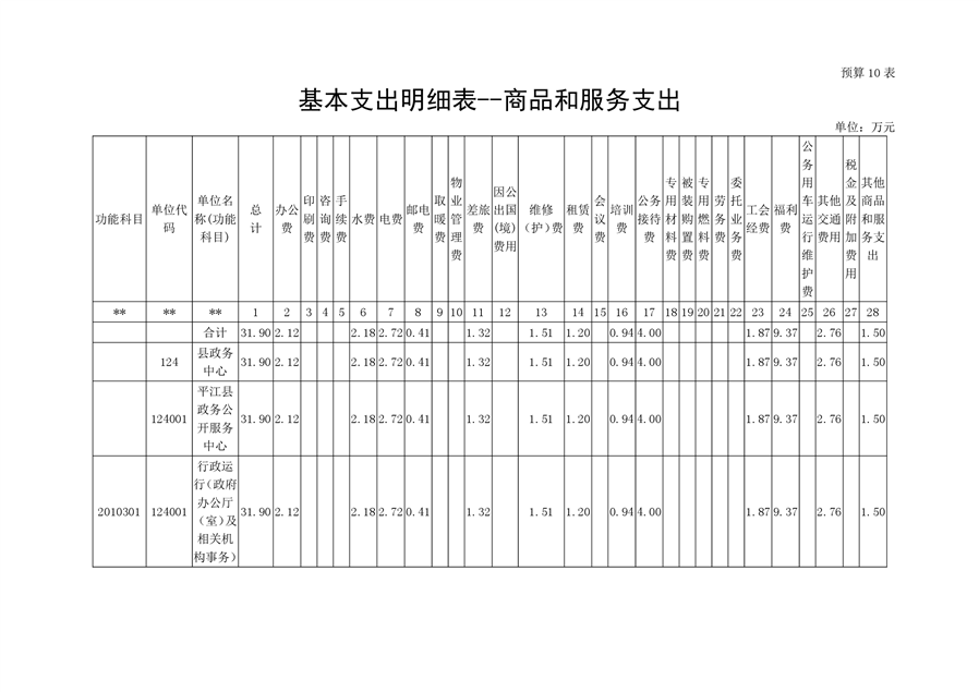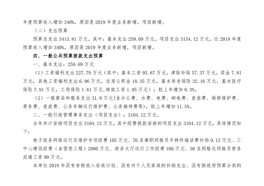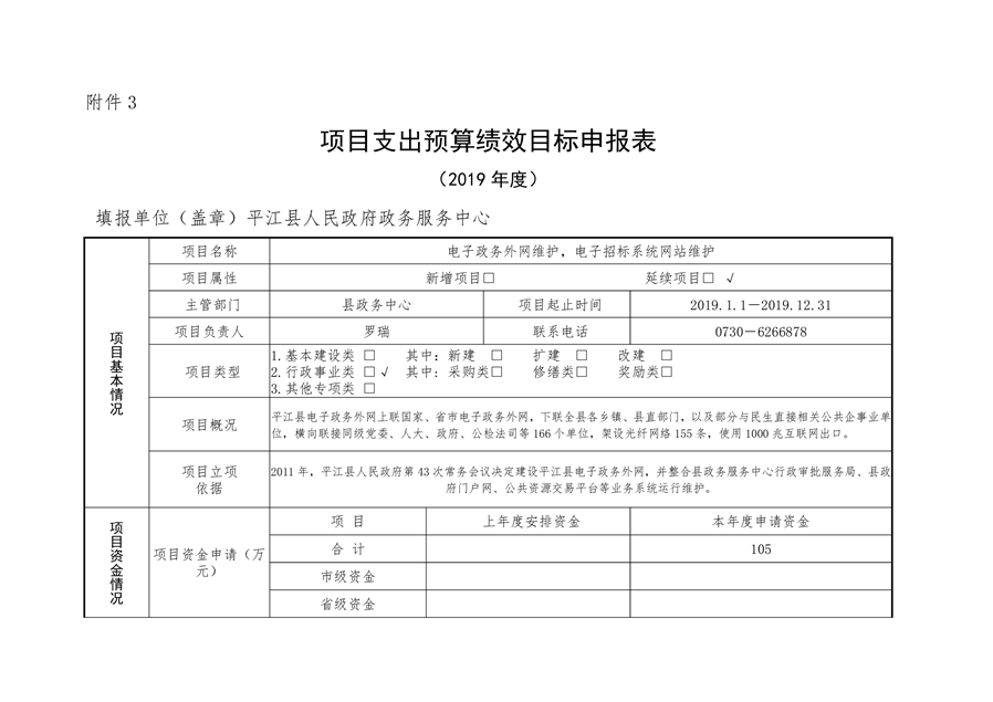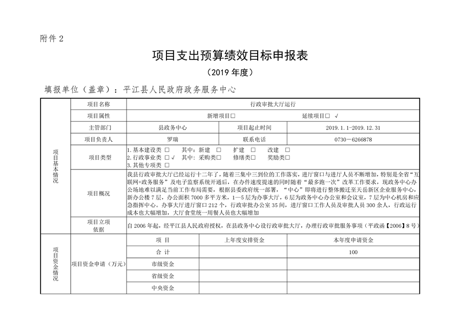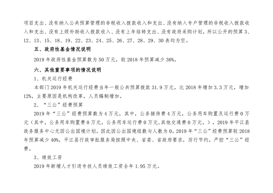 平江县人民政府政务服务中心2019年部门预算编报说明