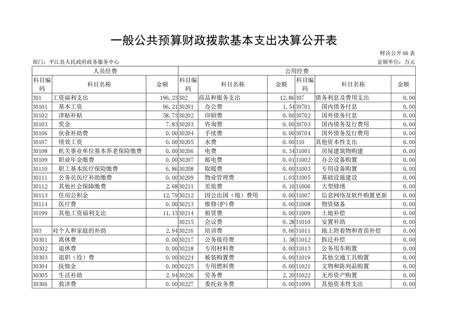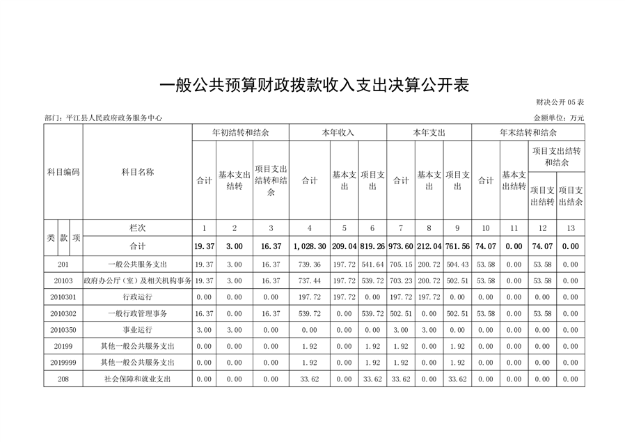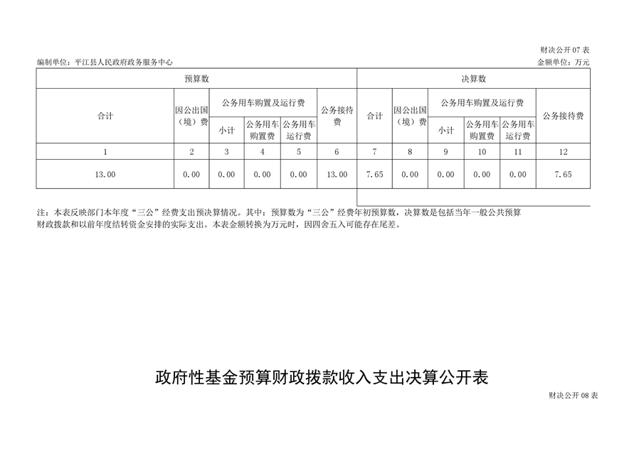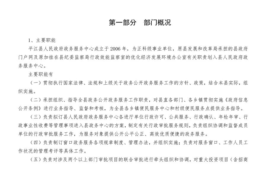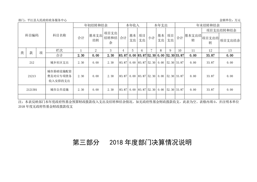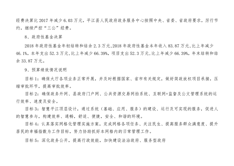 平江县人民政府政务服务中心2018年部门决算编报说明