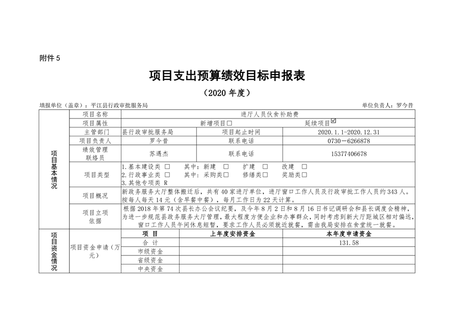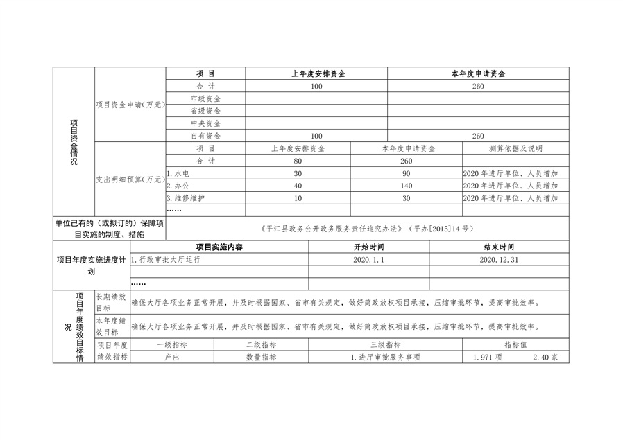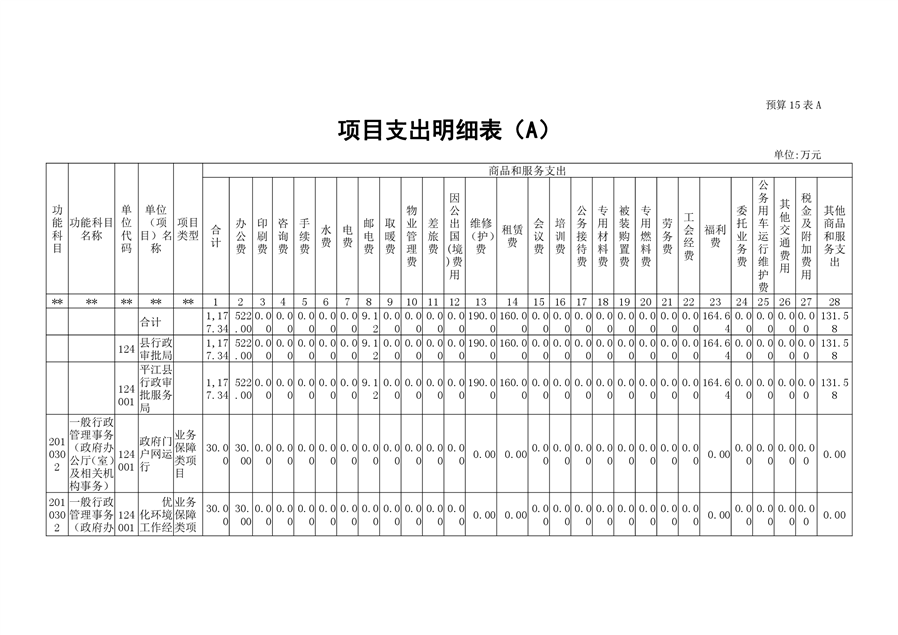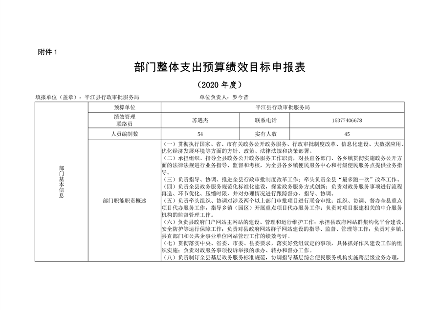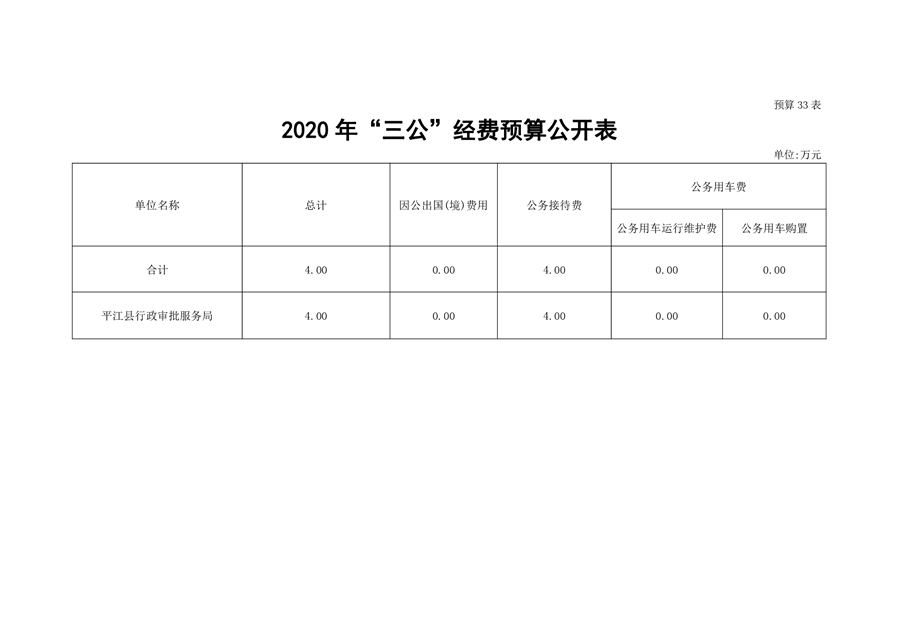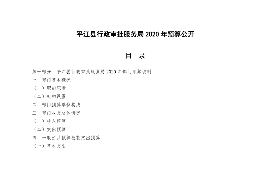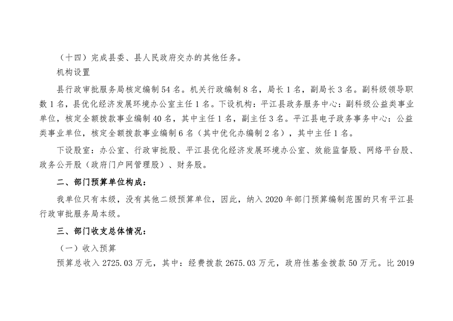平江县行政审批服务局2020年部门预算