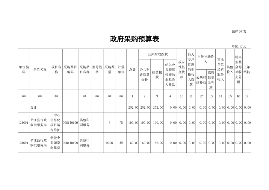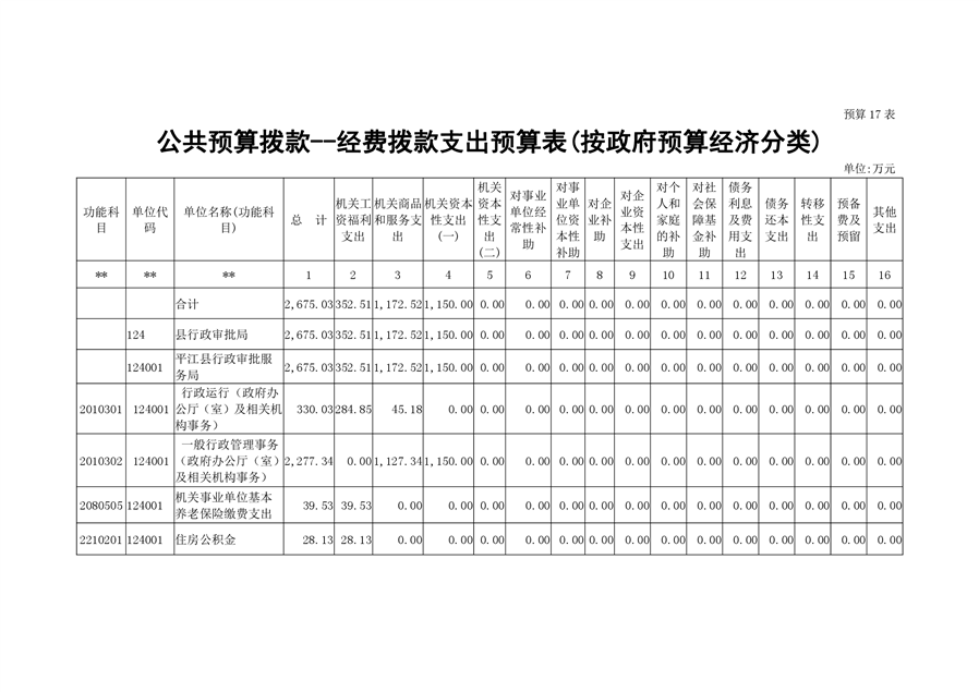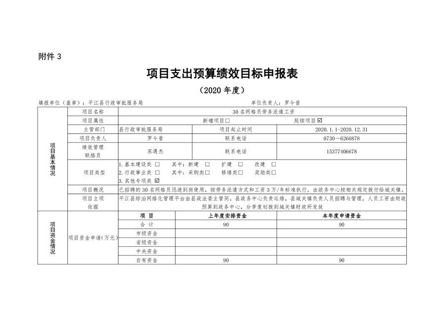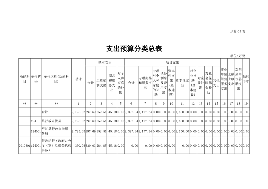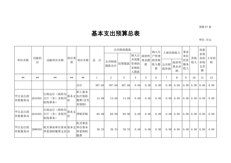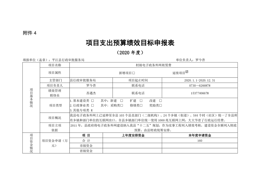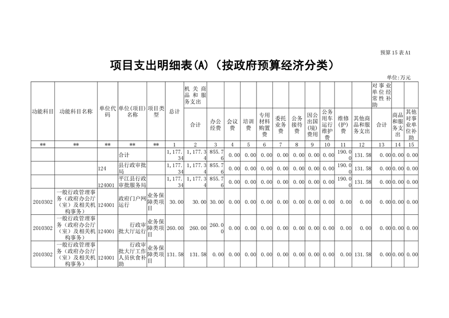 平江县行政审批服务局2020年部门预算