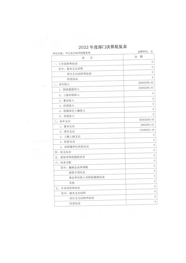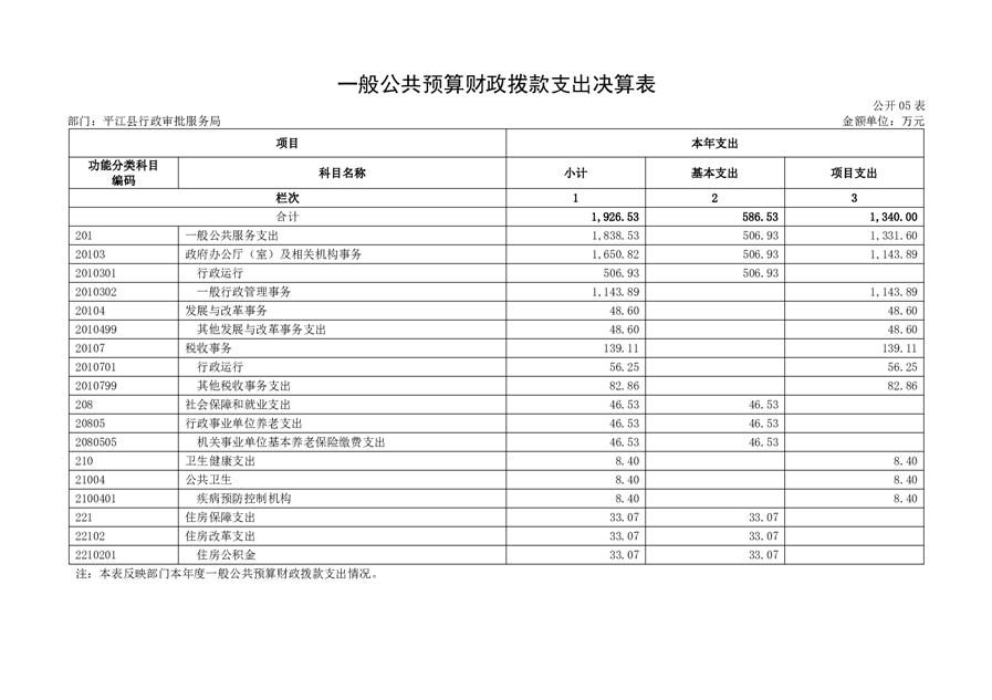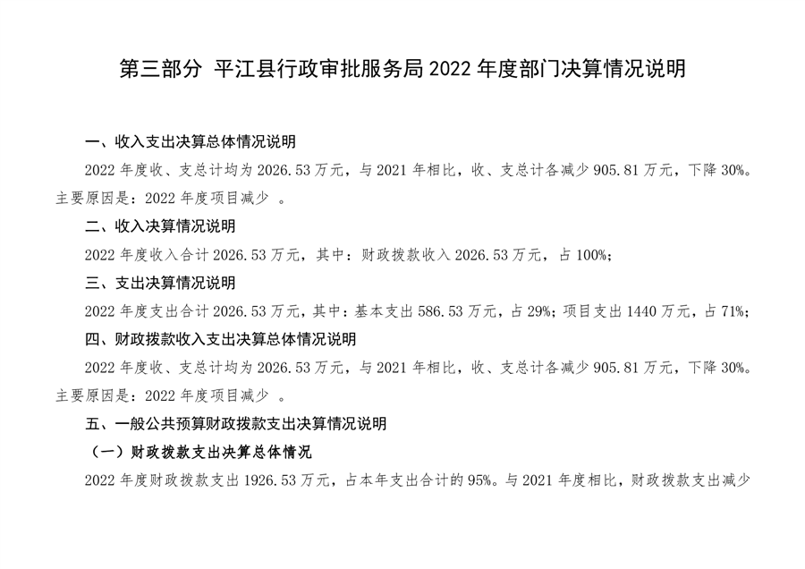 平江县行政审批服务局2022年部门决算