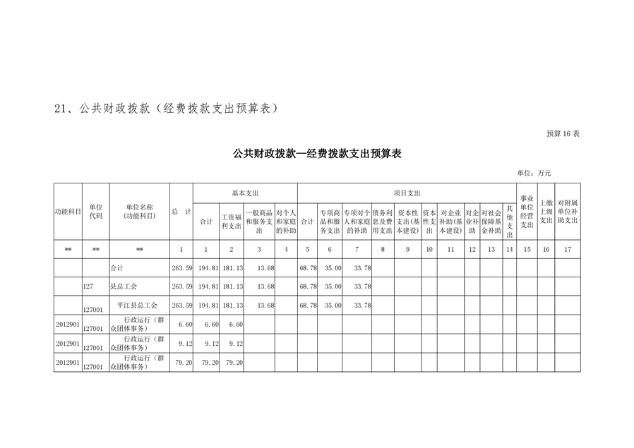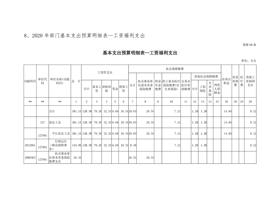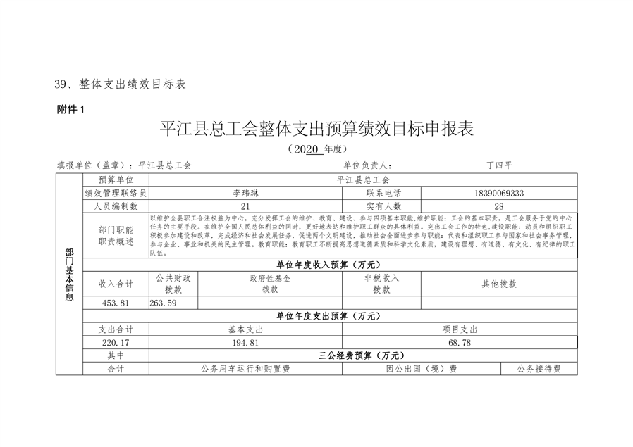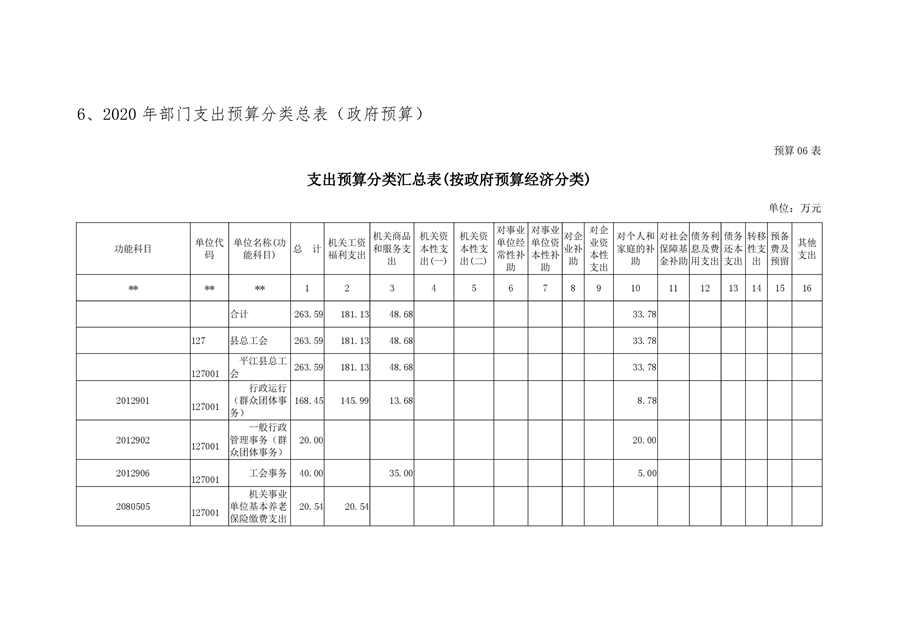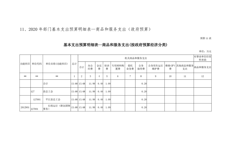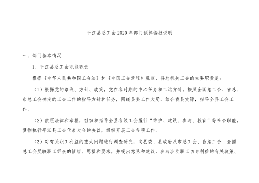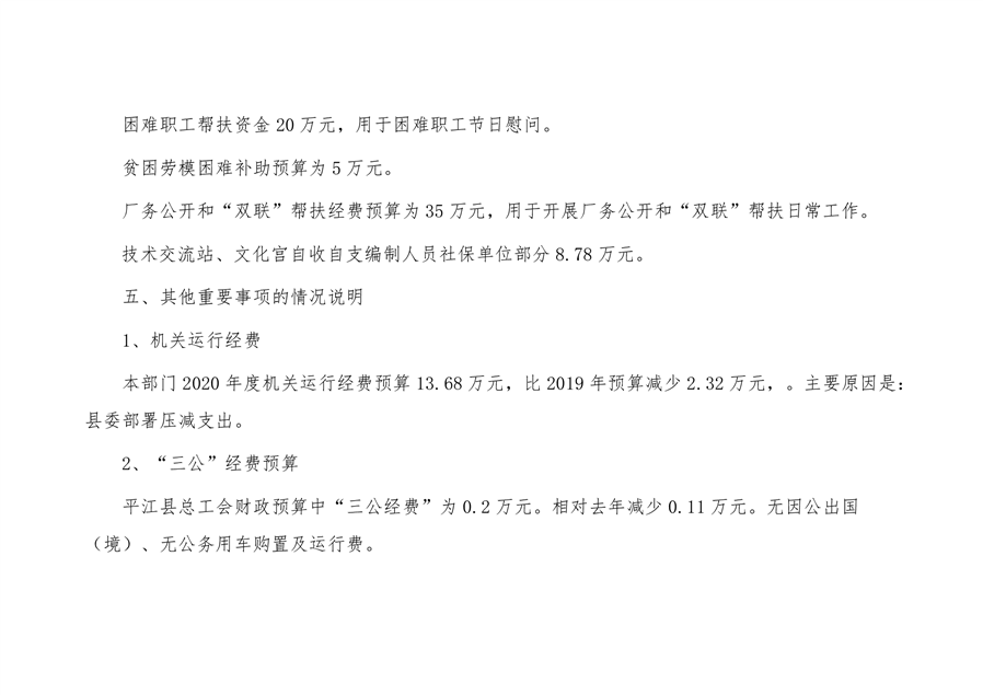 平江县总工会2020年部门预算