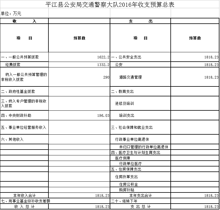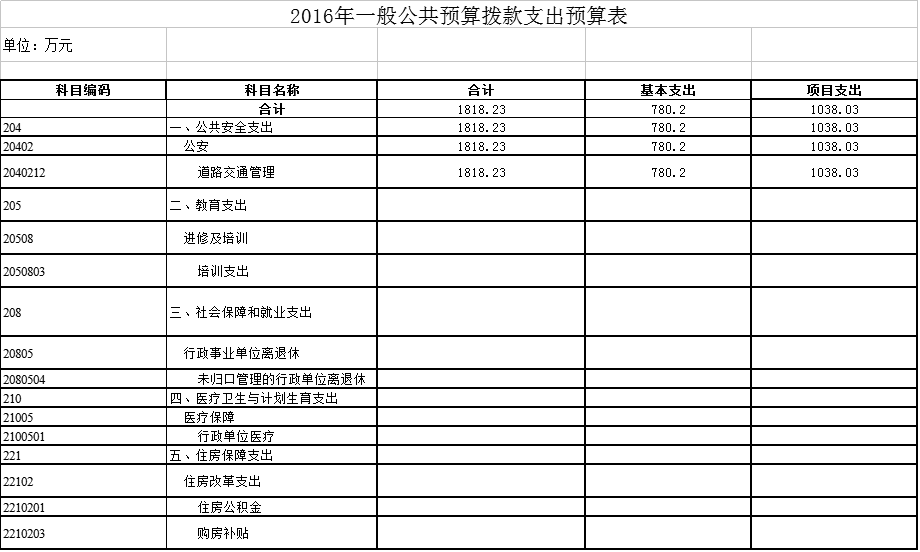 交警大队2016年部门预算