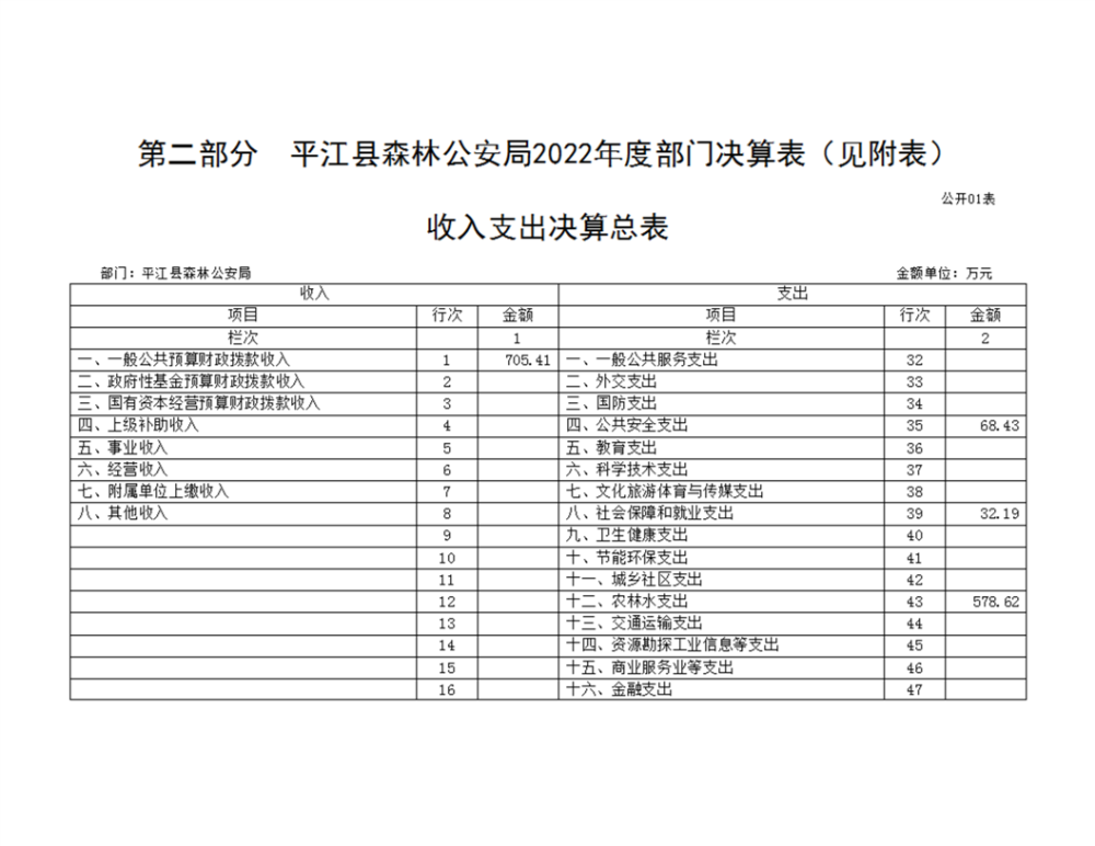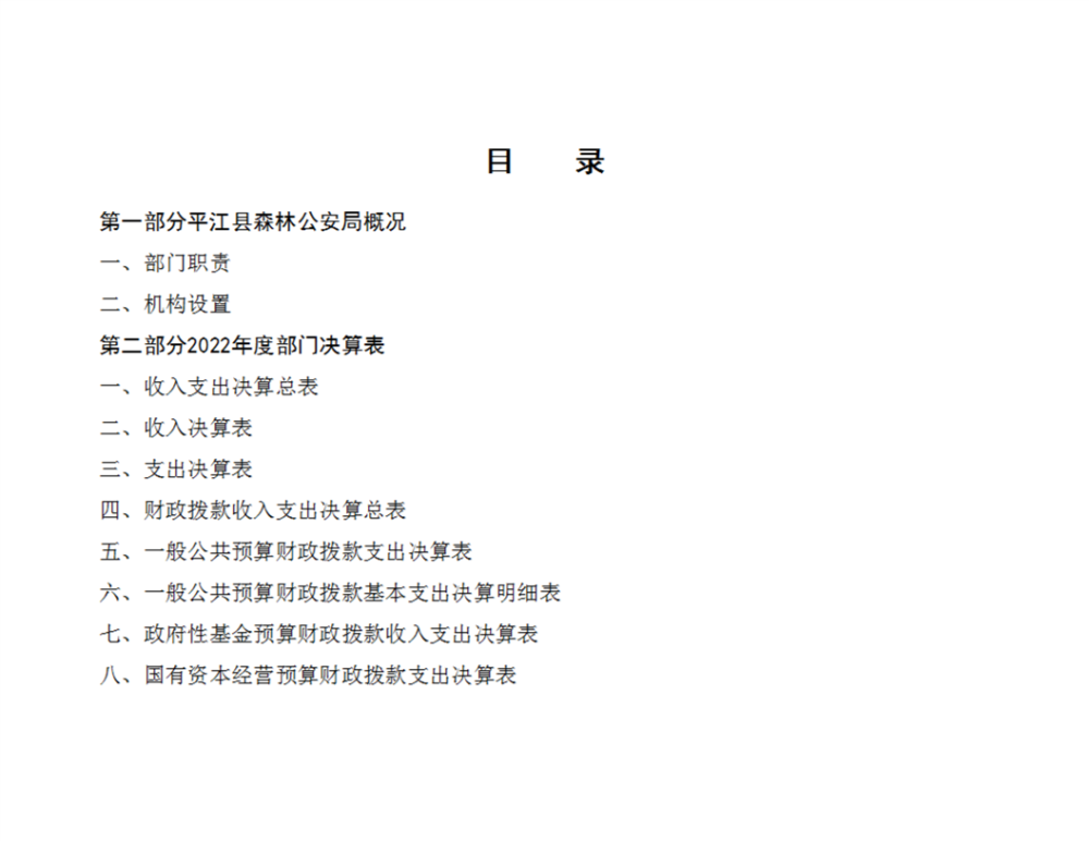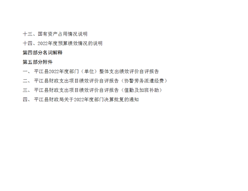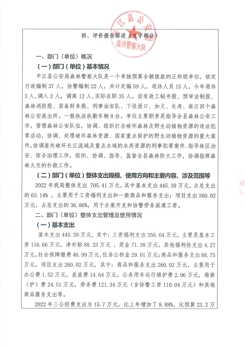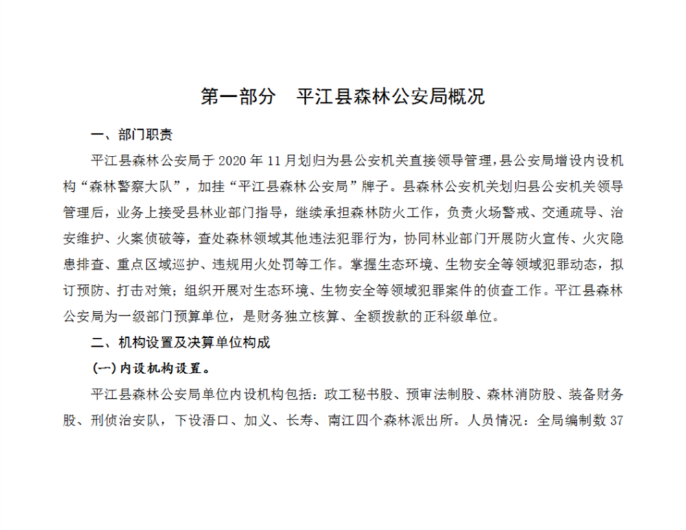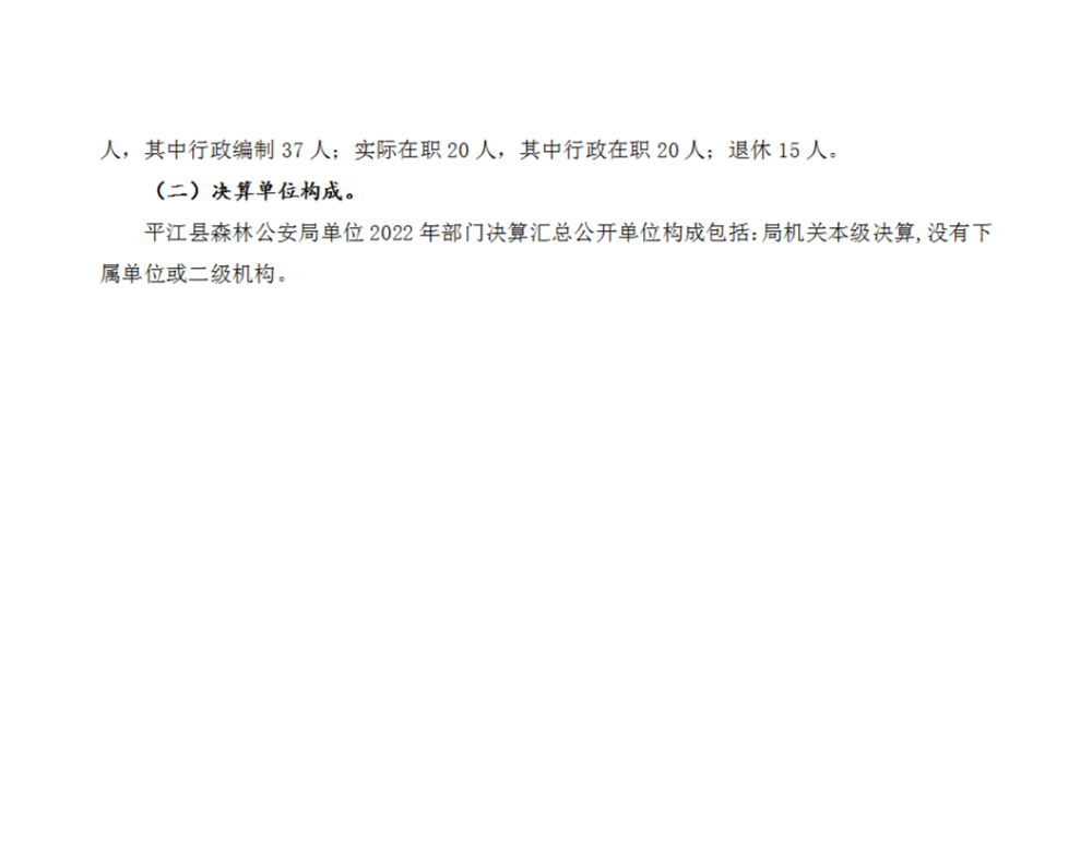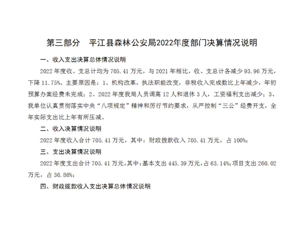 平江县森林公安局2022年部门决算
