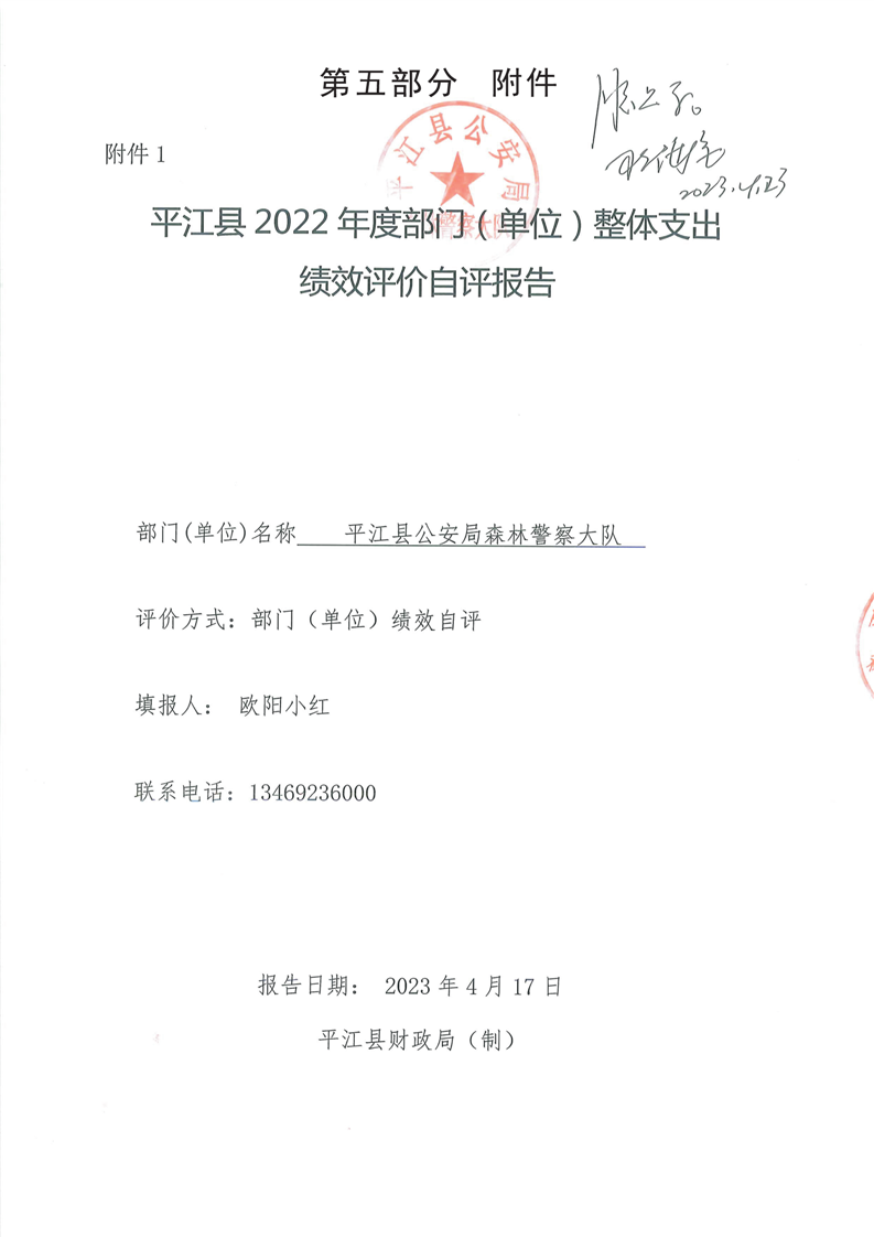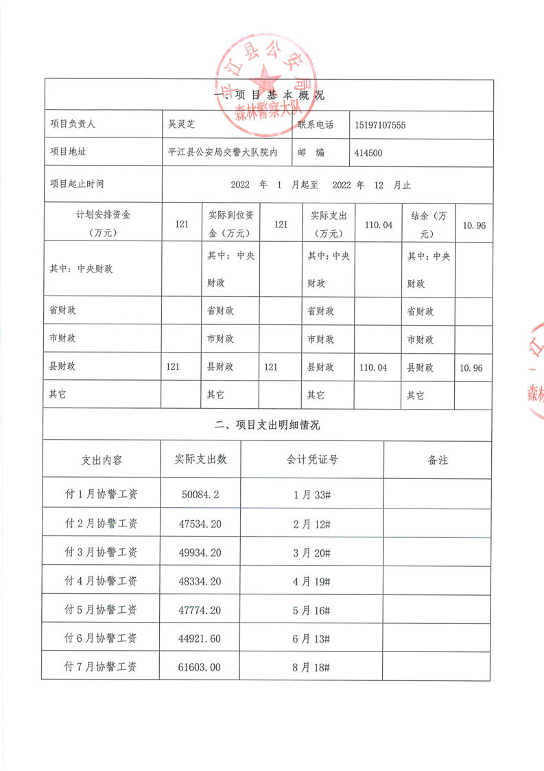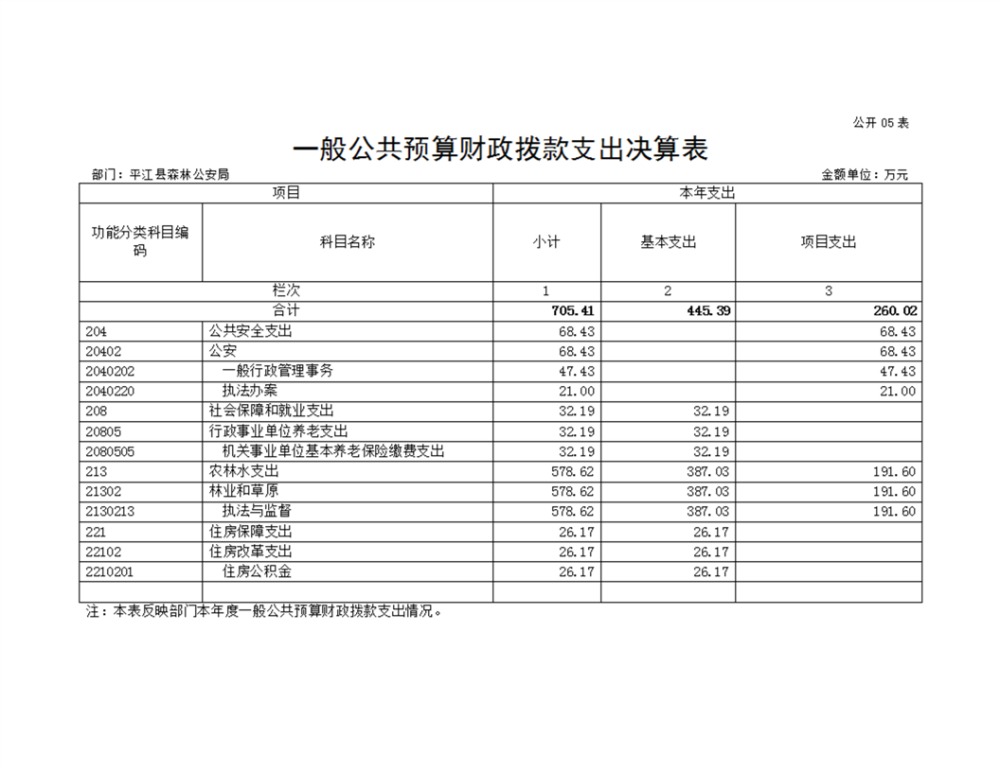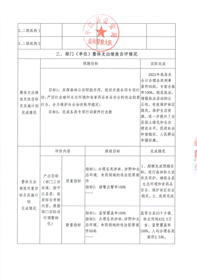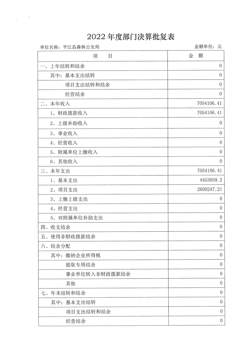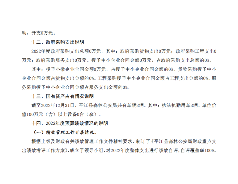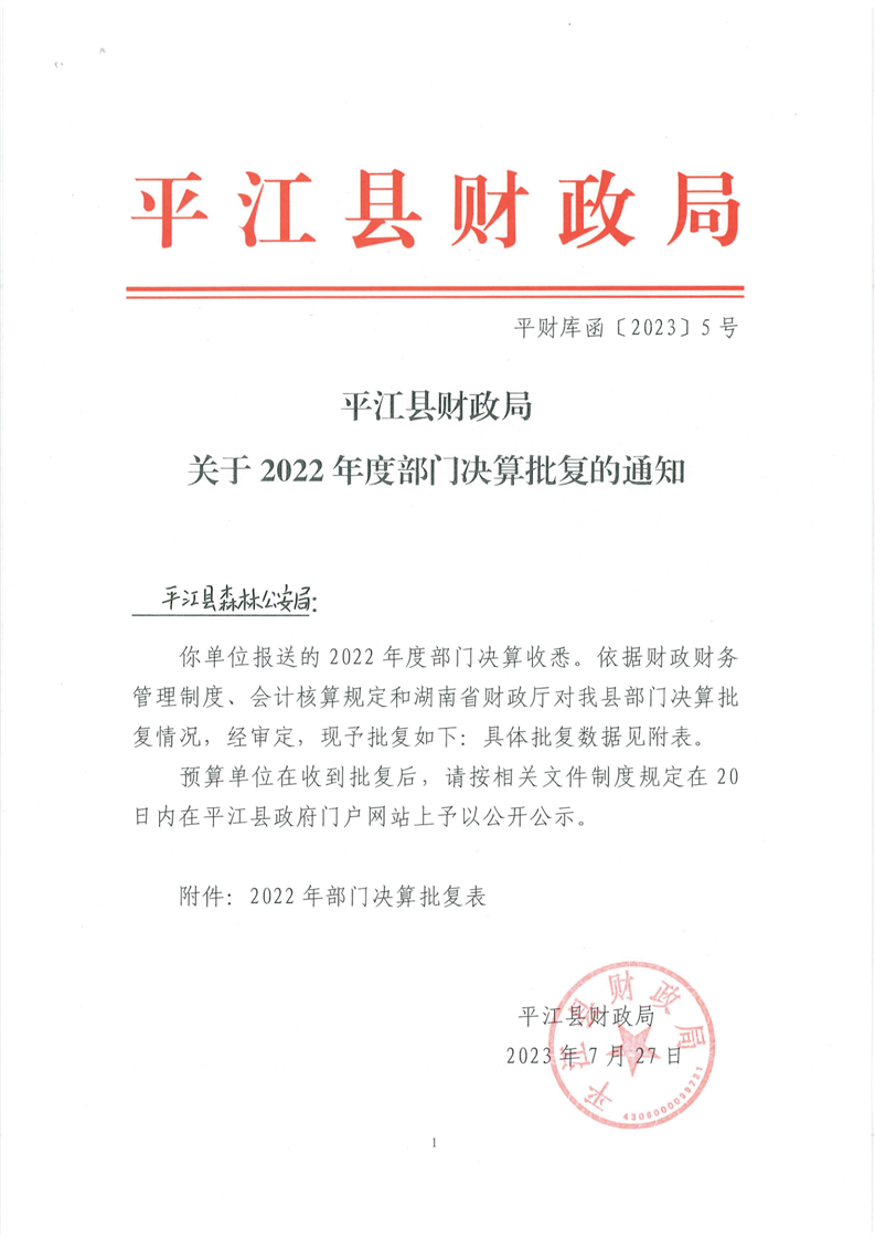 平江县森林公安局2022年部门决算