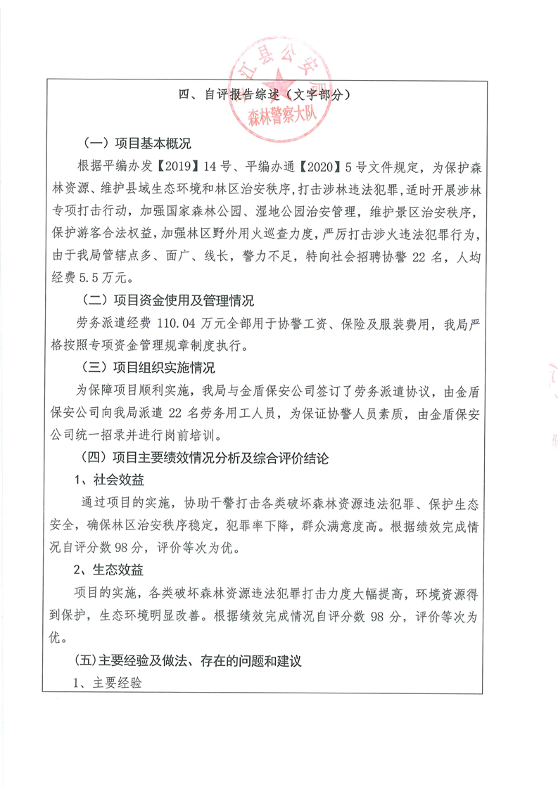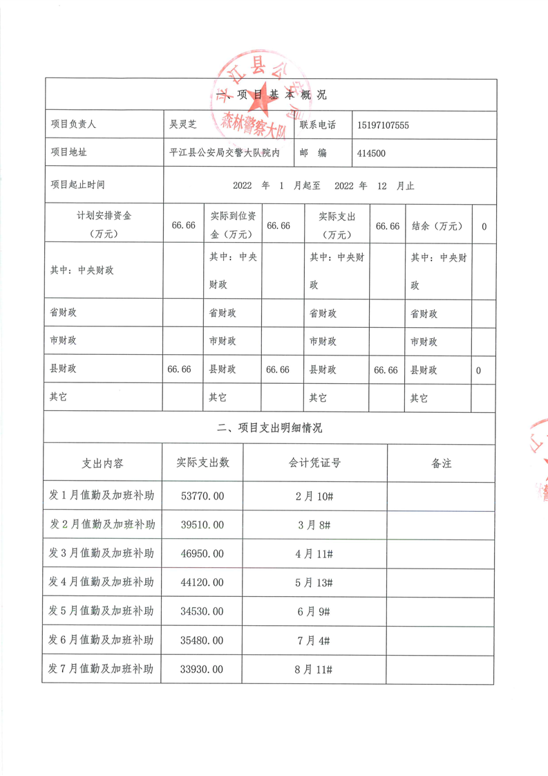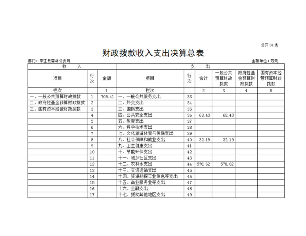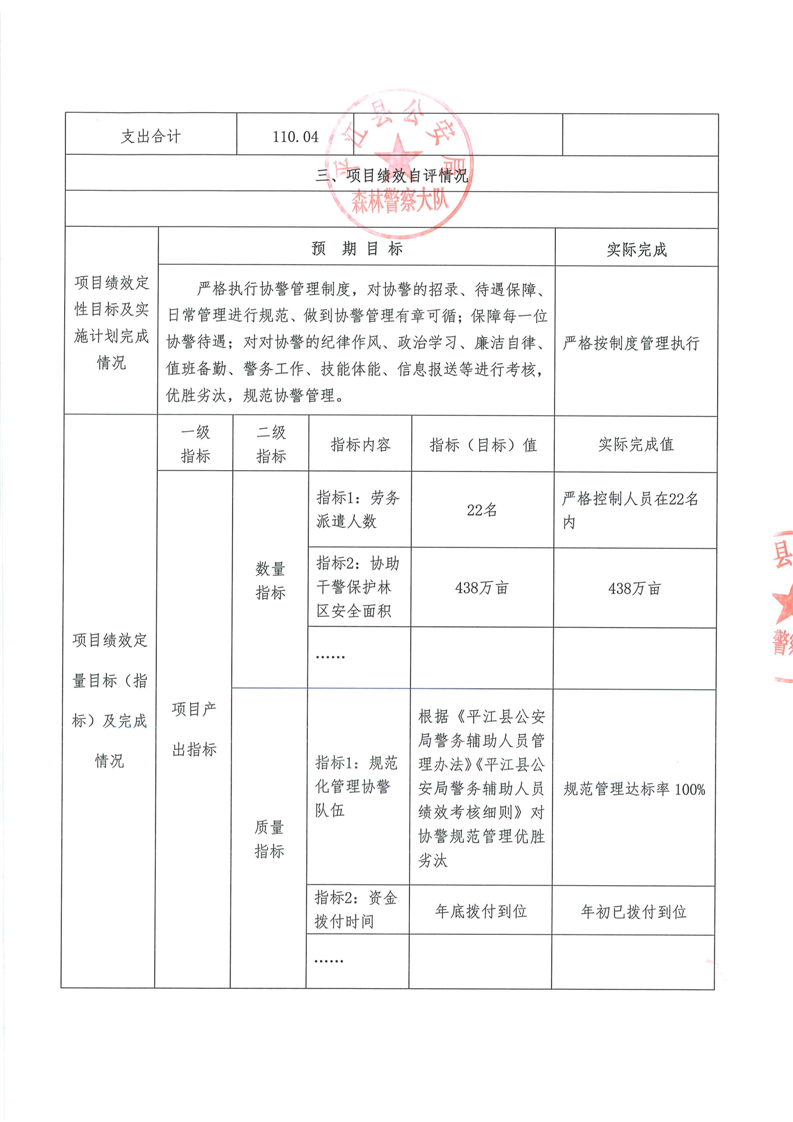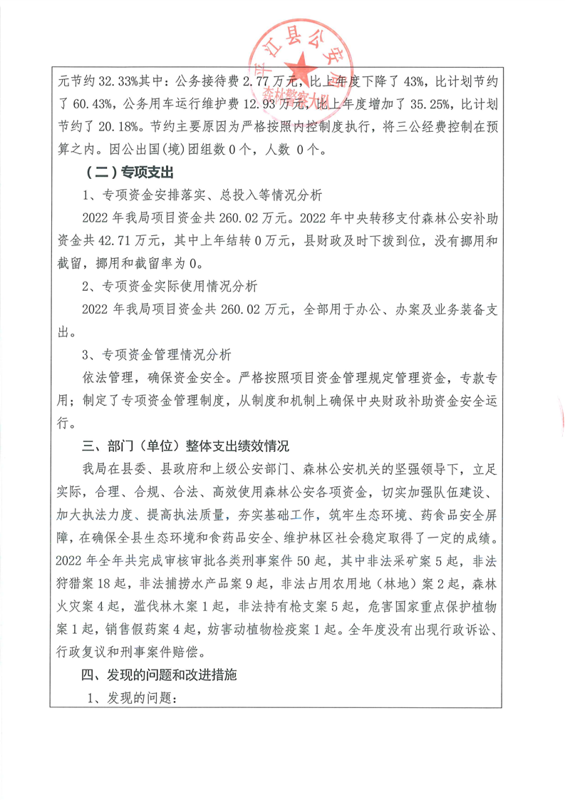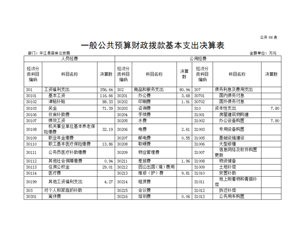 平江县森林公安局2022年部门决算