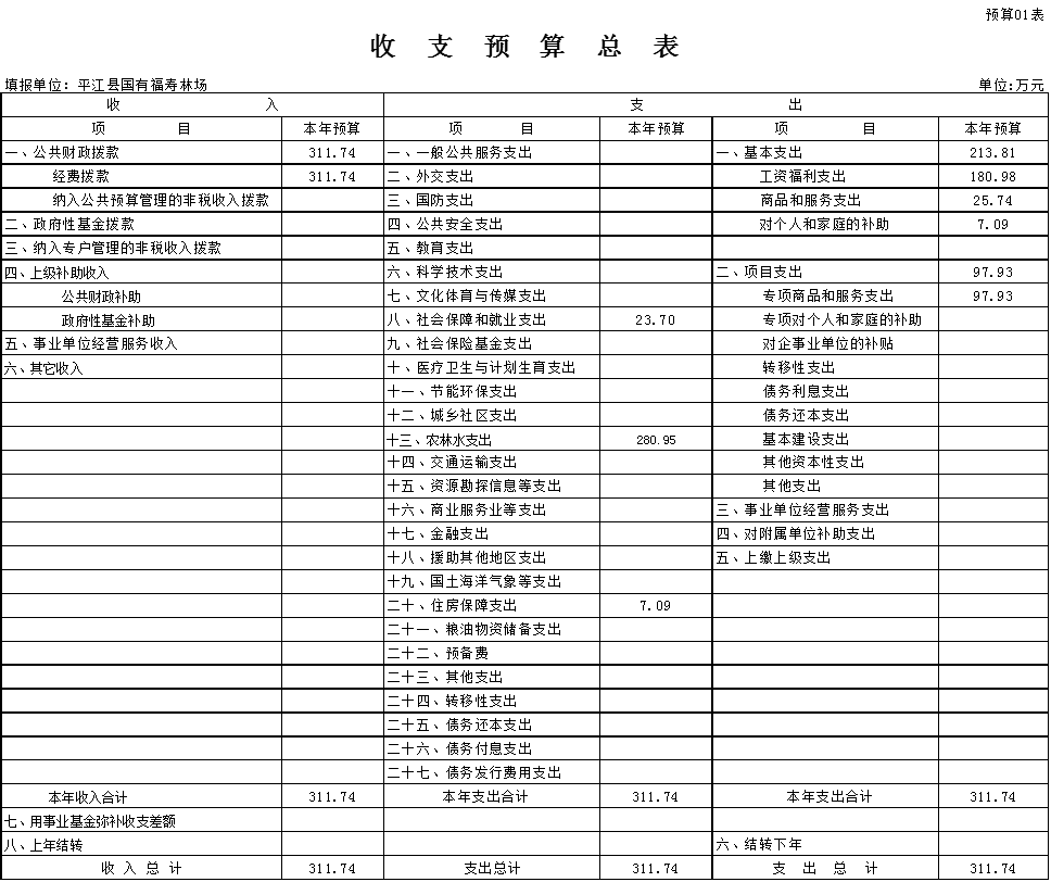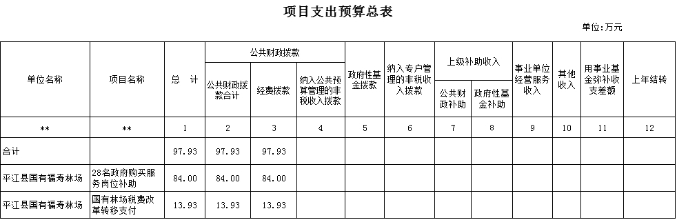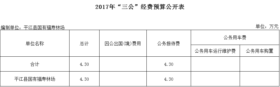 平江县福寿林场2017年经费预算情况统计表