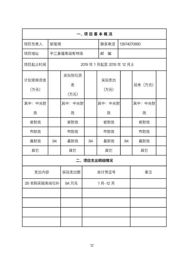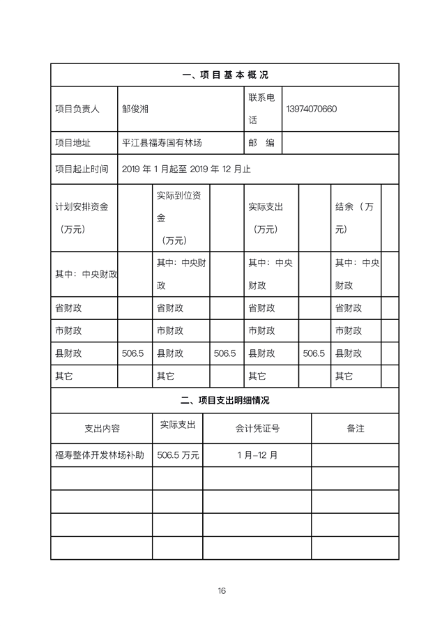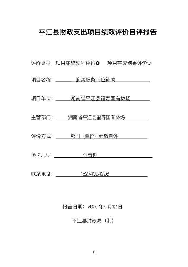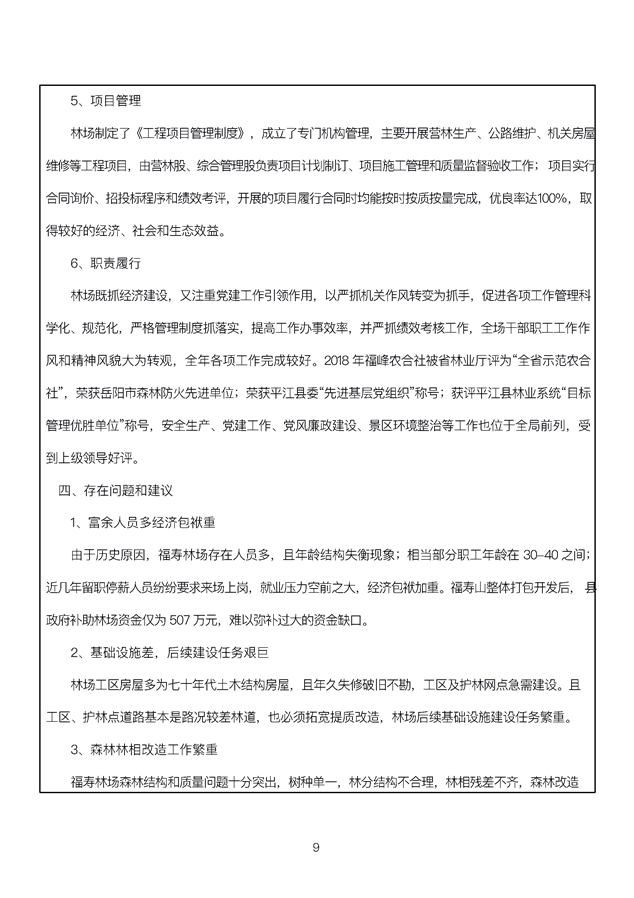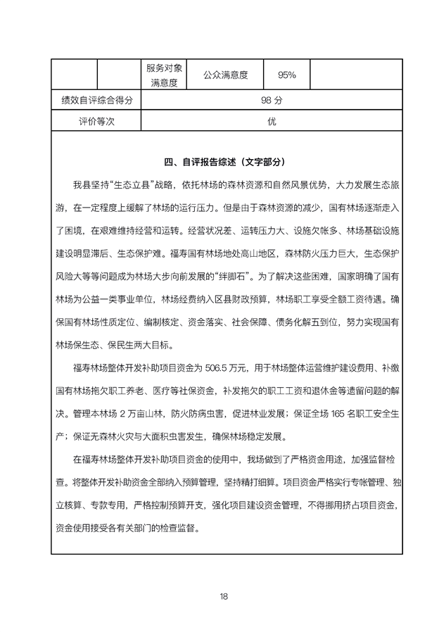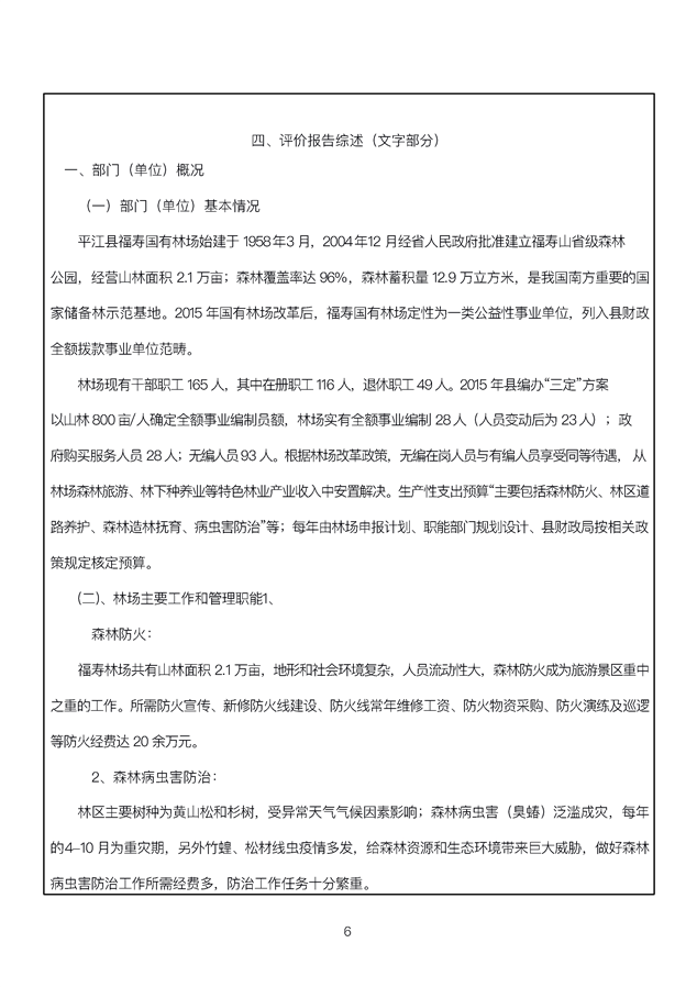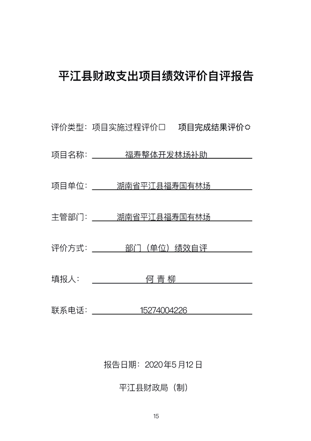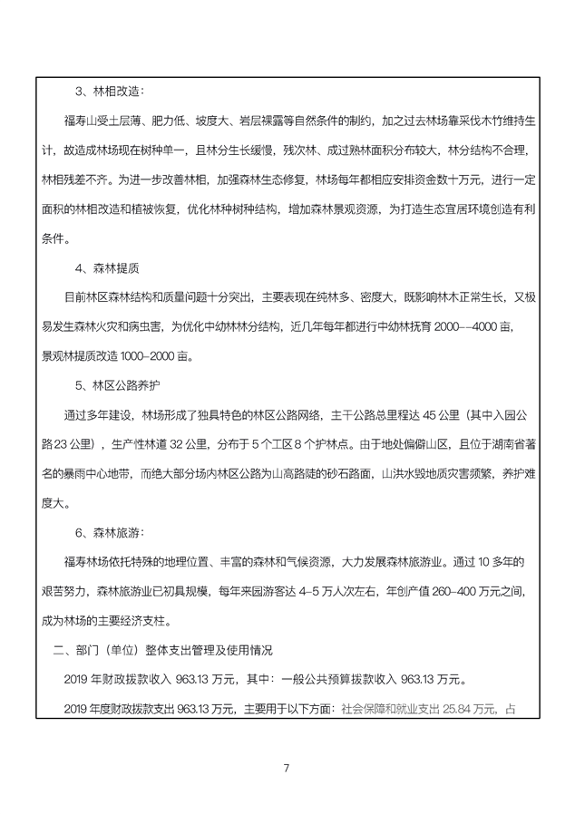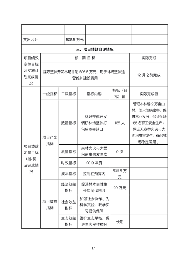 平江县福寿国有有林场2019年度整体支出绩效自评