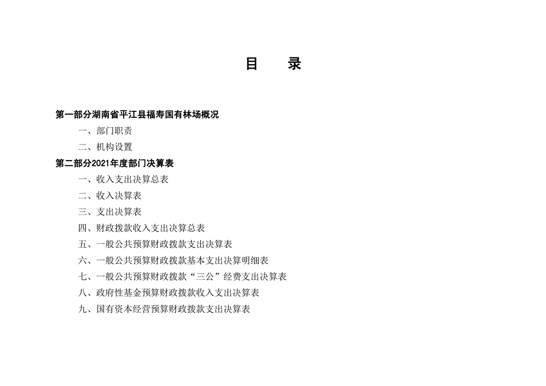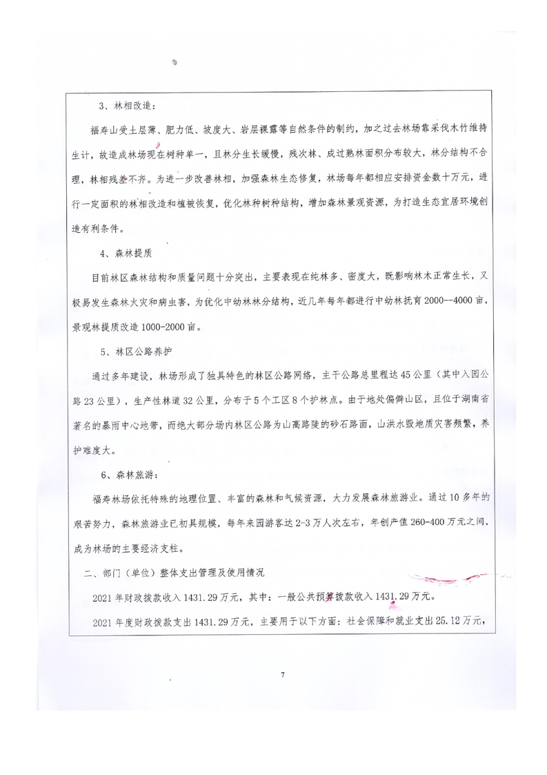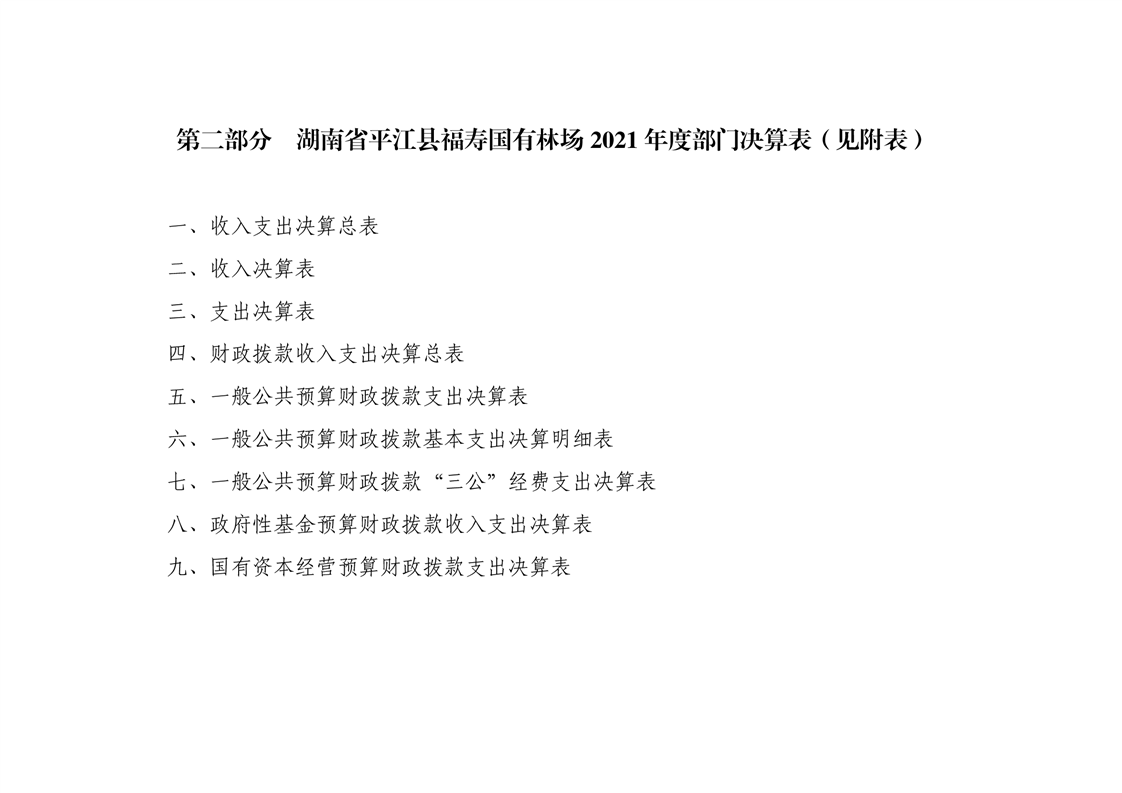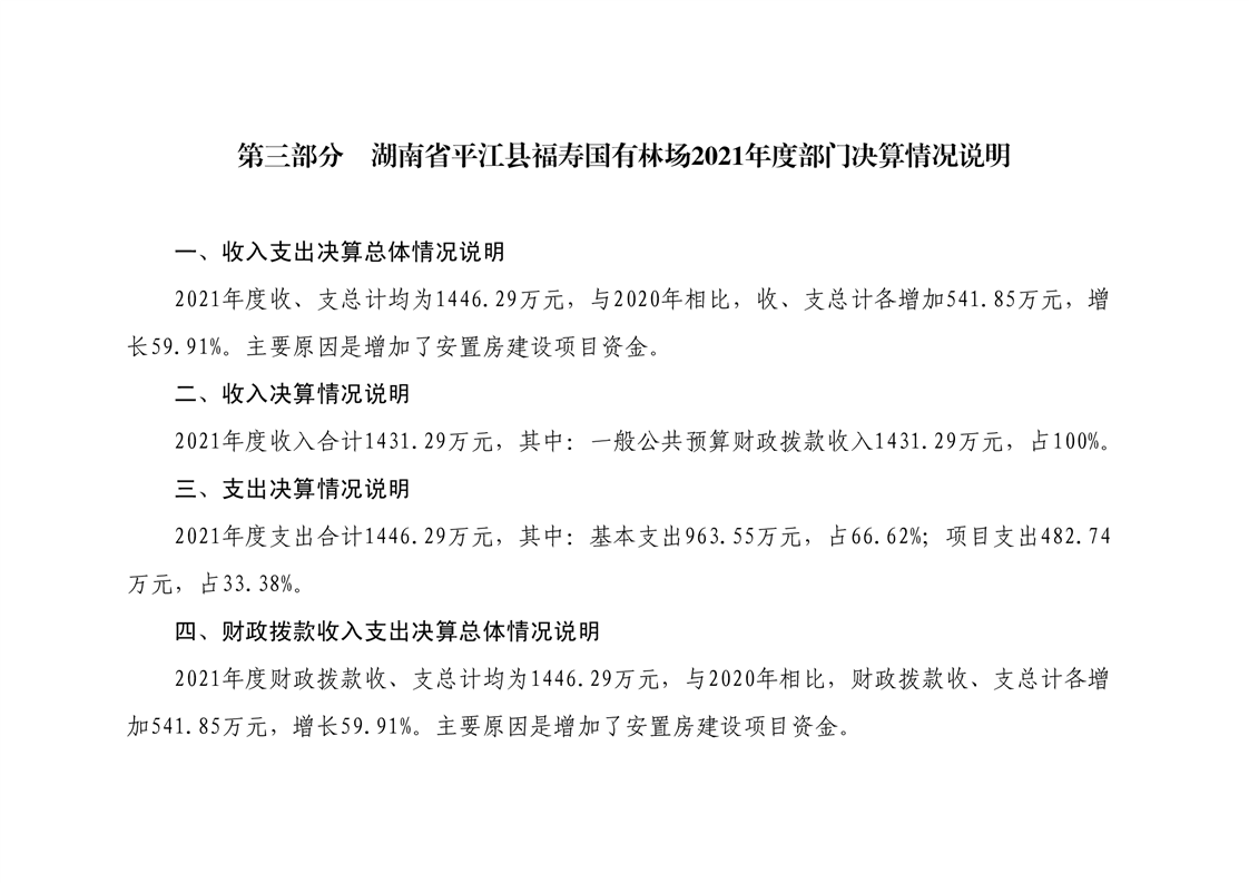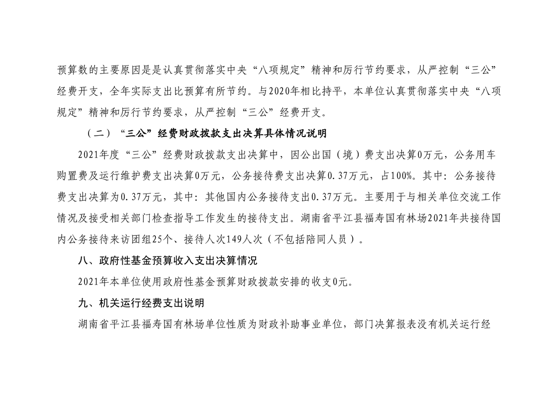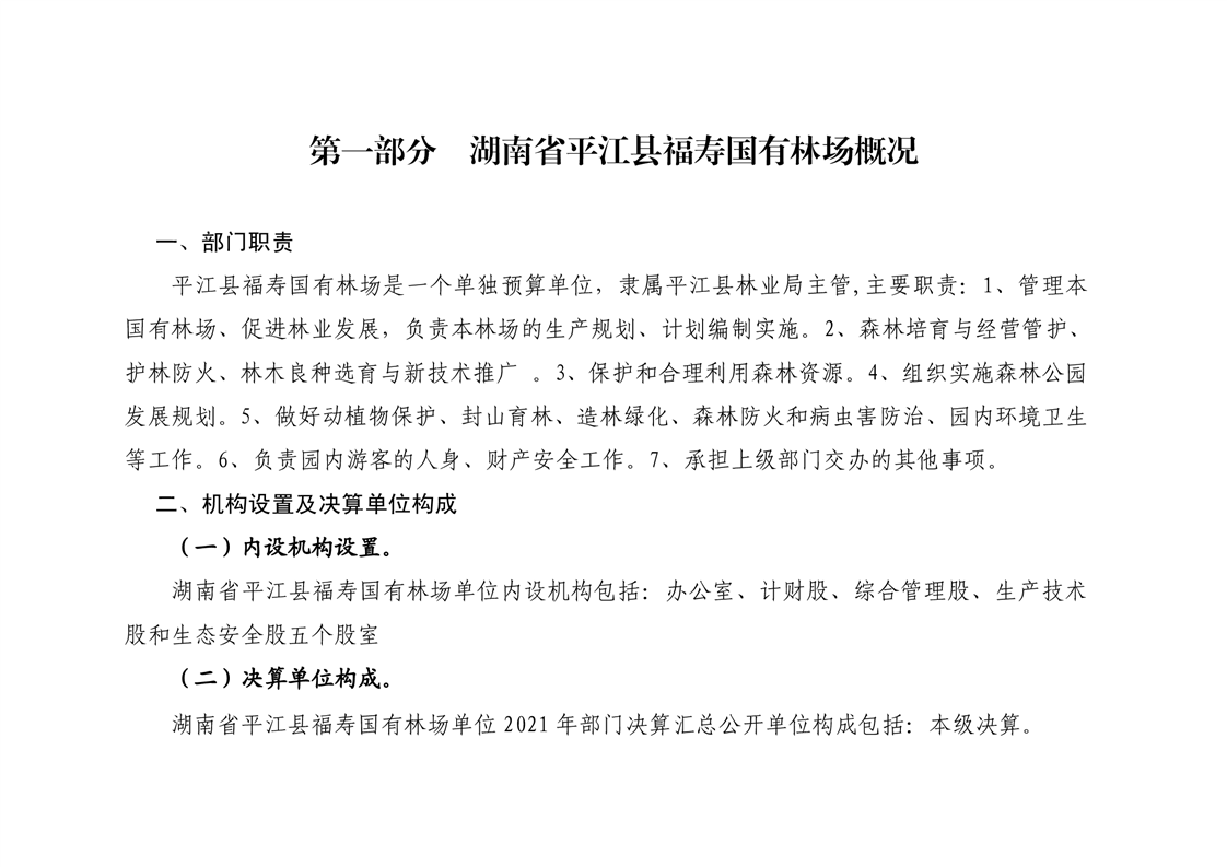 平江县福寿林场2021年度部门决算公开编报说明