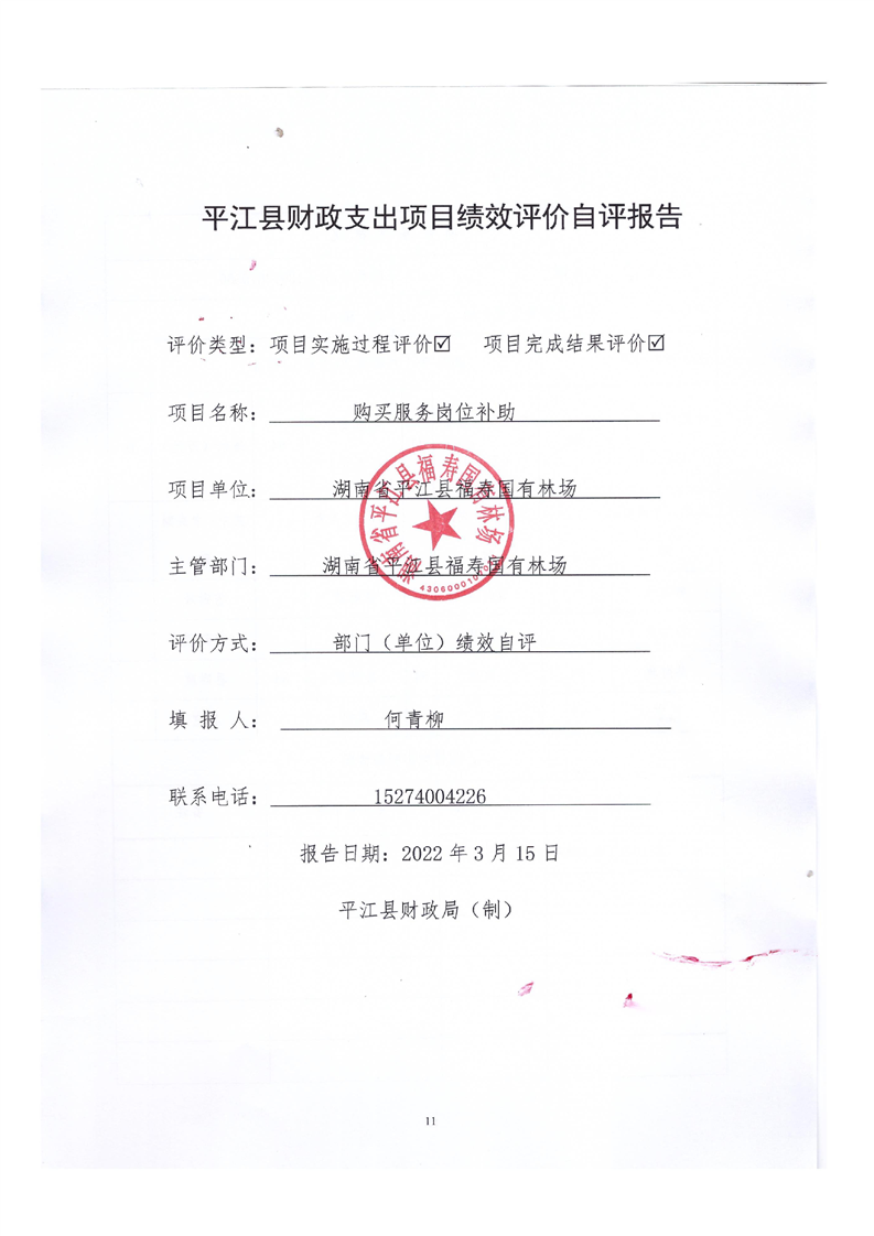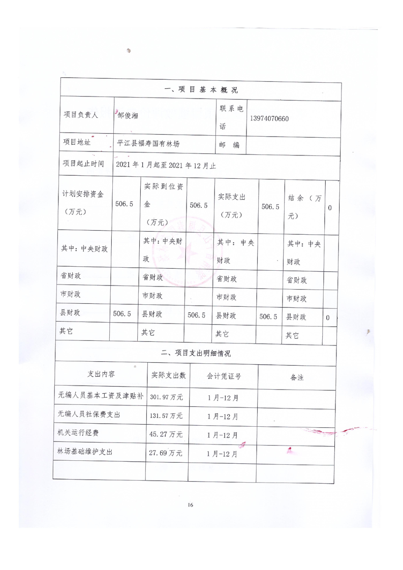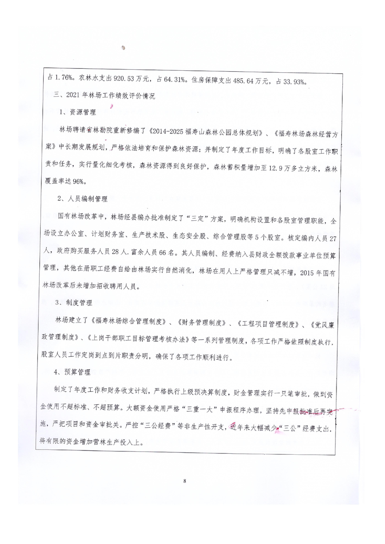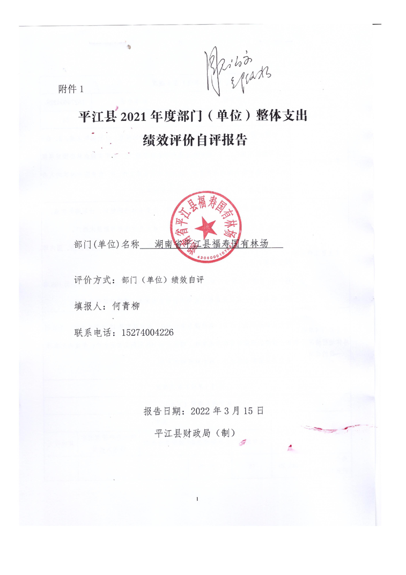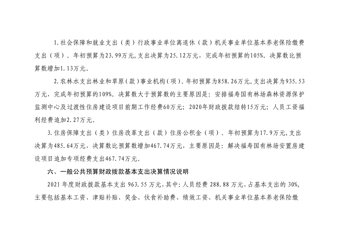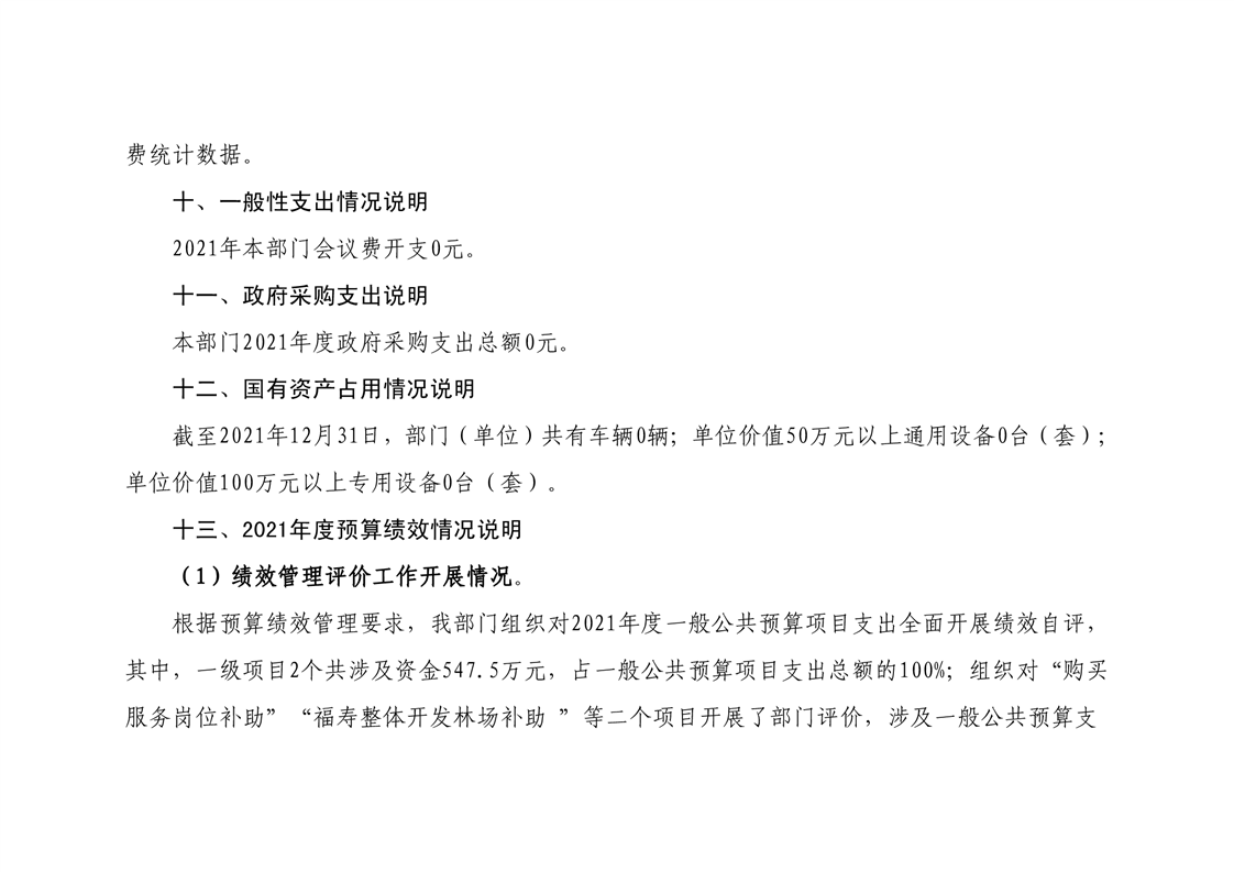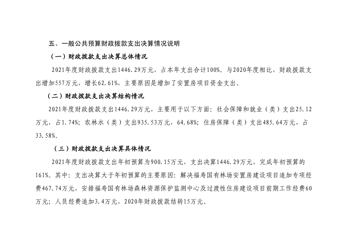 平江县福寿林场2021年度部门决算公开编报说明