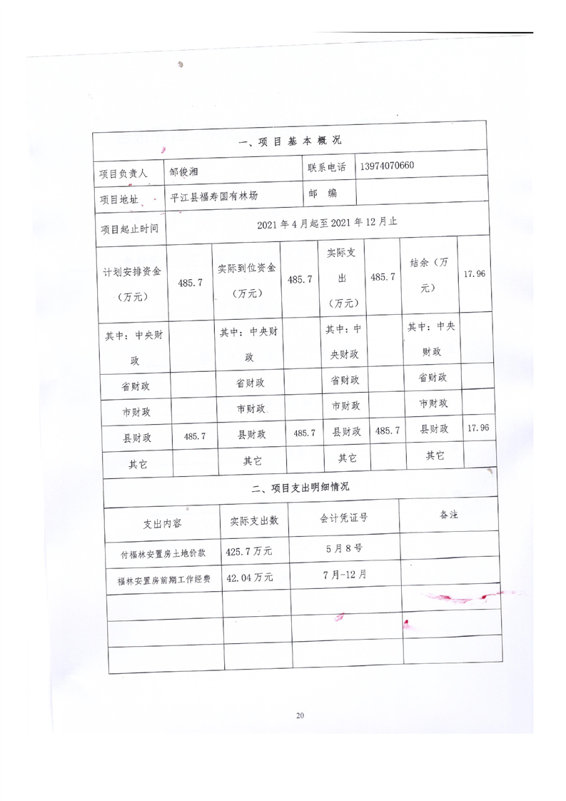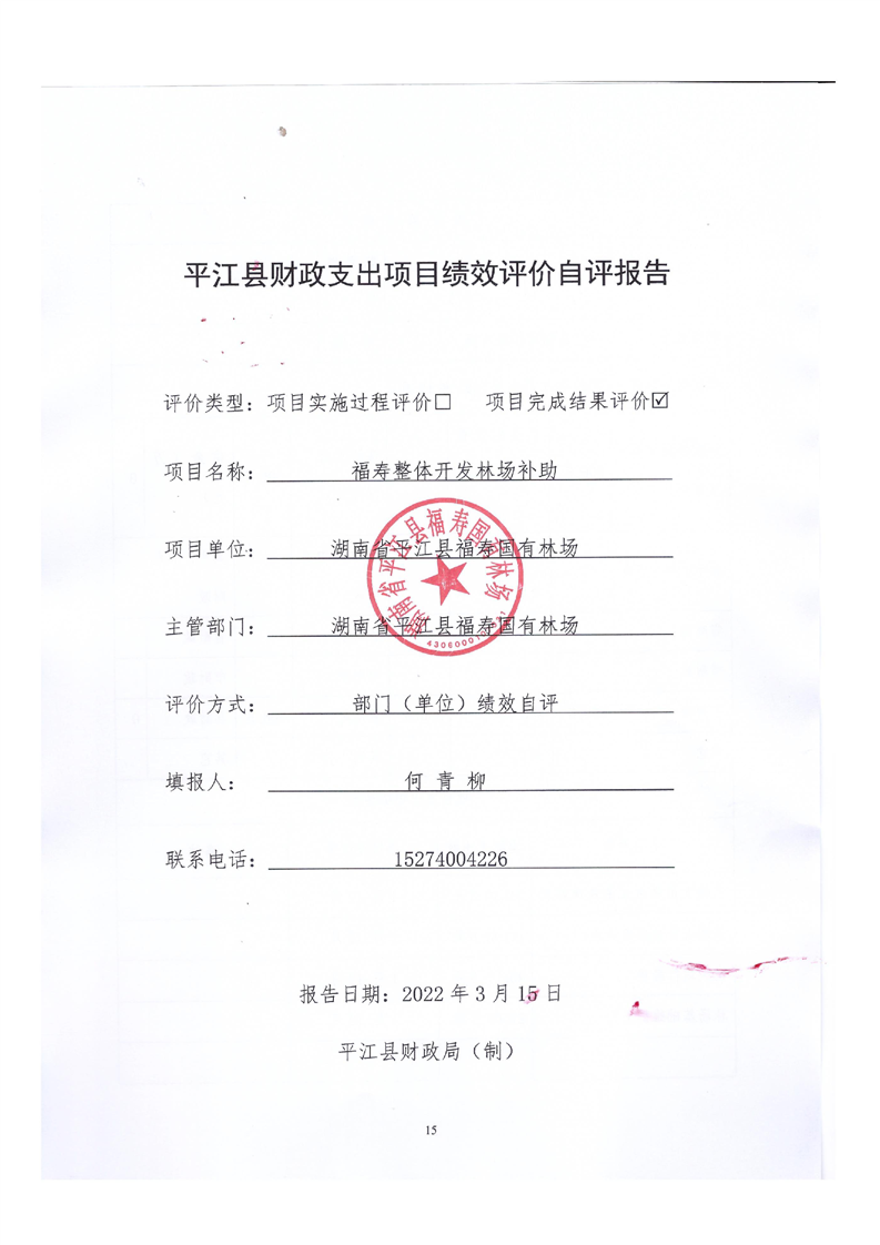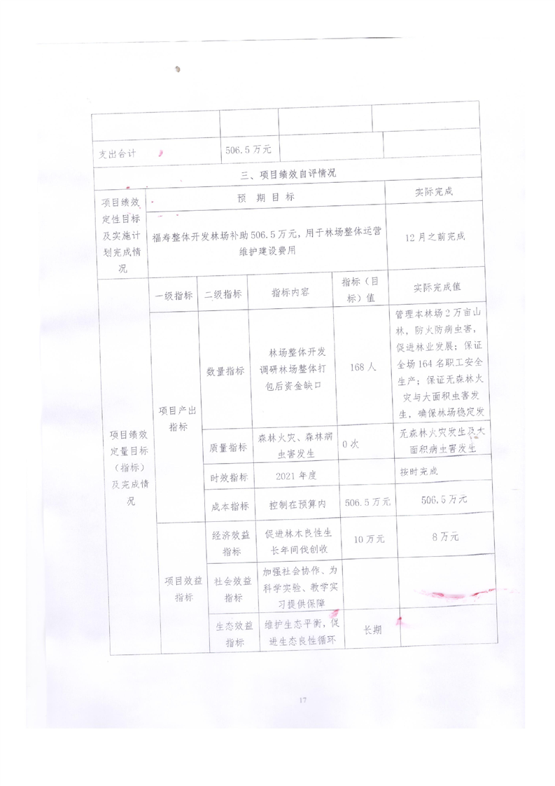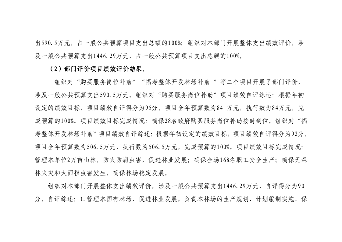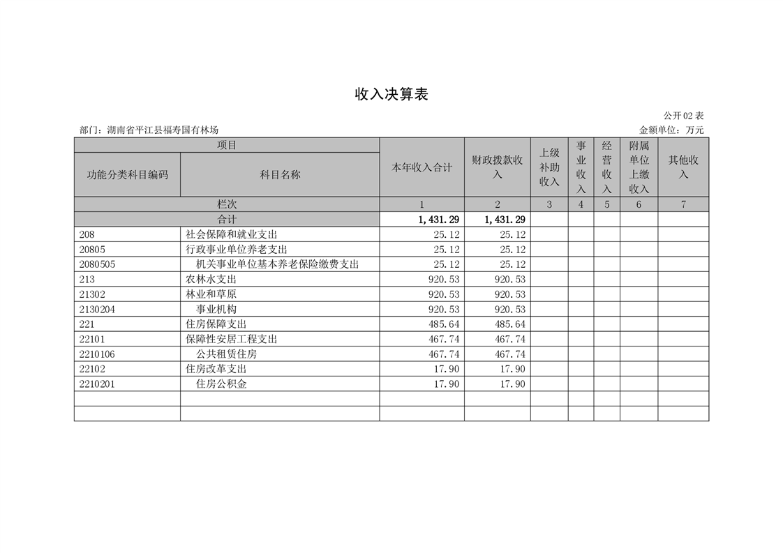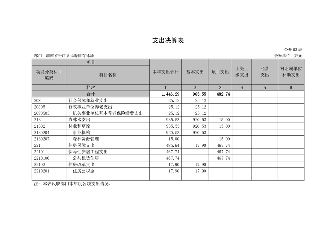 平江县福寿林场2021年度部门决算公开编报说明