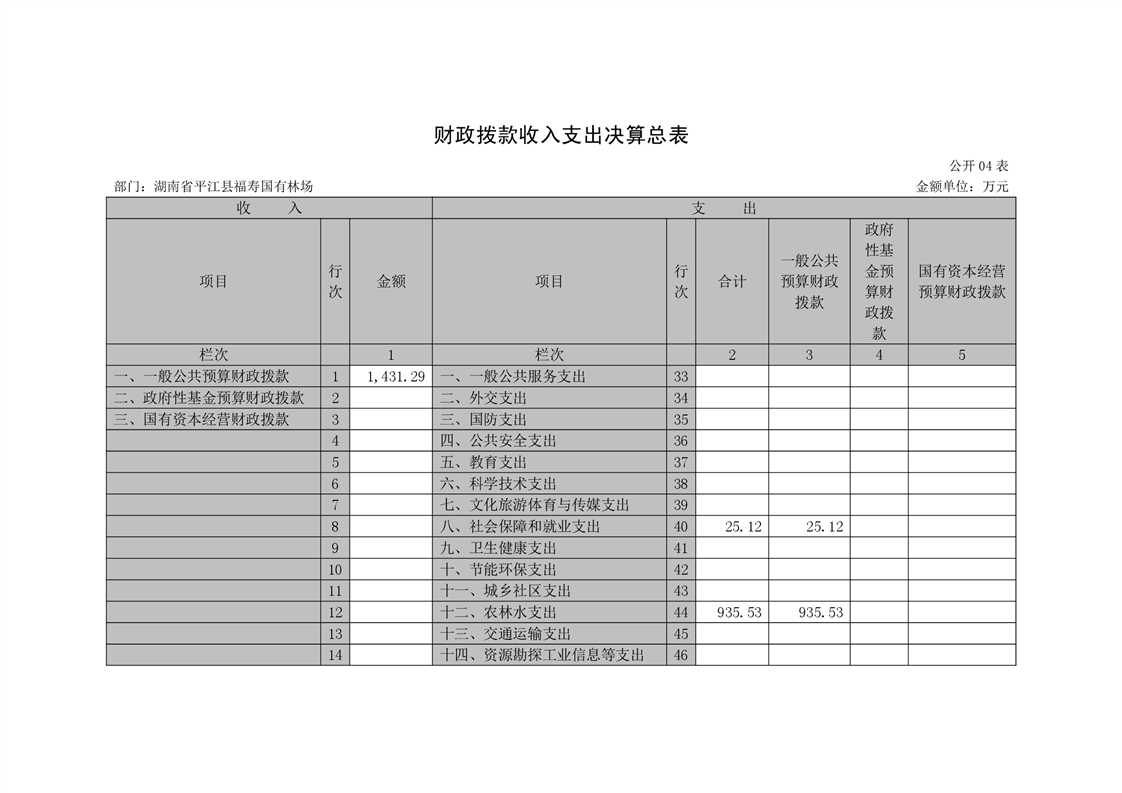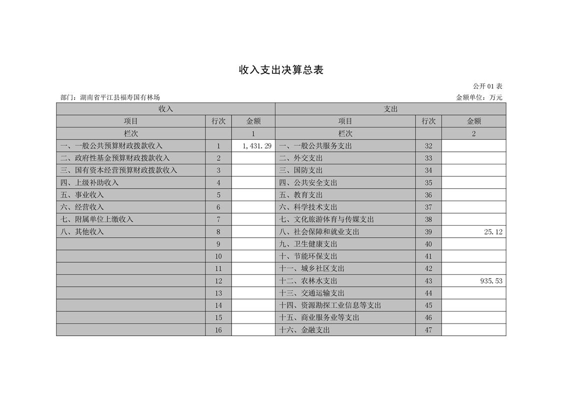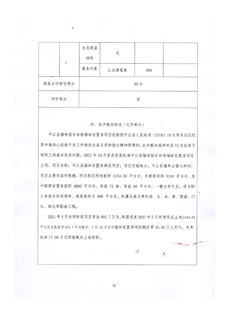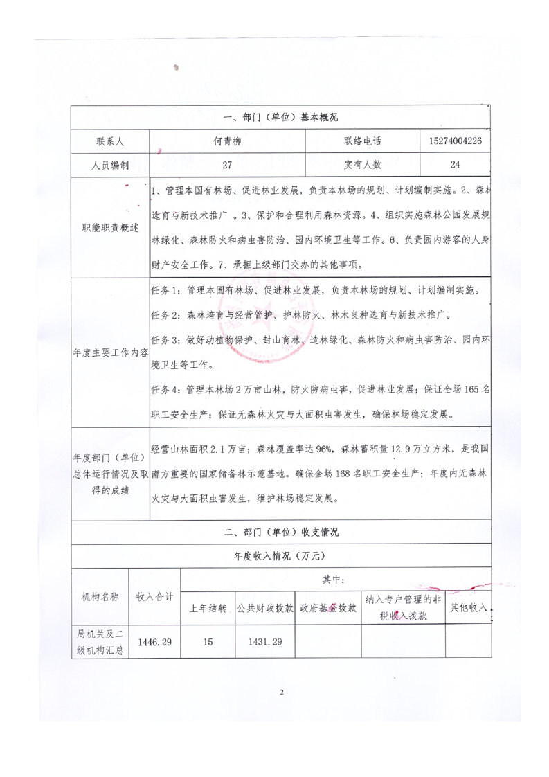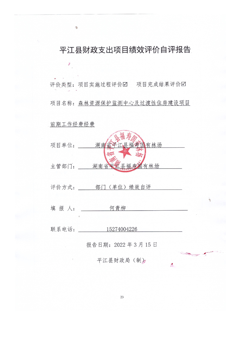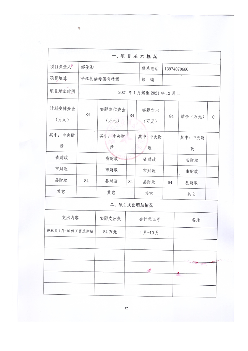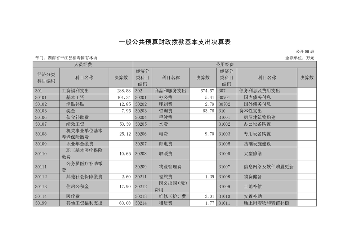 平江县福寿林场2021年度部门决算公开编报说明