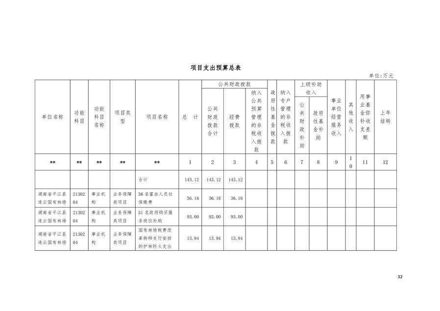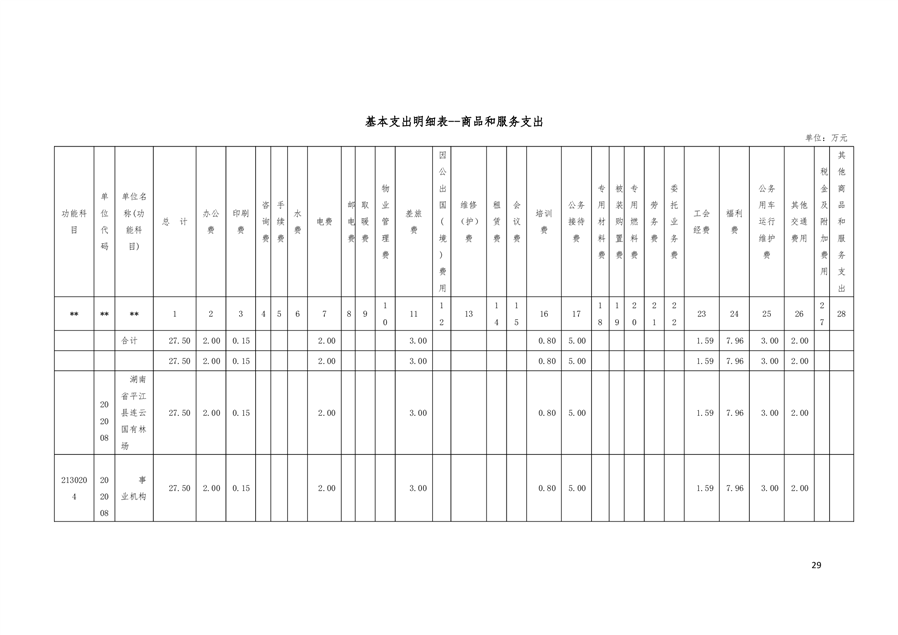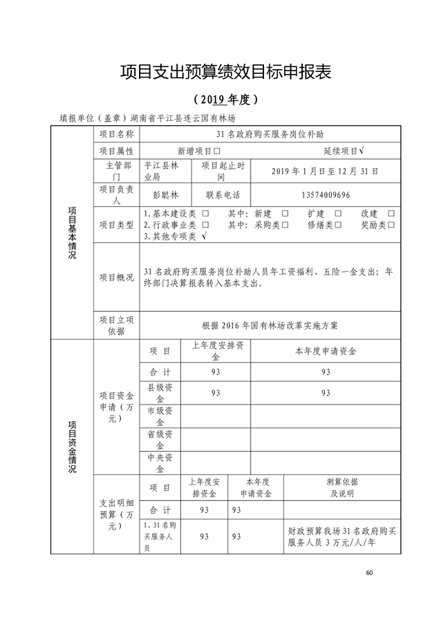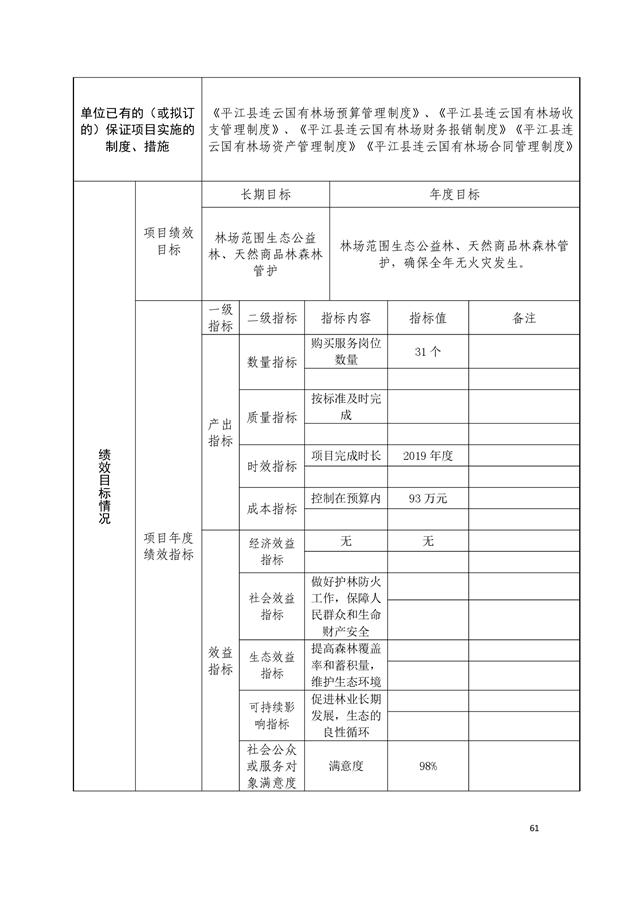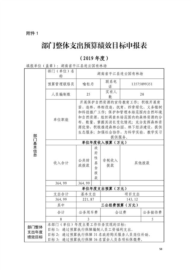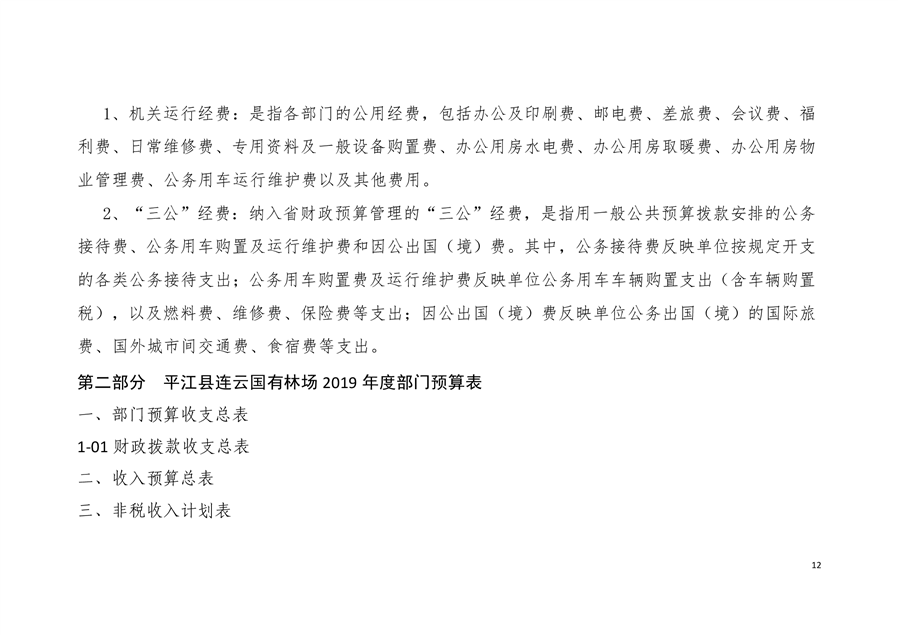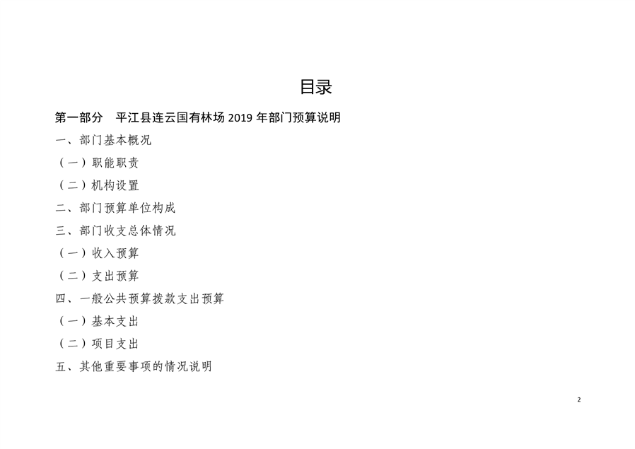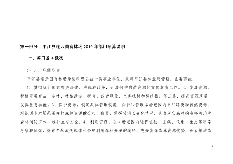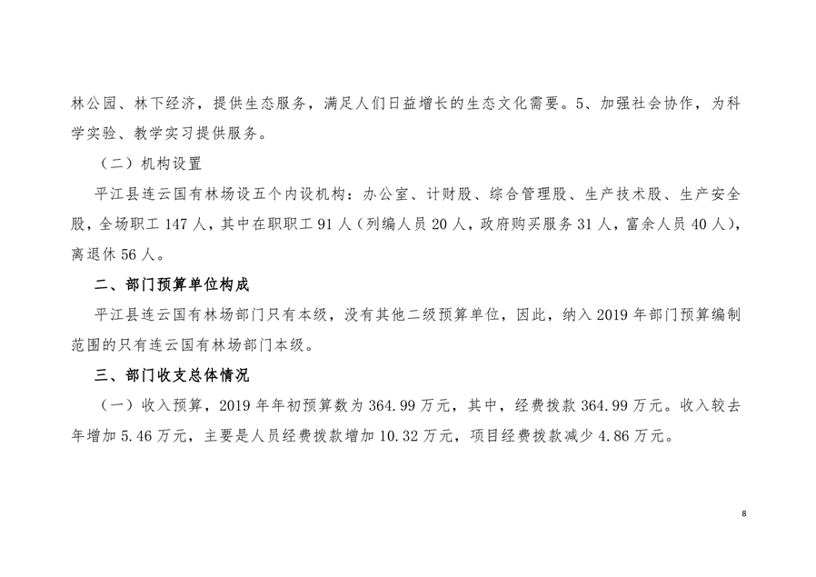 平江县连云国有林场2019年部门预算编报说明