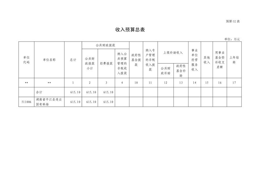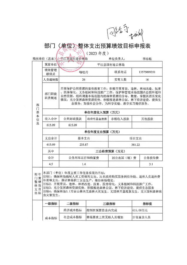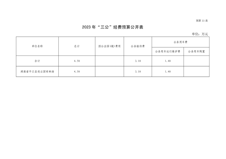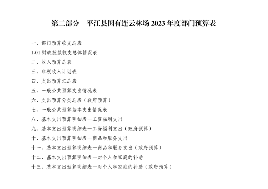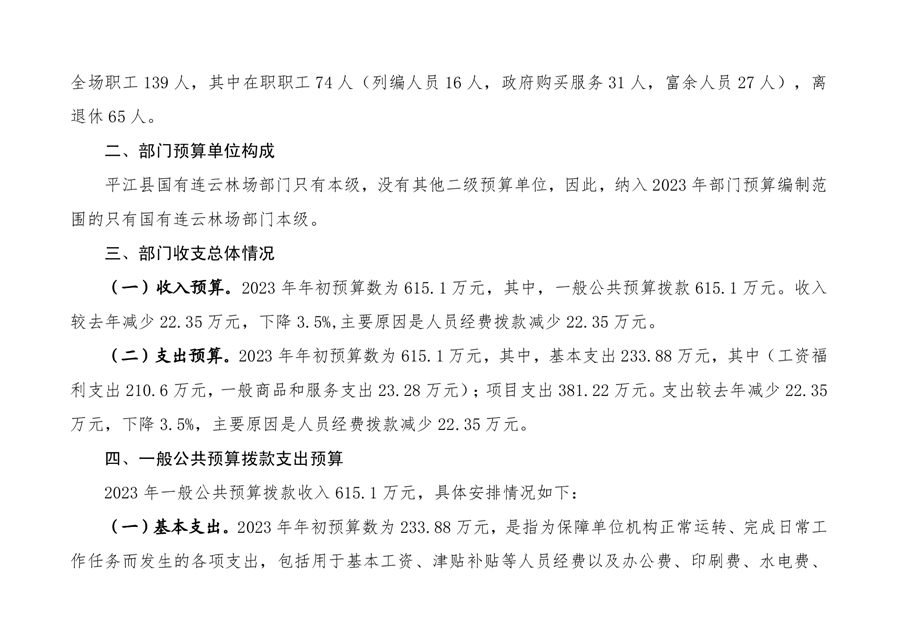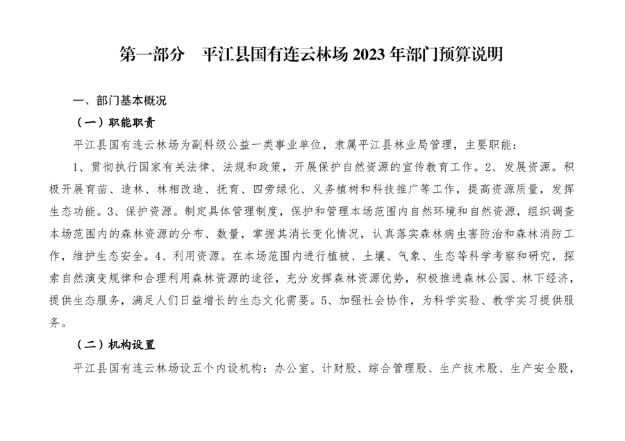 平江县国有连云林场2023年度部门预算