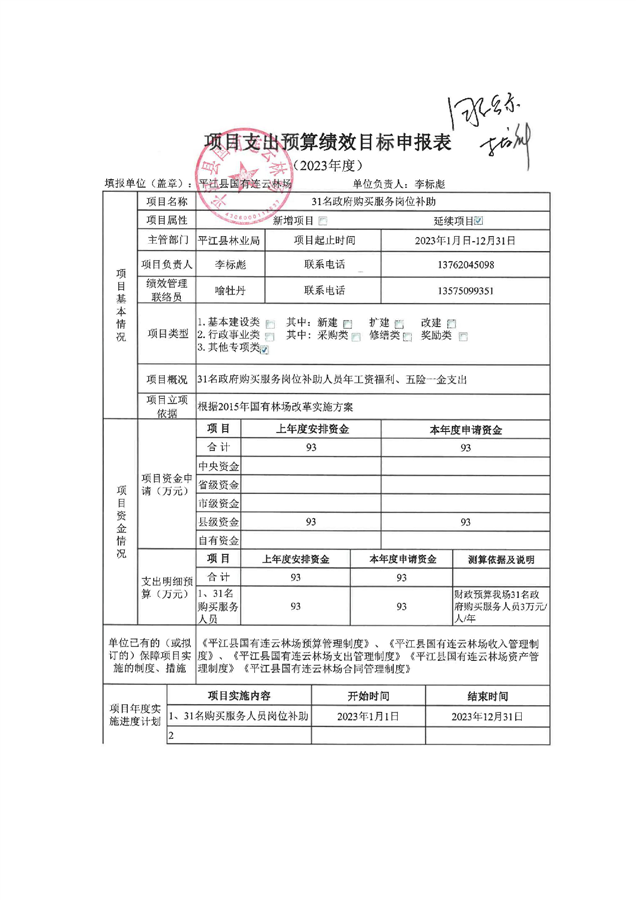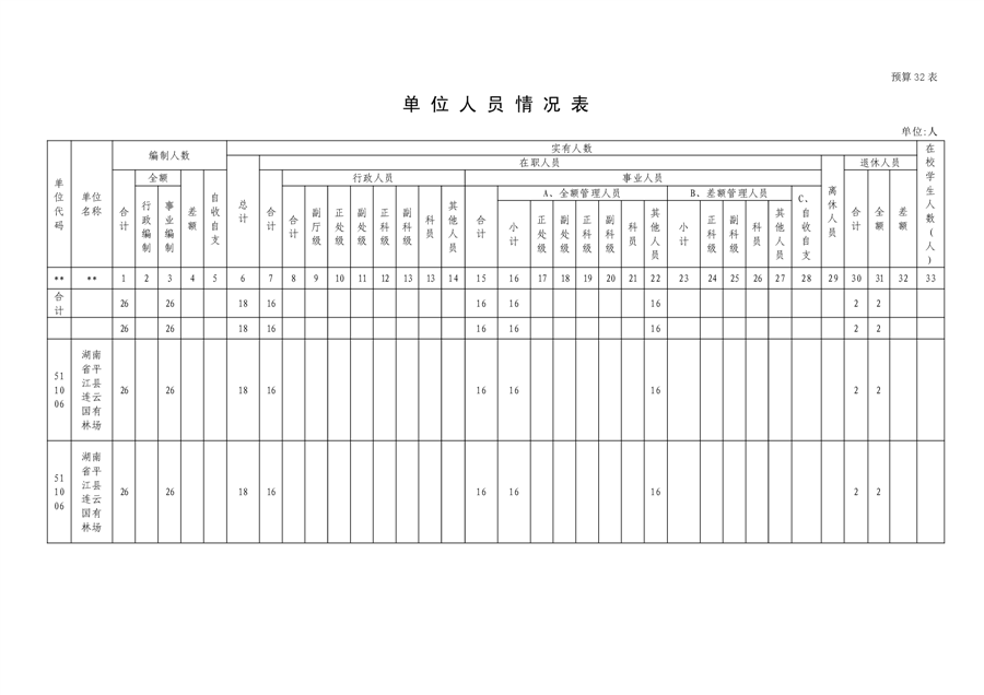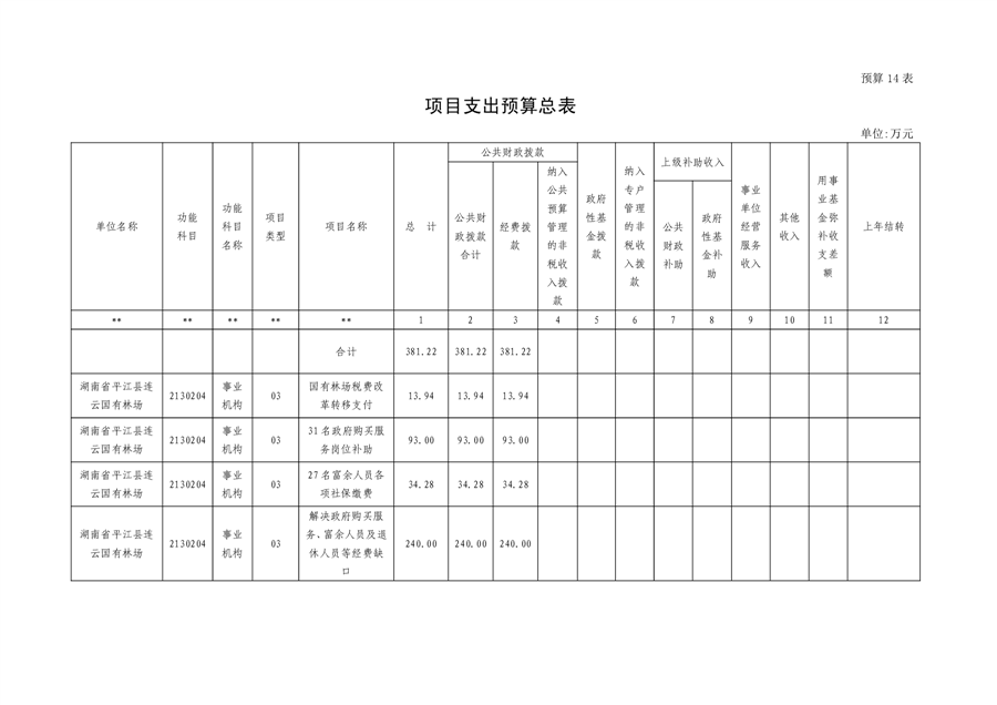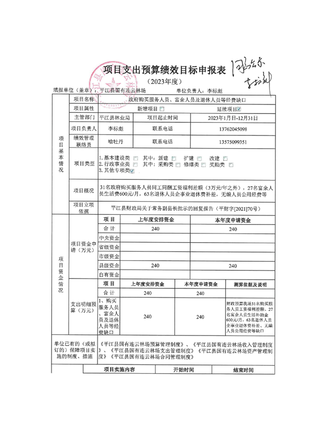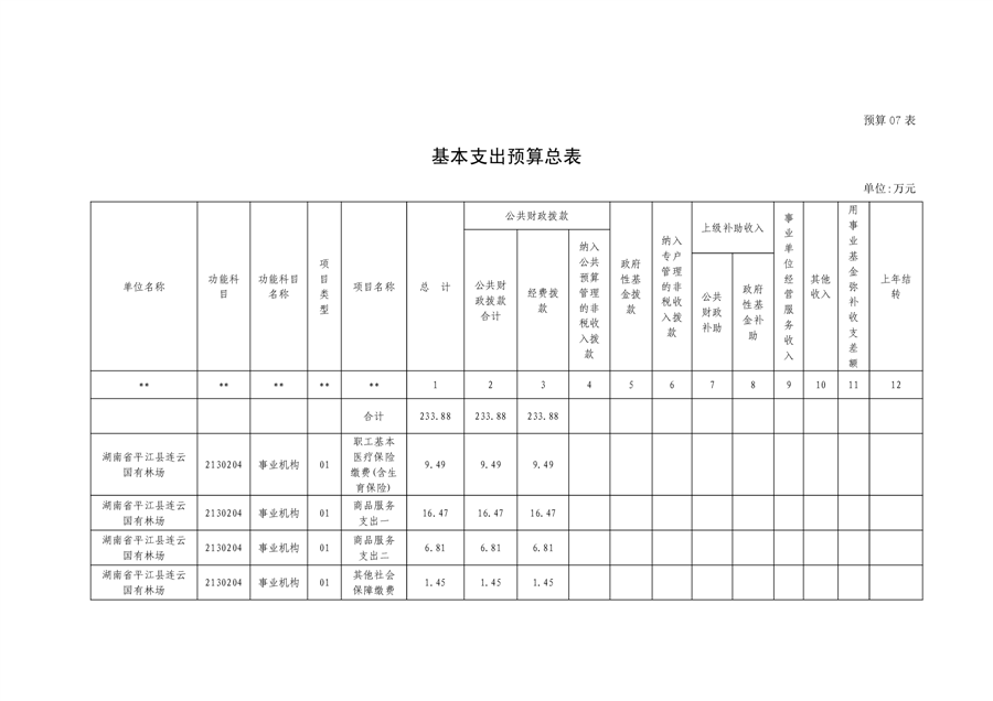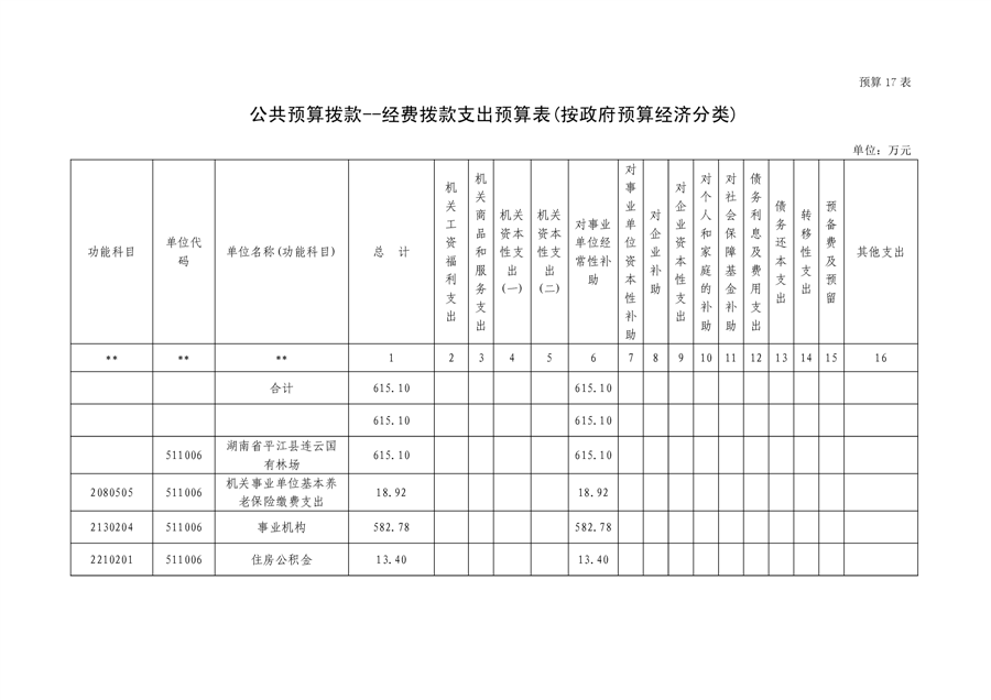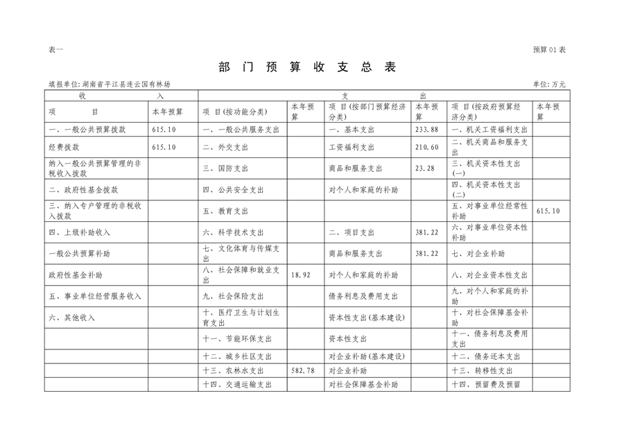 平江县国有连云林场2023年度部门预算