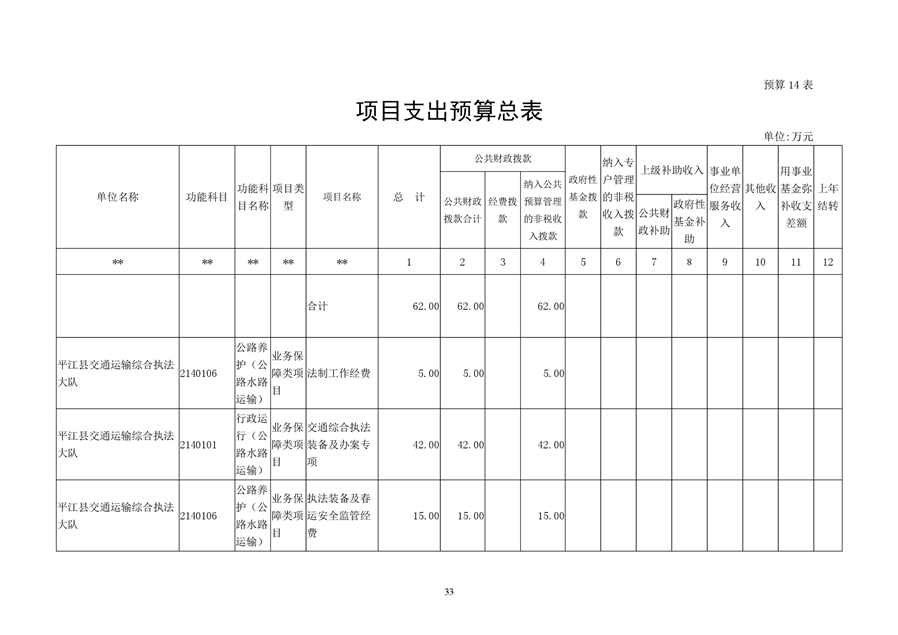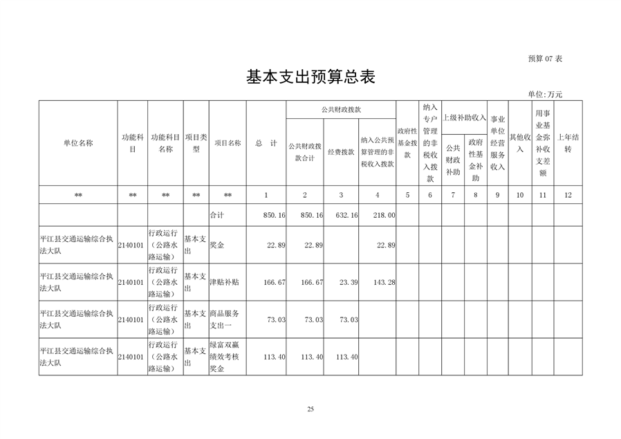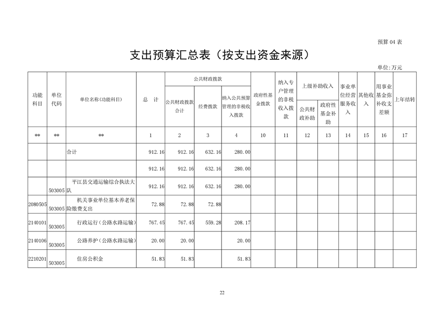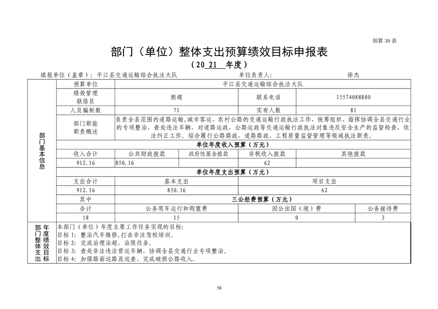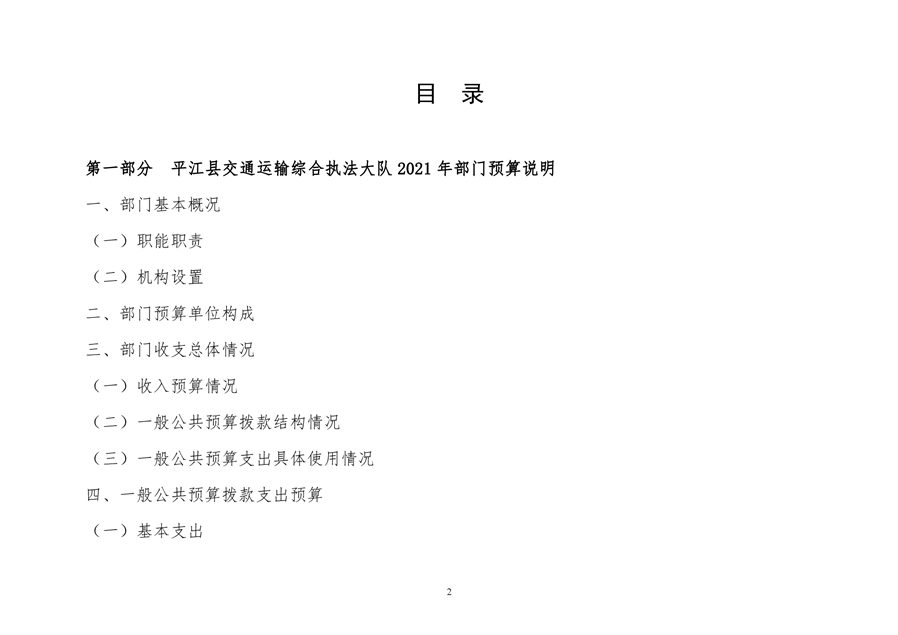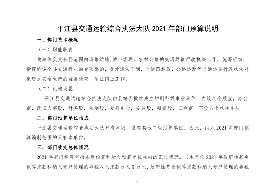 平江县交通运输综合执法大队2021年部门预算编报说明