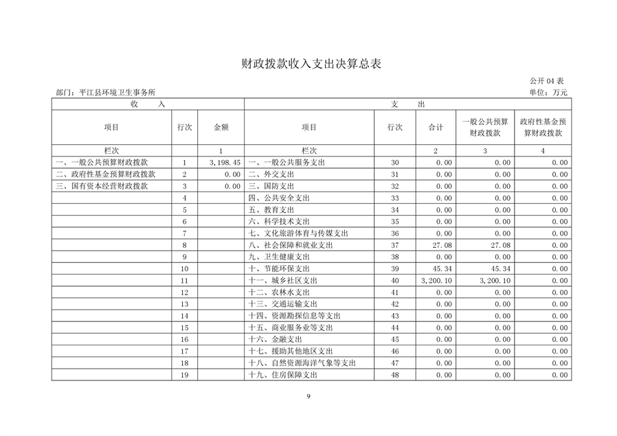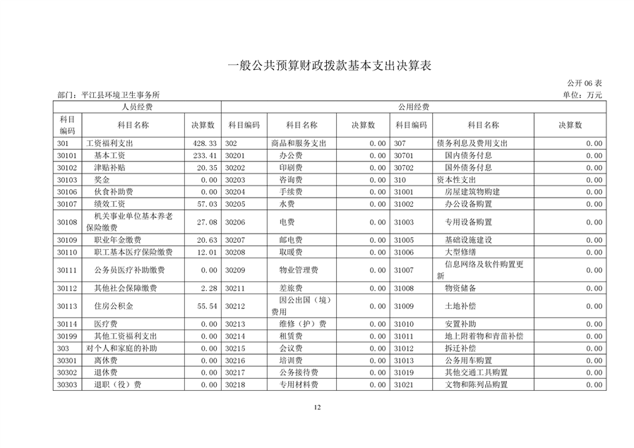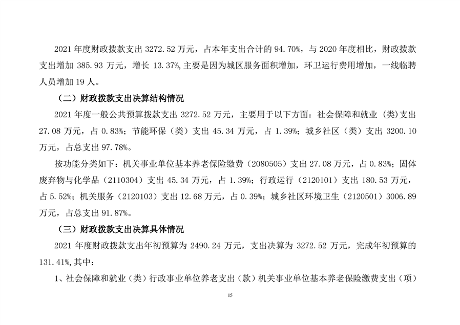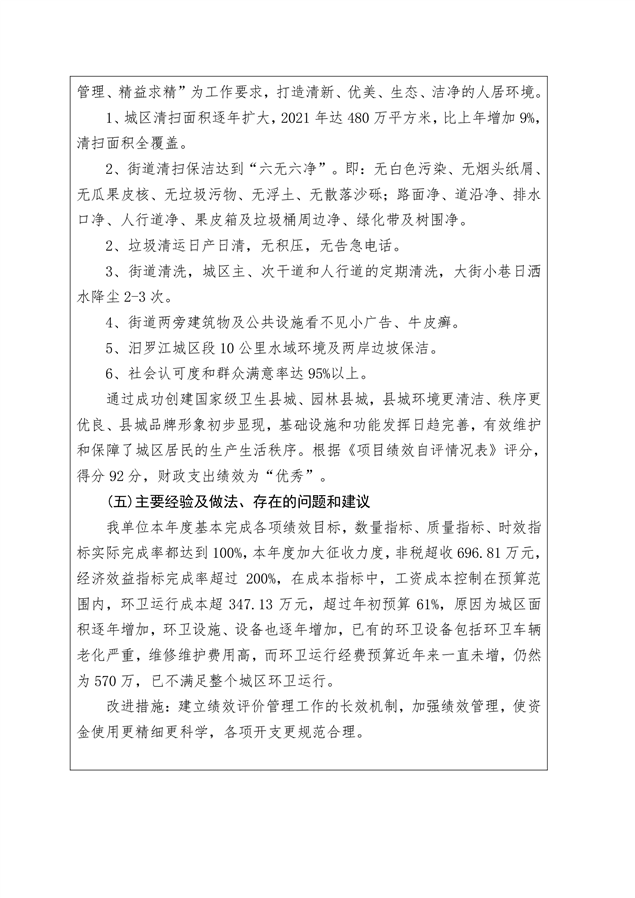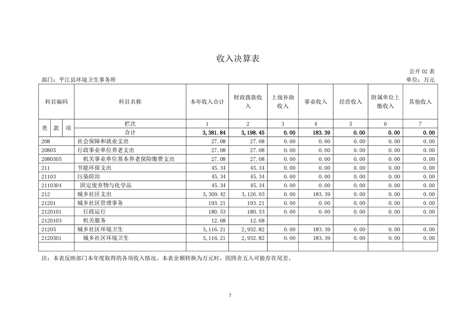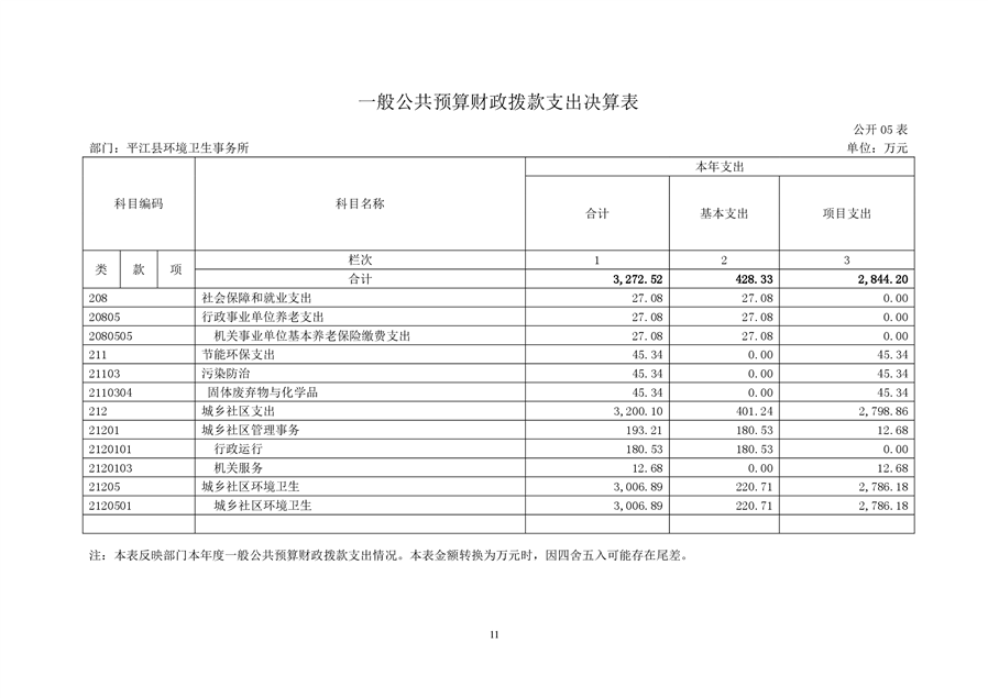 平江县环境卫生事务所2021年部门决算