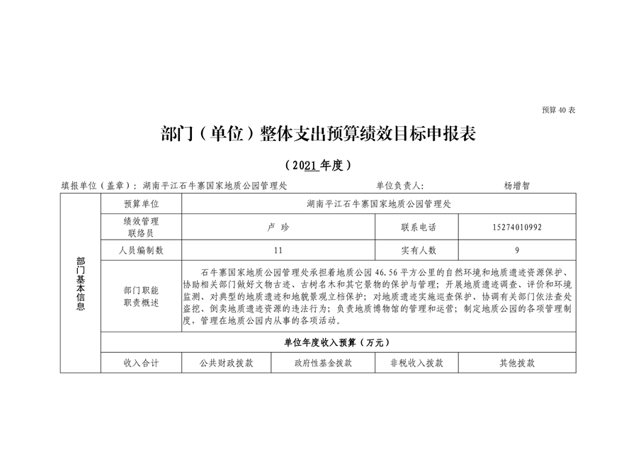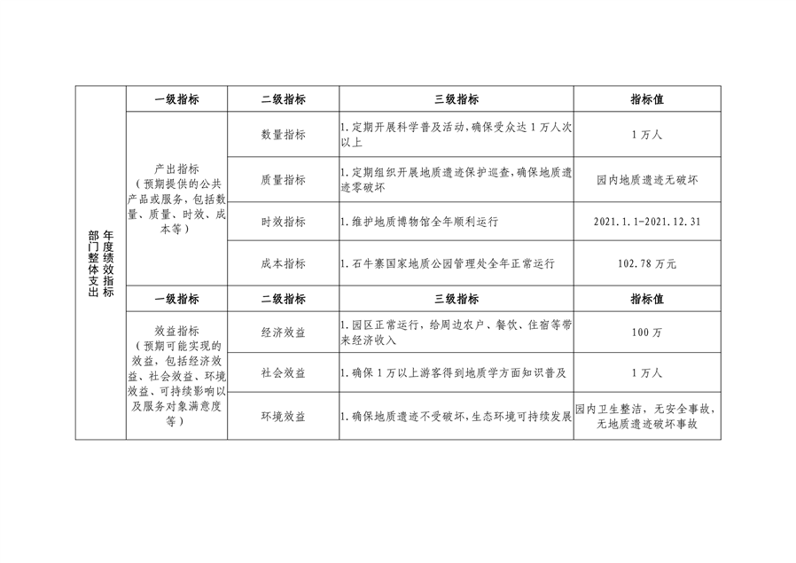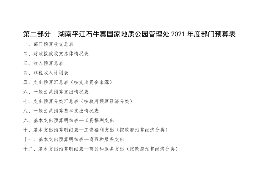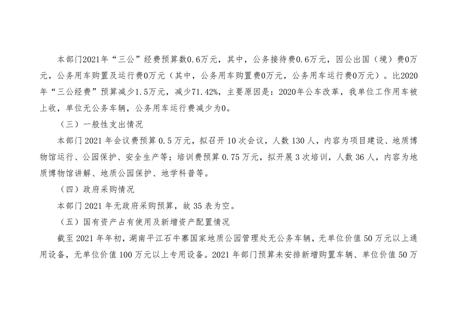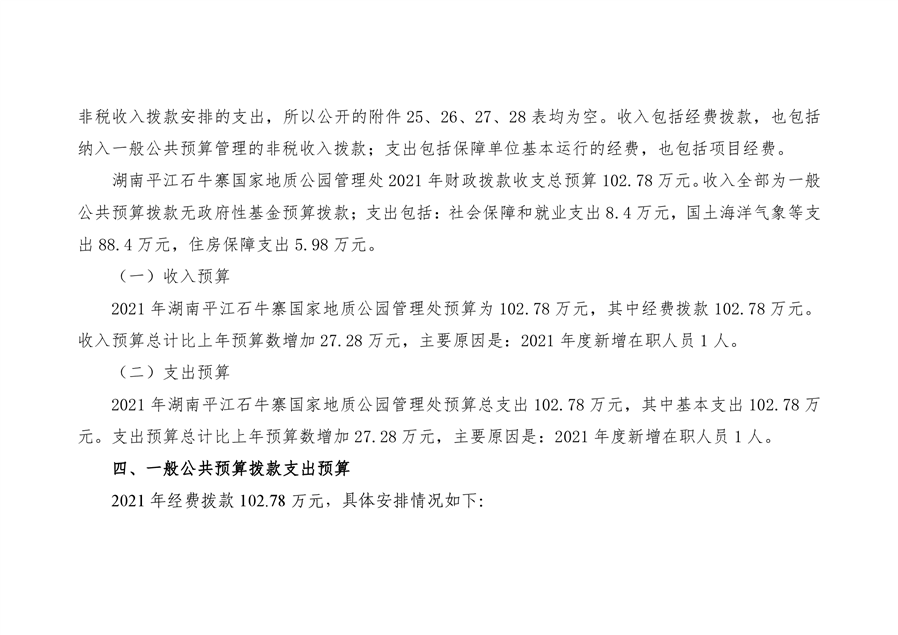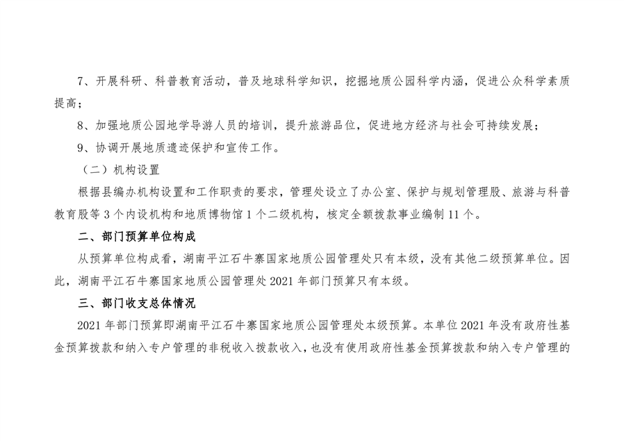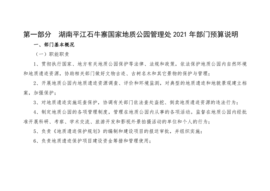 石牛寨国家地质公园管理处2021年预算公开说明