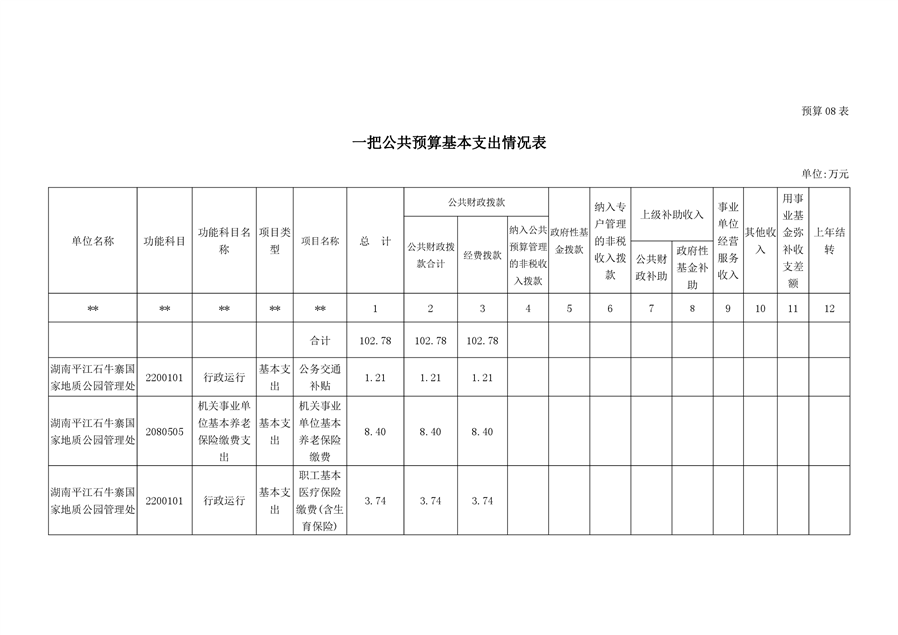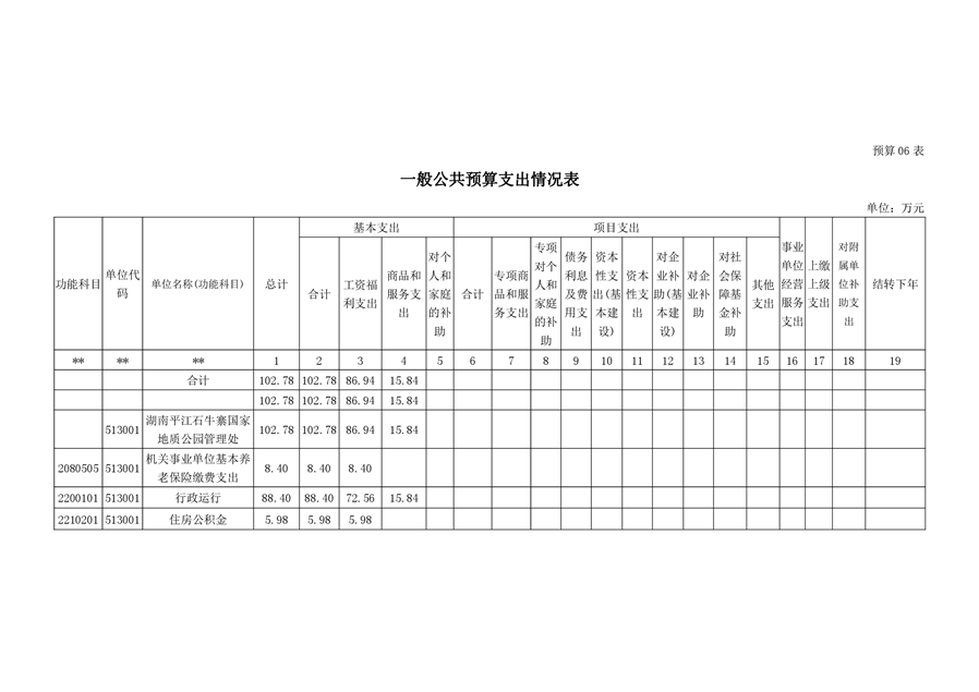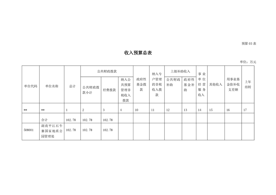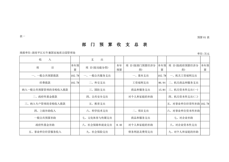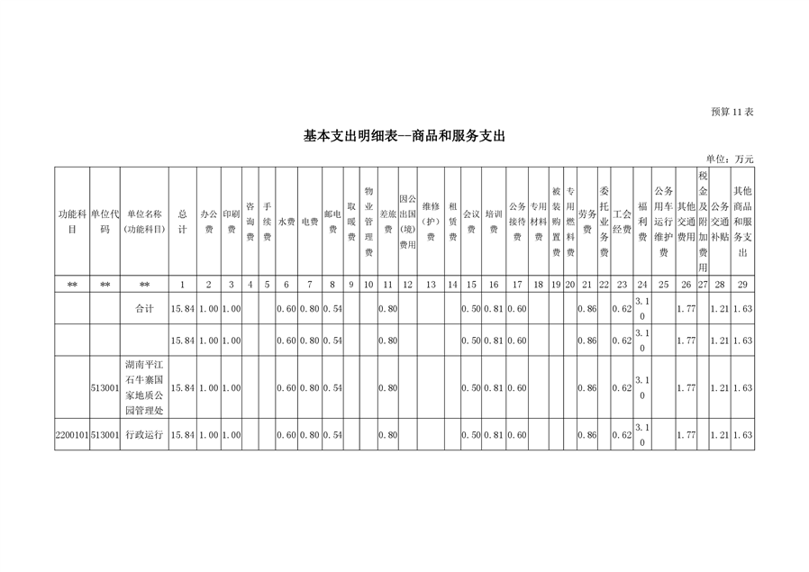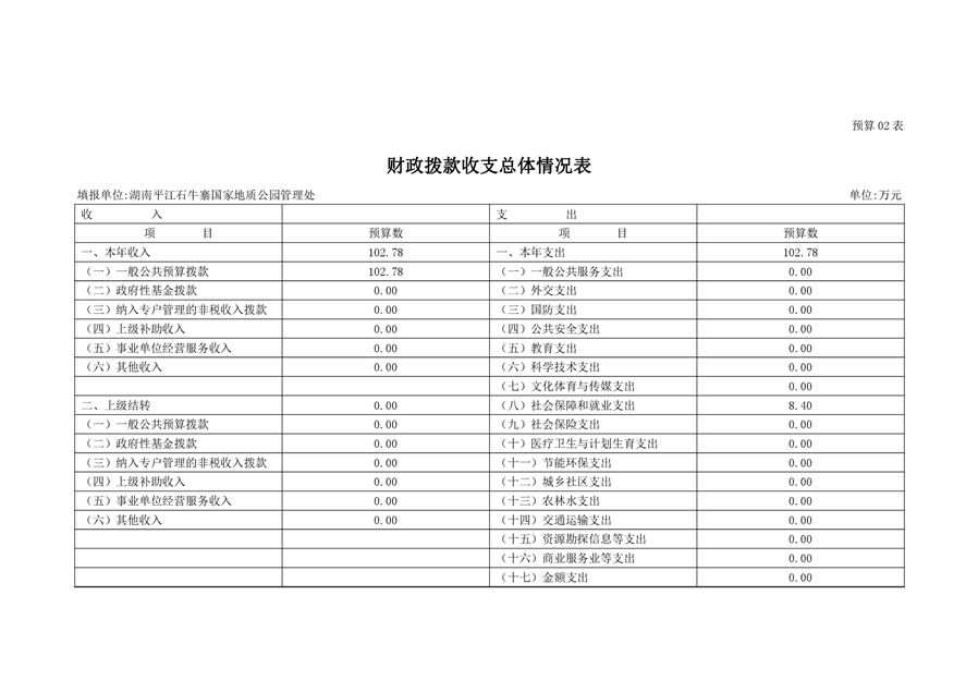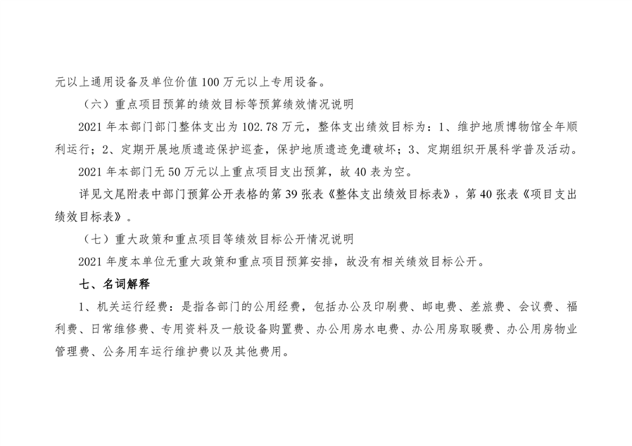 石牛寨国家地质公园管理处2021年预算公开说明
