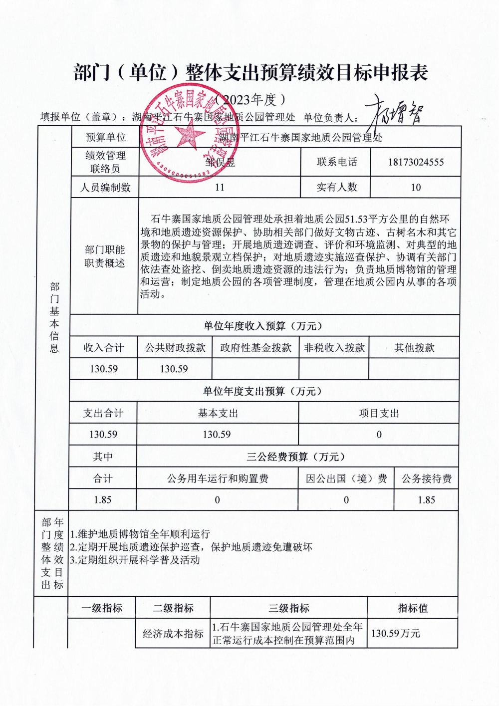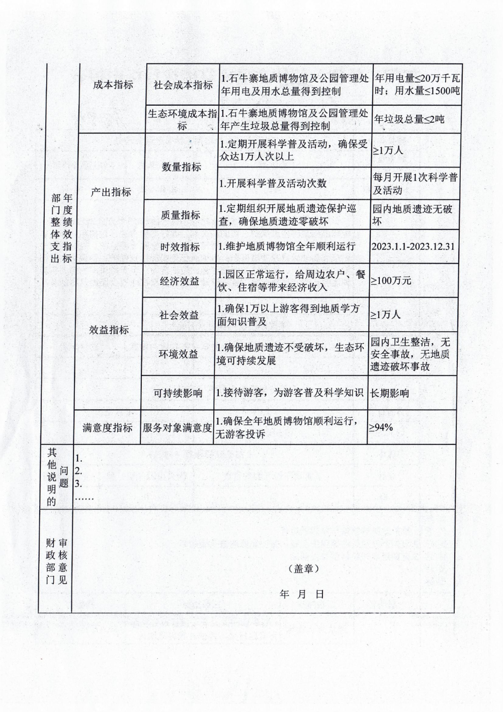 石牛寨国家地质公园管理处2023年度部门预算