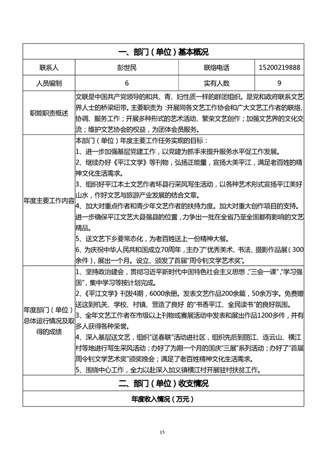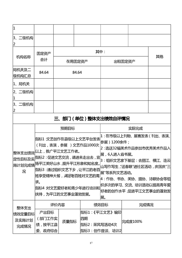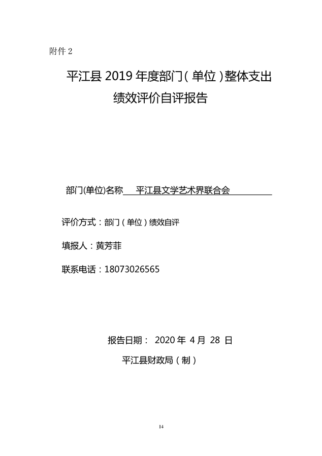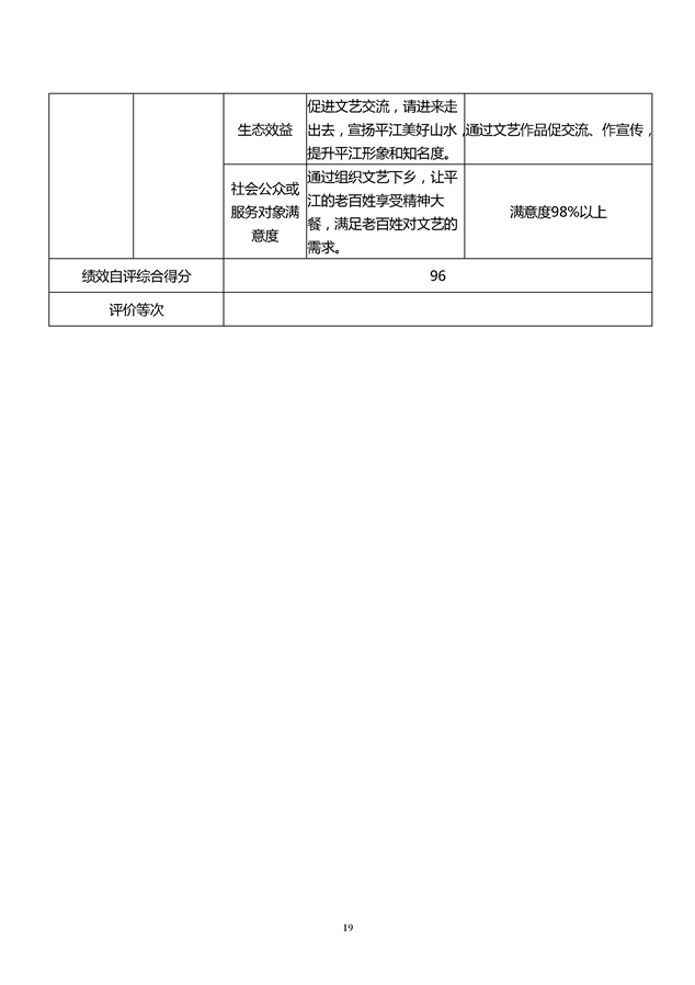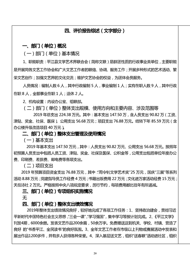 平江县文学艺术界联合会2019年度整体支出绩效自评