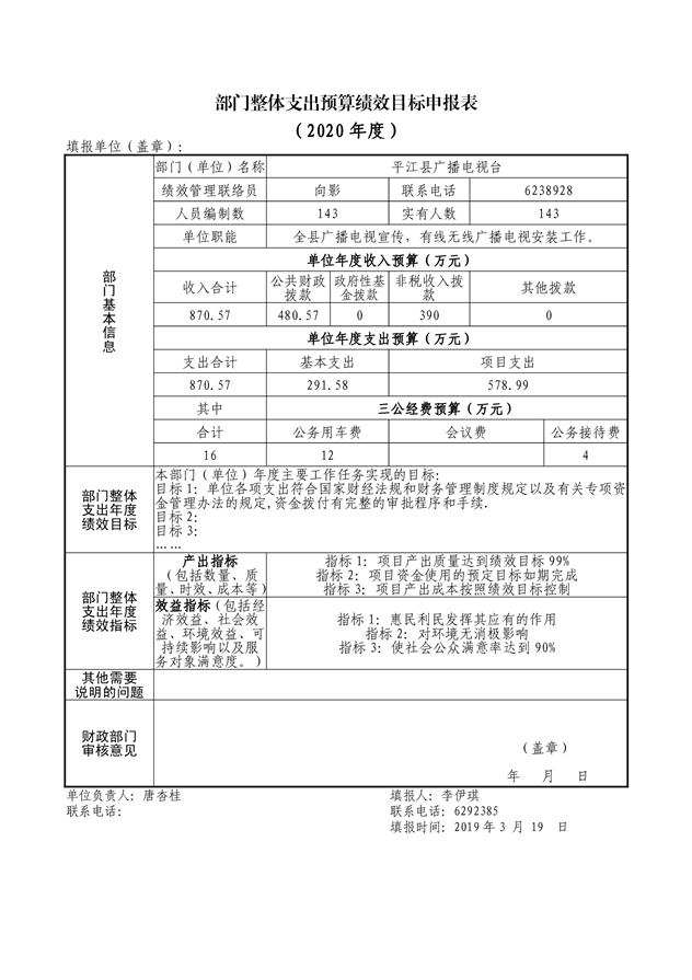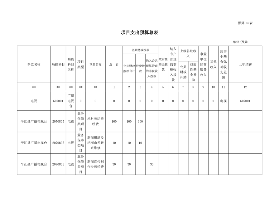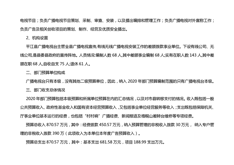平江县广播电视台2020年部门预算