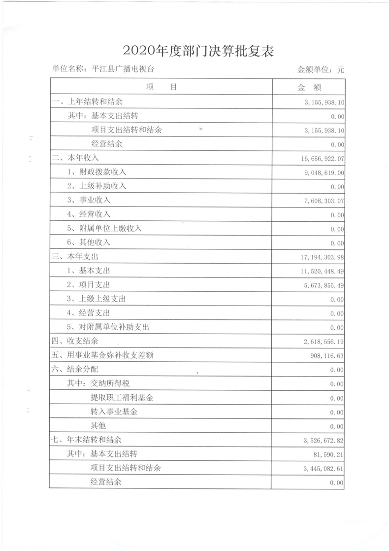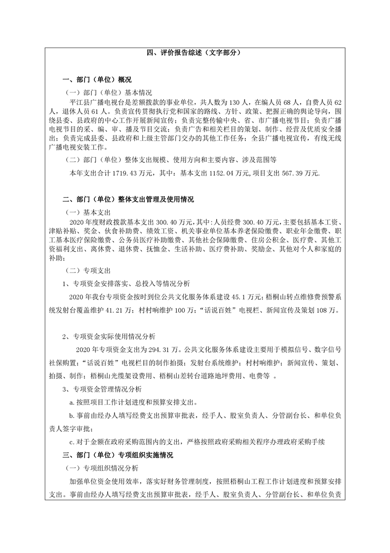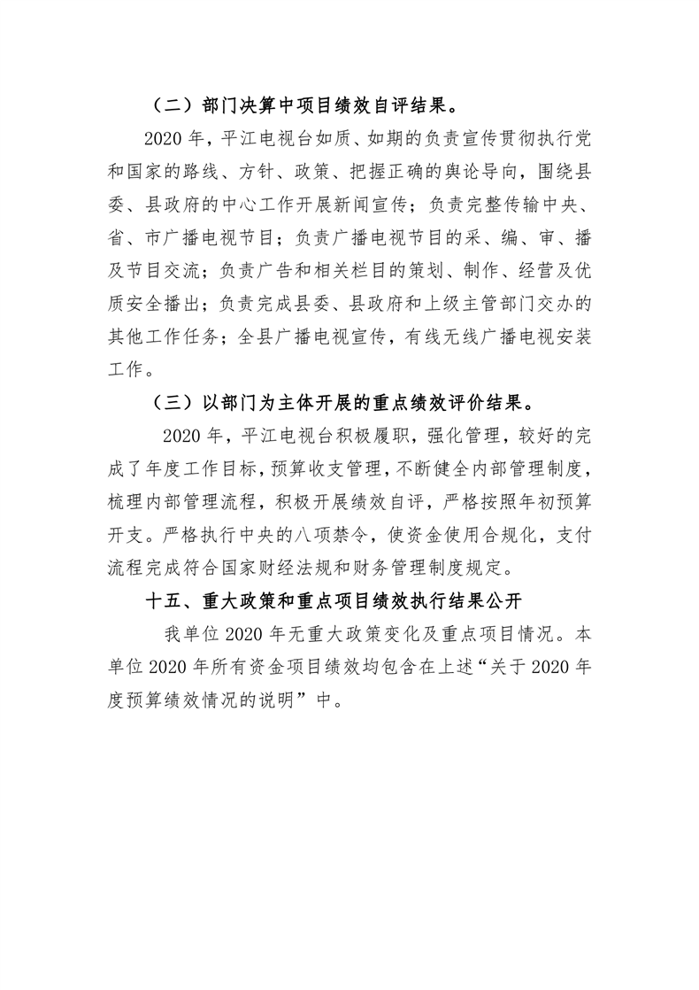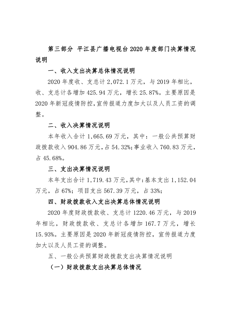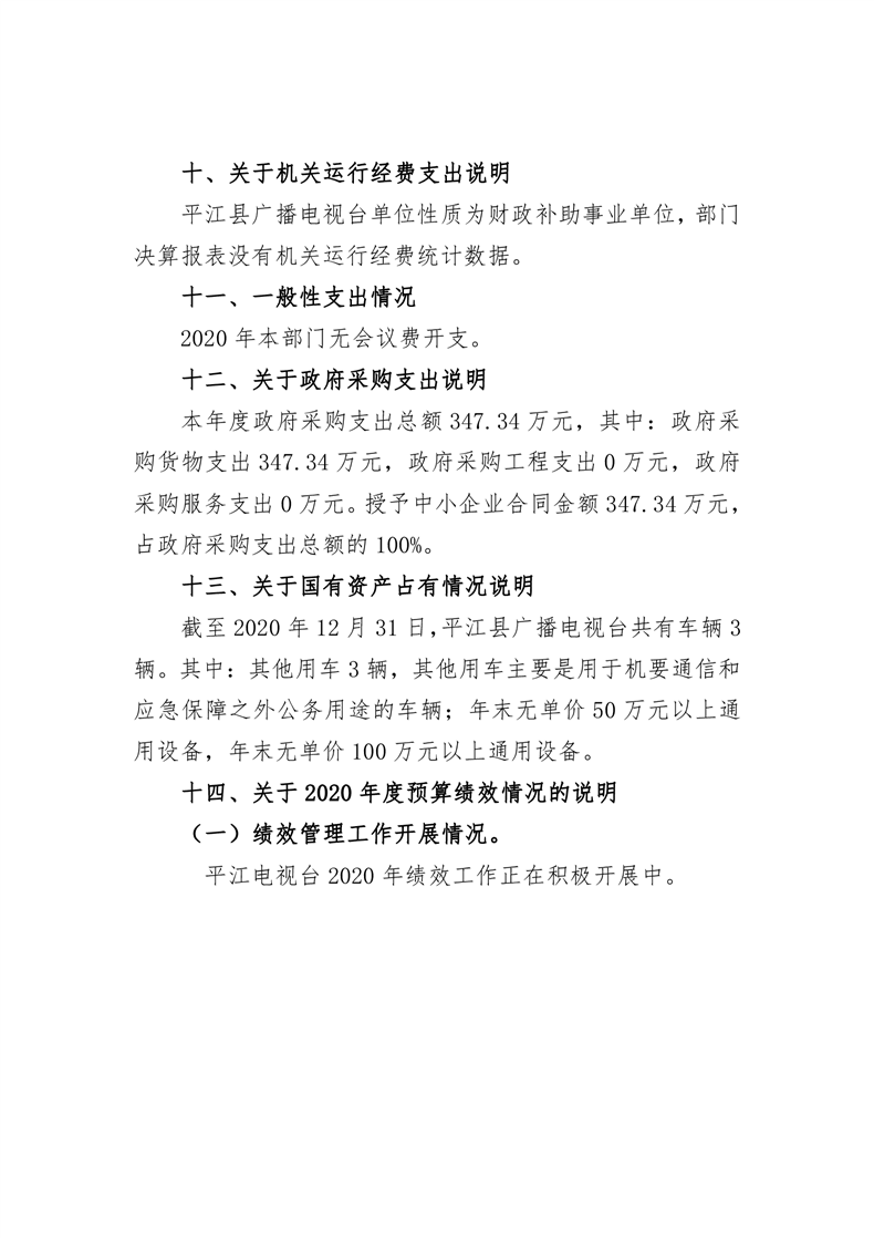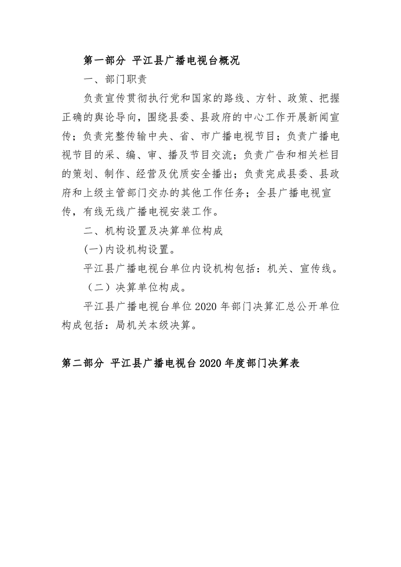 平江县广播电视台2020年部门决算