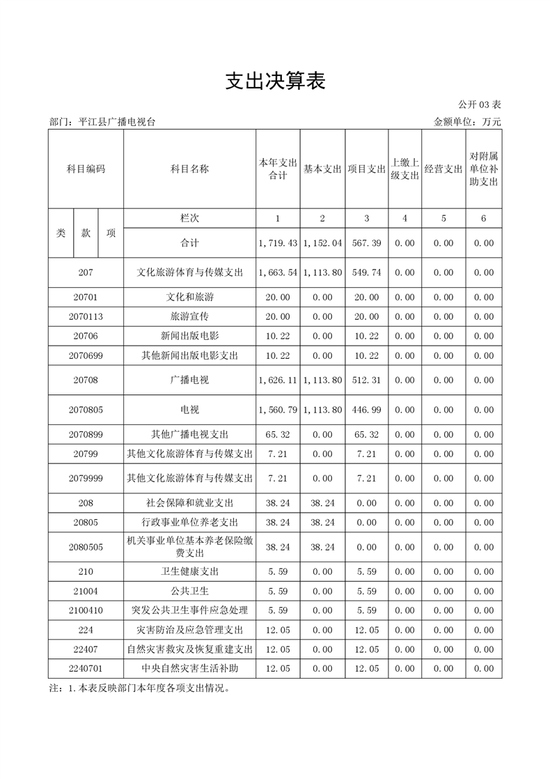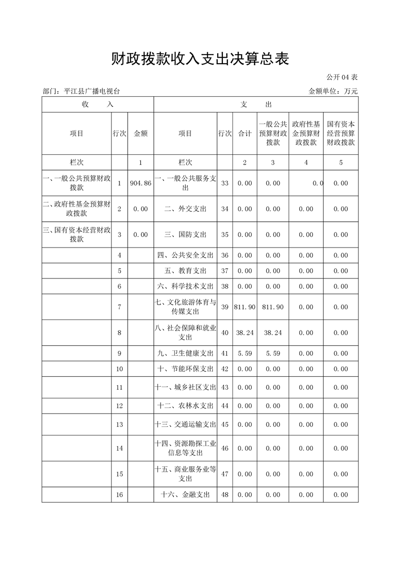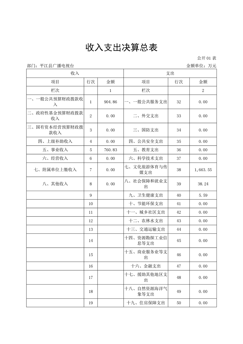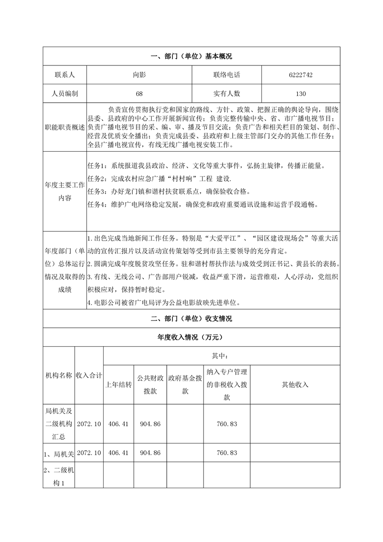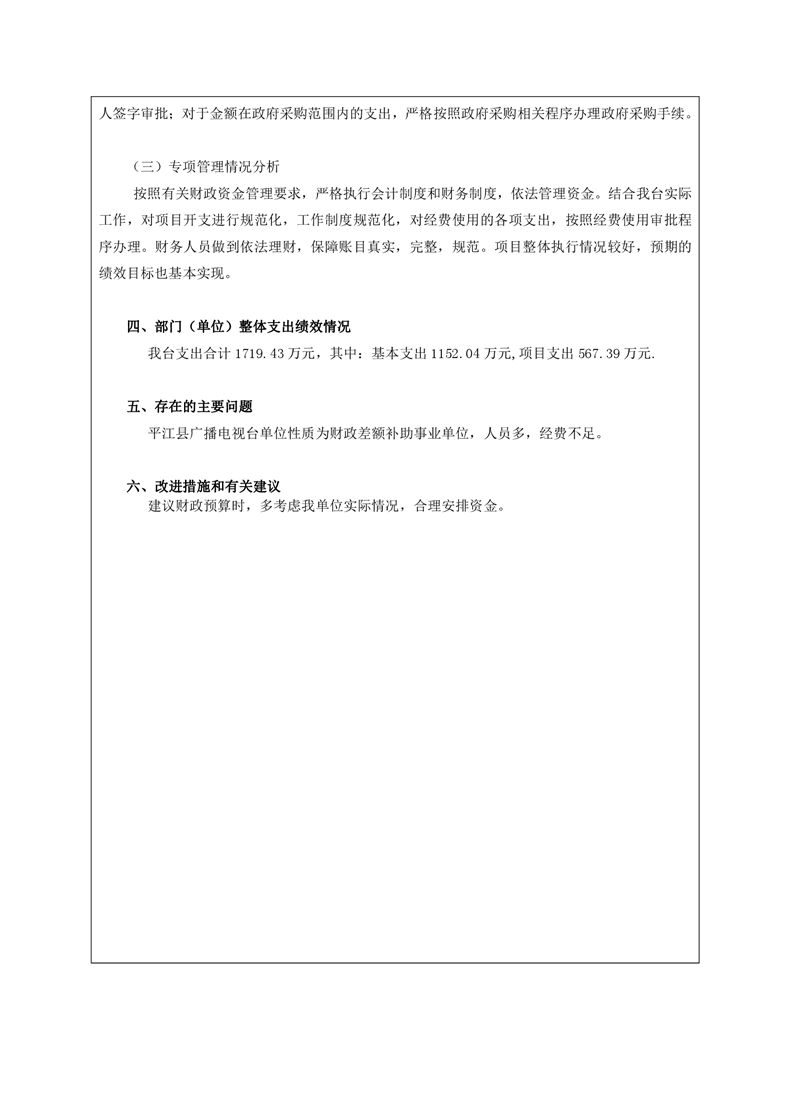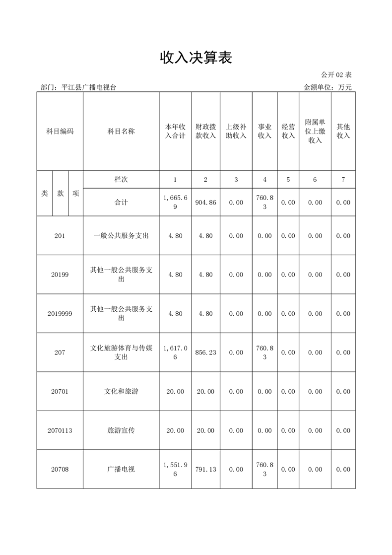 平江县广播电视台2020年部门决算