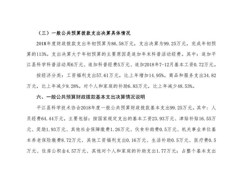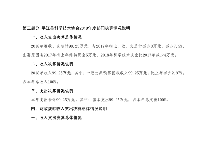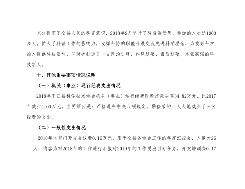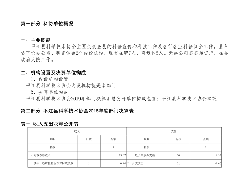 平江县科学技术协会2018年部门决算编报说明