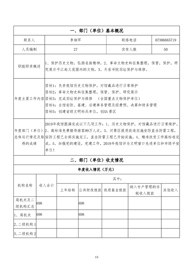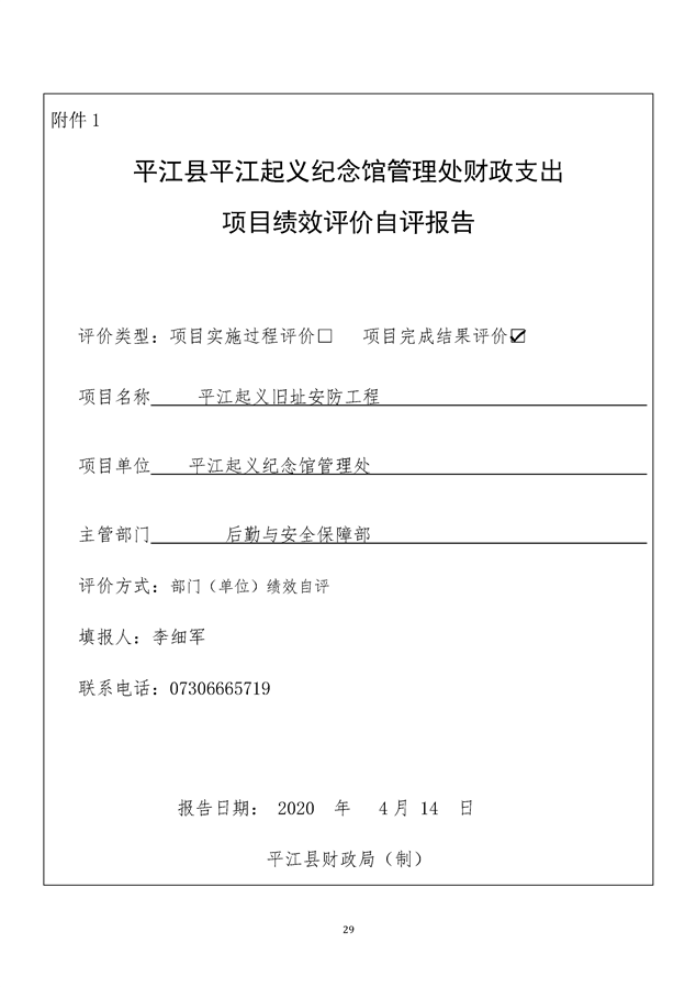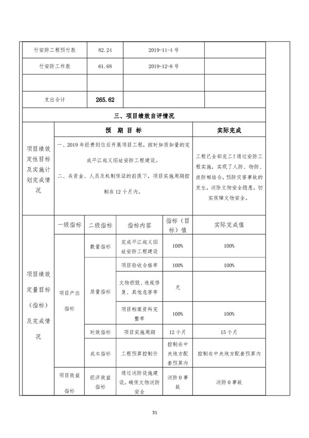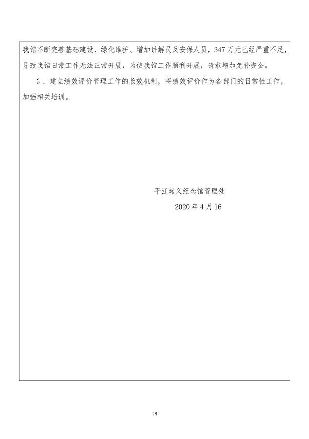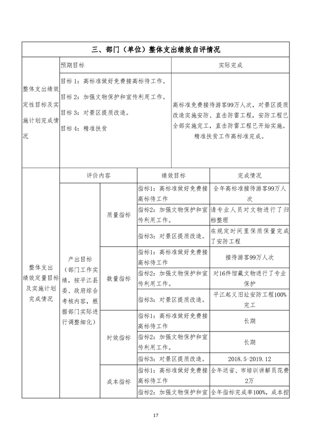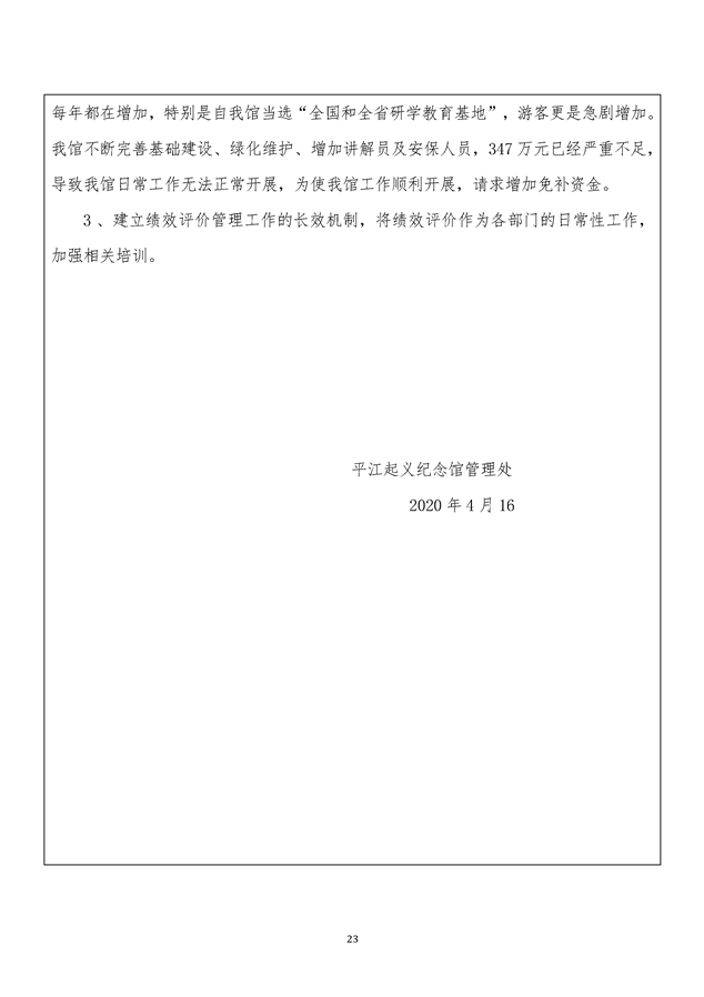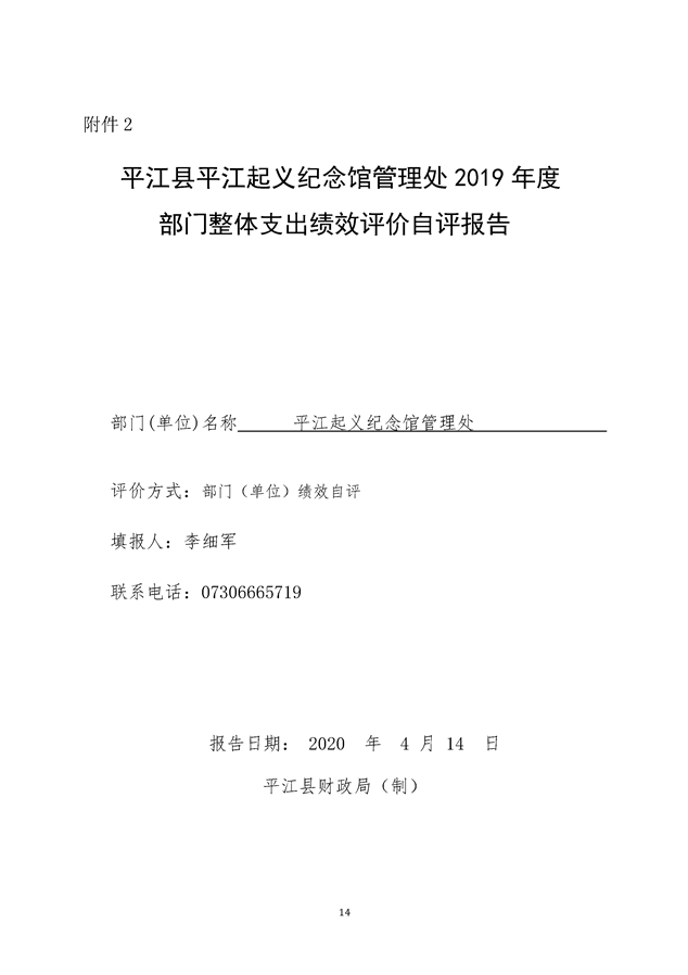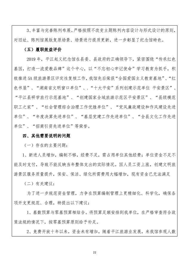 平江县起义纪念馆管理处2019年度整体支出绩效自评